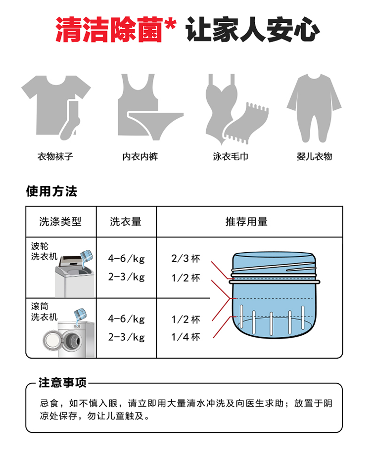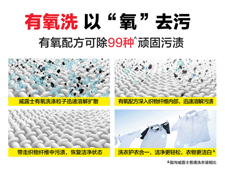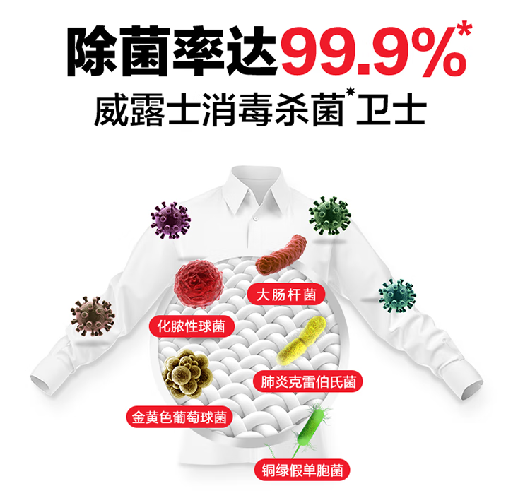 威露士除菌双效有氧洗衣液组合15斤(瓶2L+1L*2+袋500ml*7)除99种污渍