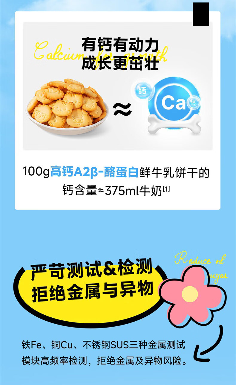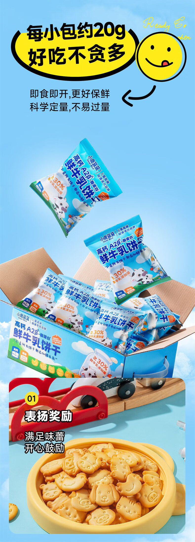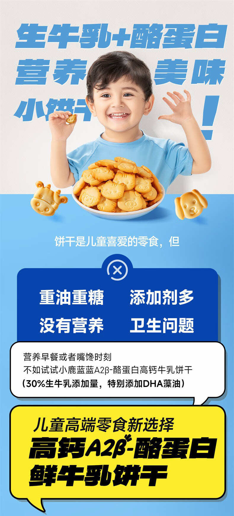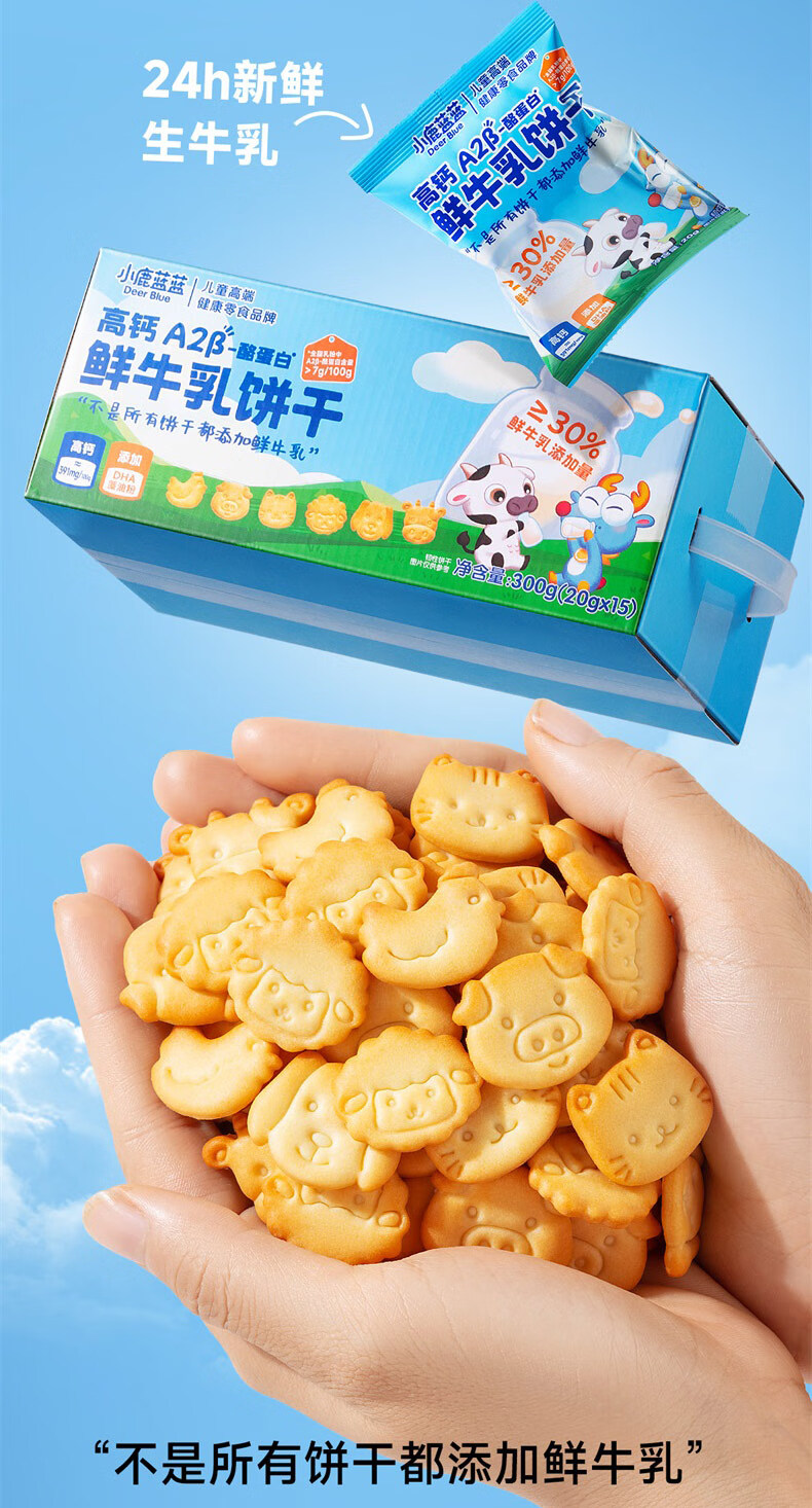 小鹿蓝蓝高钙A2β-酪蛋白鲜牛乳动物饼干100g含5袋儿童饼干宝宝零食