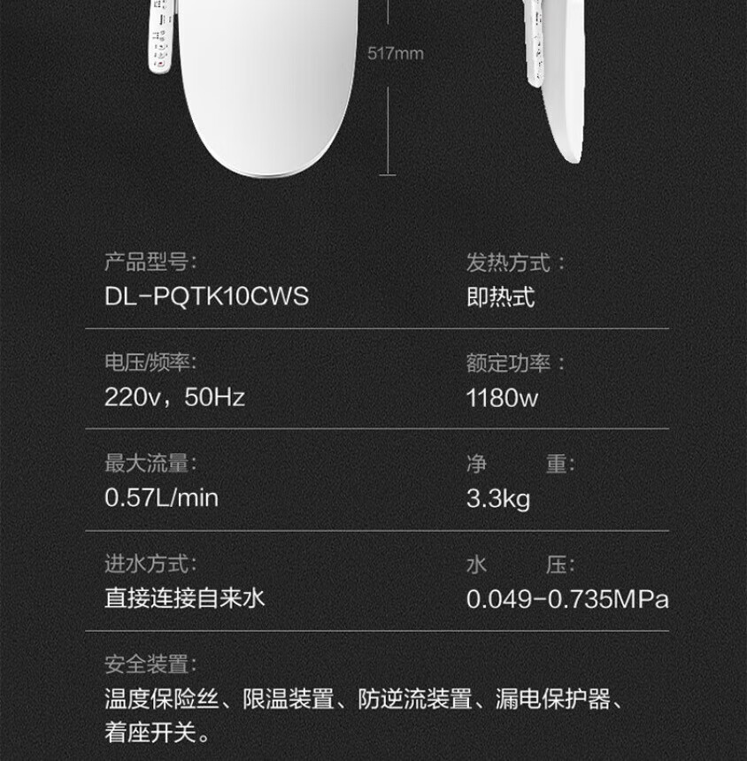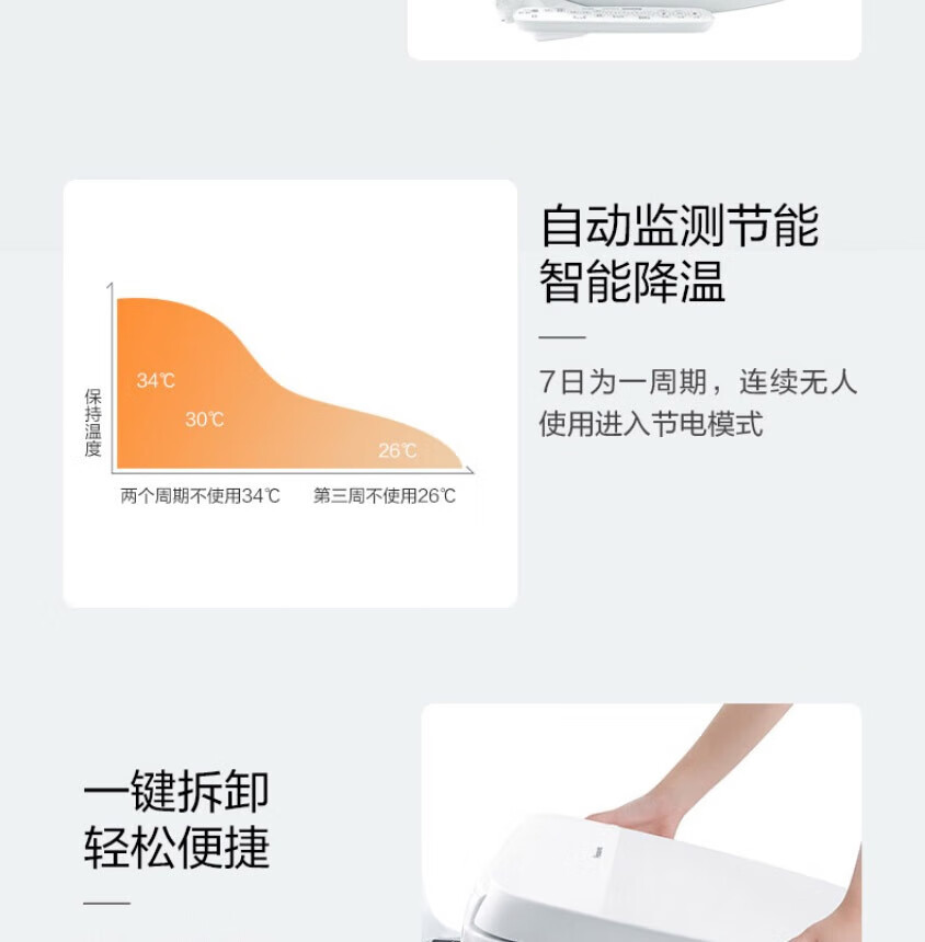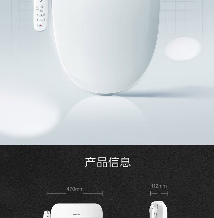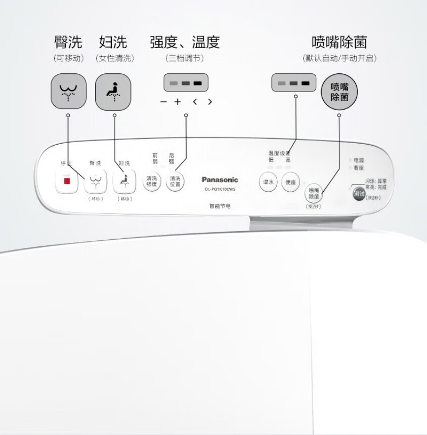 松下(Panasonic)智能马桶盖 轻薄机身多档水压即热清洗加热便圈坐便圈 PQTK10