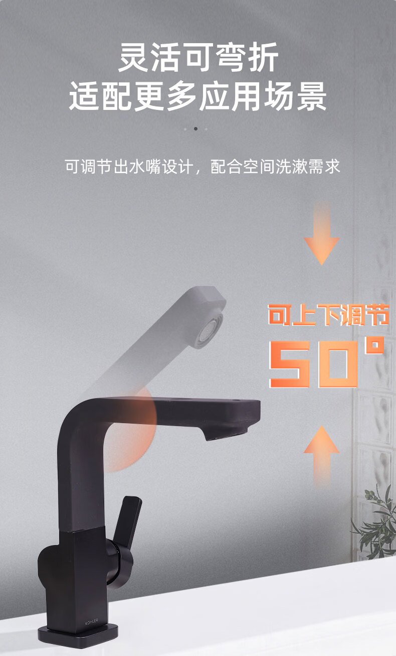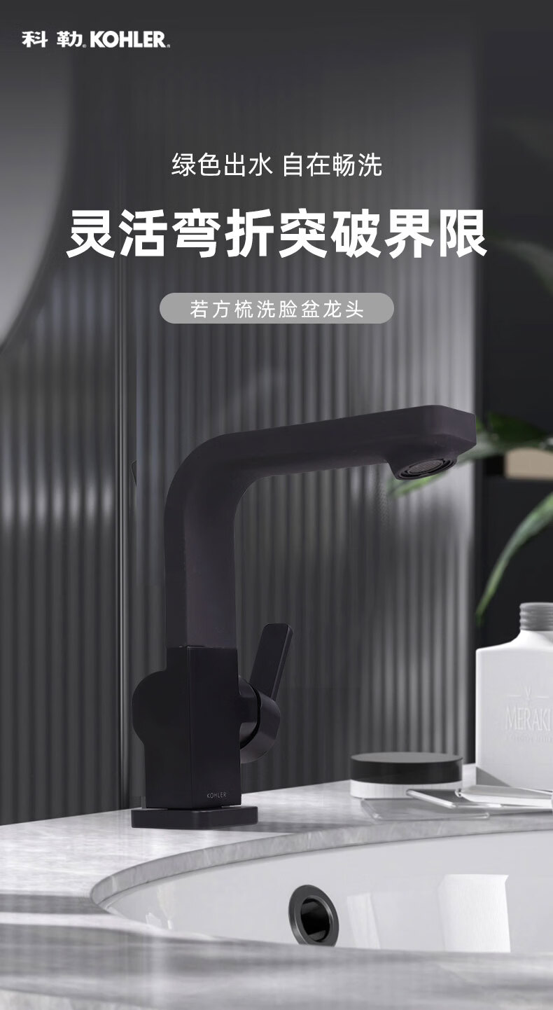 科勒(KOHLER)面盆龙头洗脸盆冷热水龙头家用卫生间台盆防溅水洗脸水龙头40301T 若方梳洗脸盆龙头40301T-BL