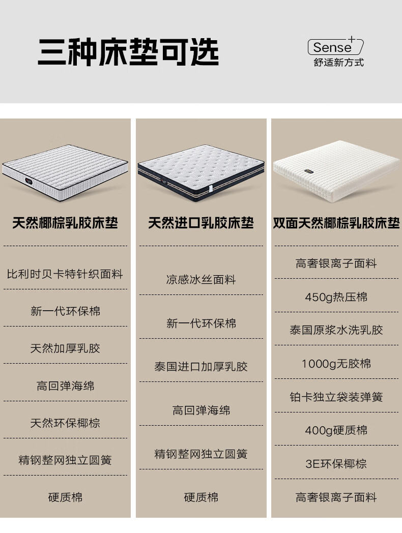 科虎实木床双人床1.8x2米主卧大床家用1.5x2米 橡木床+20cm弹簧垫+床头柜*2【桐木宽铺板】 180*200cm