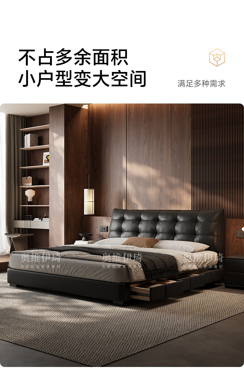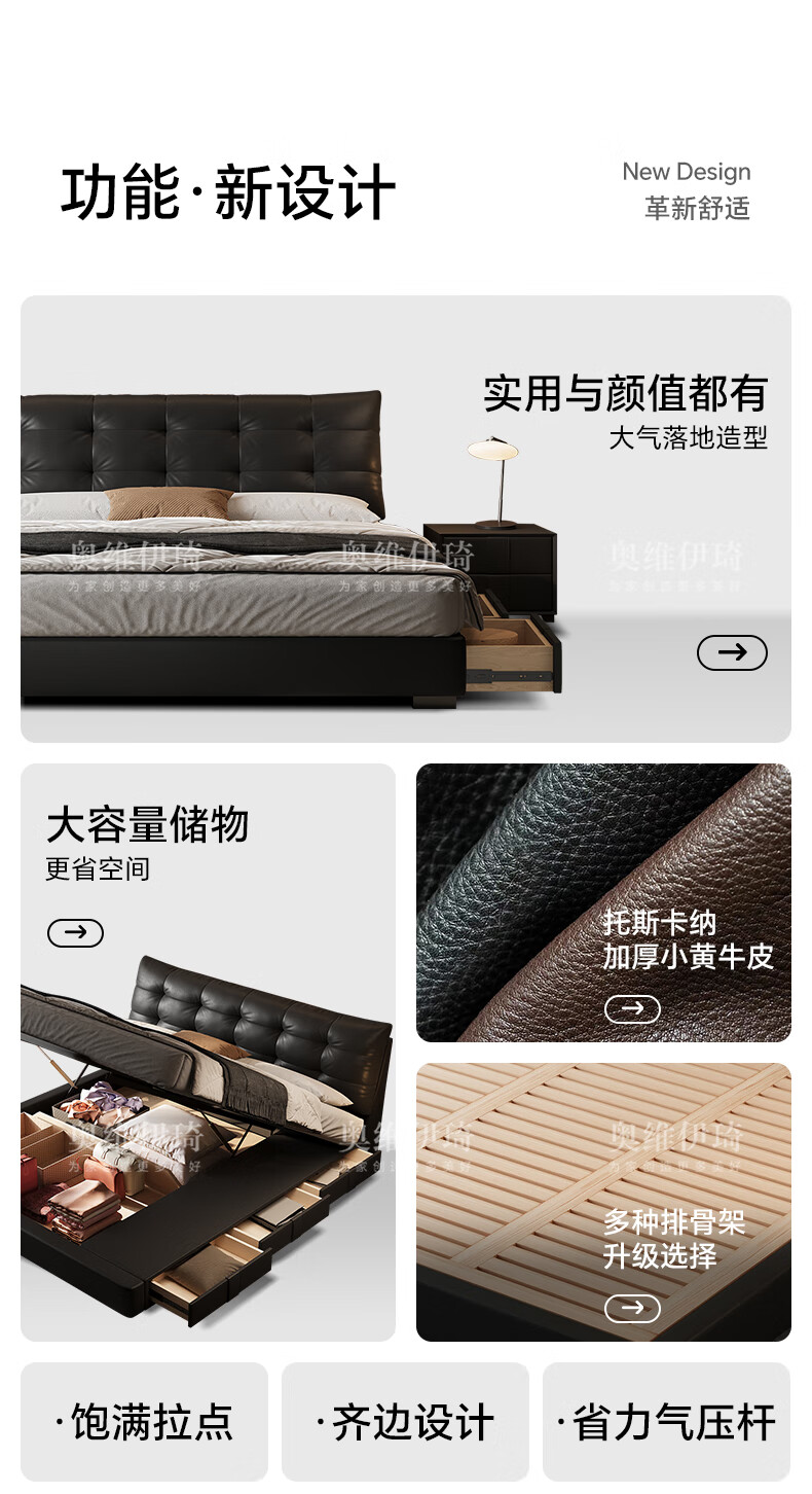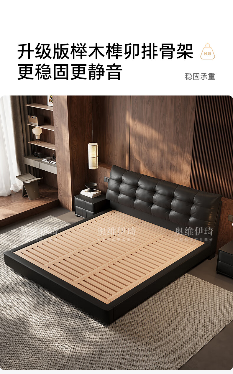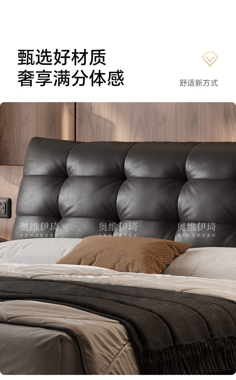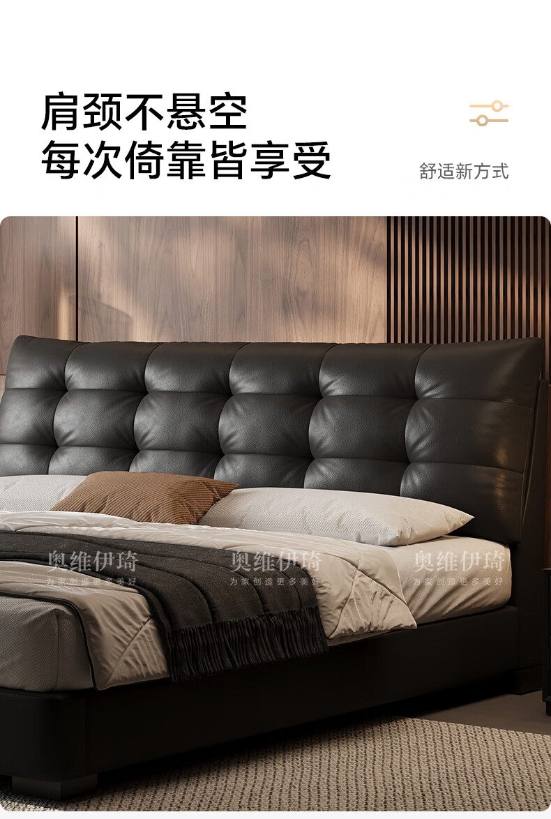 奥维伊琦2025年新款全实木储物皮艺床真皮床主卧大床双人床婚床 (豪华版)头层牛皮单床 1.5米*2.0米【框架款】