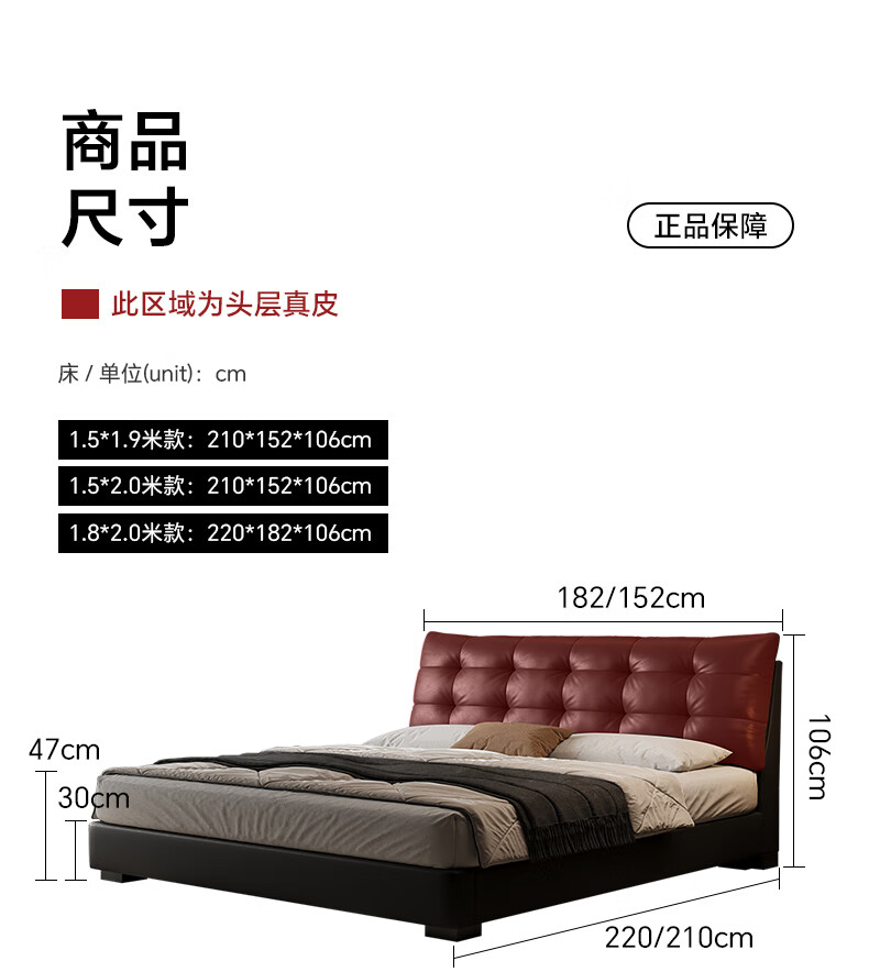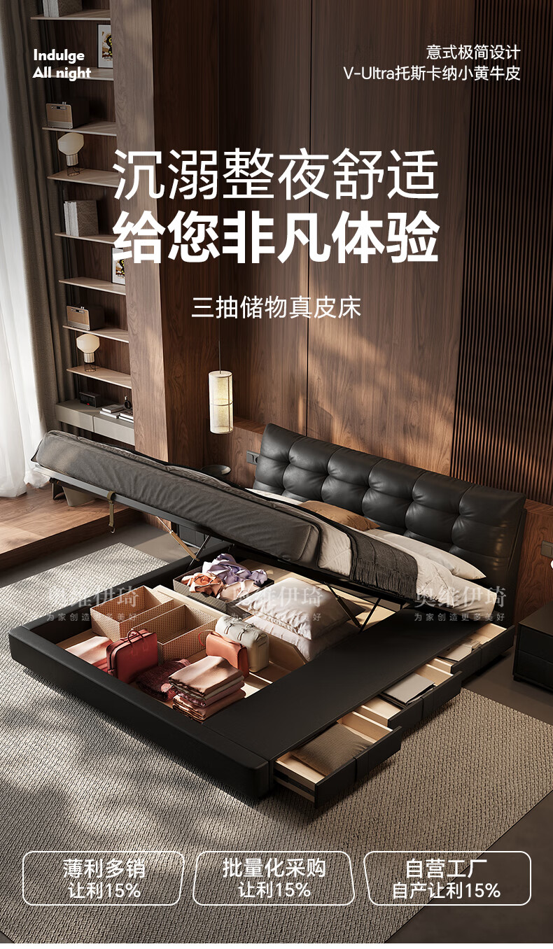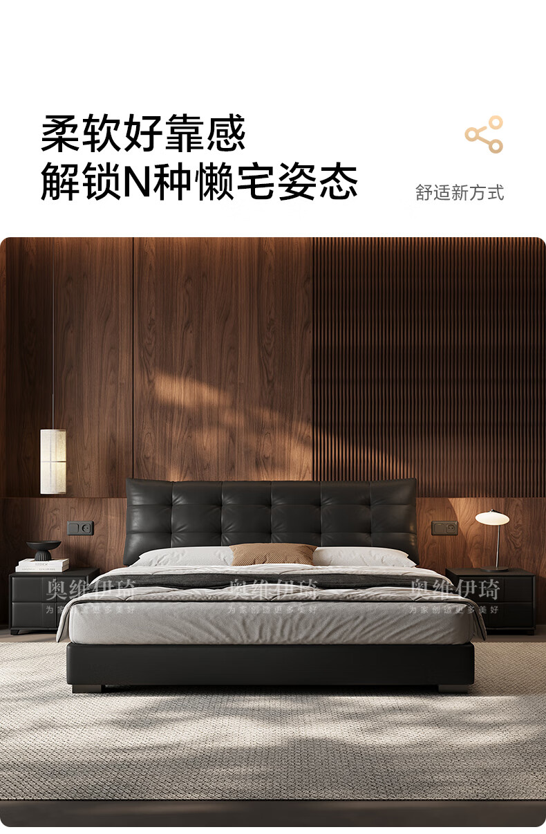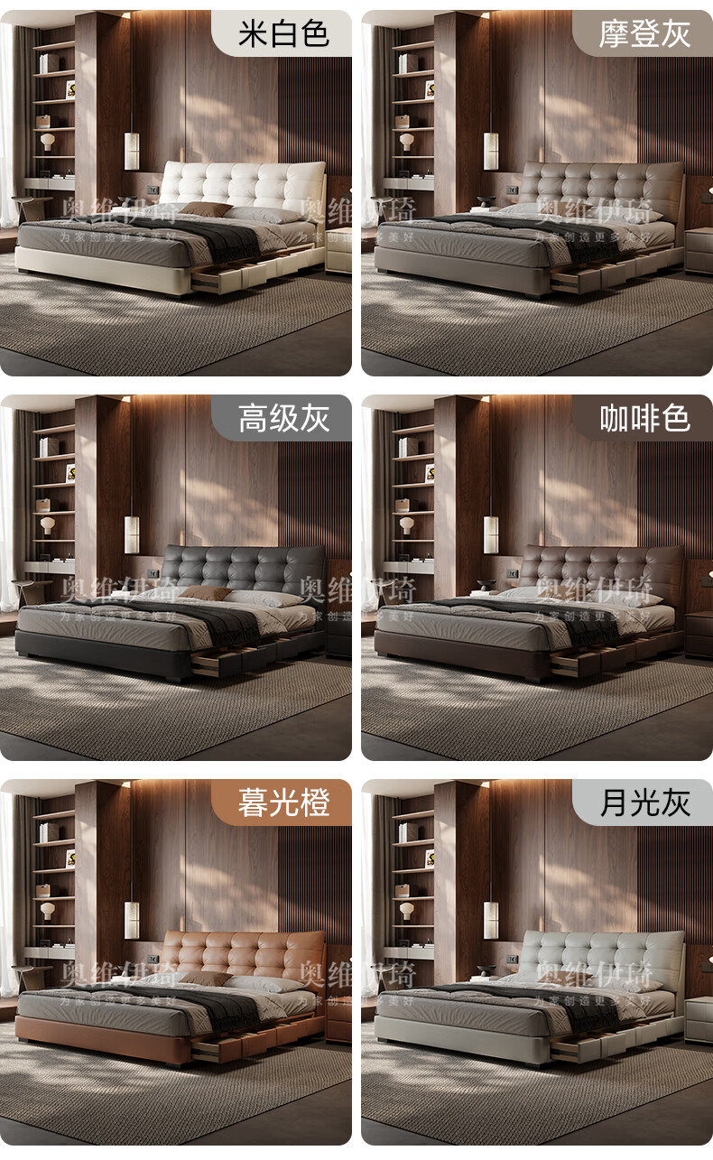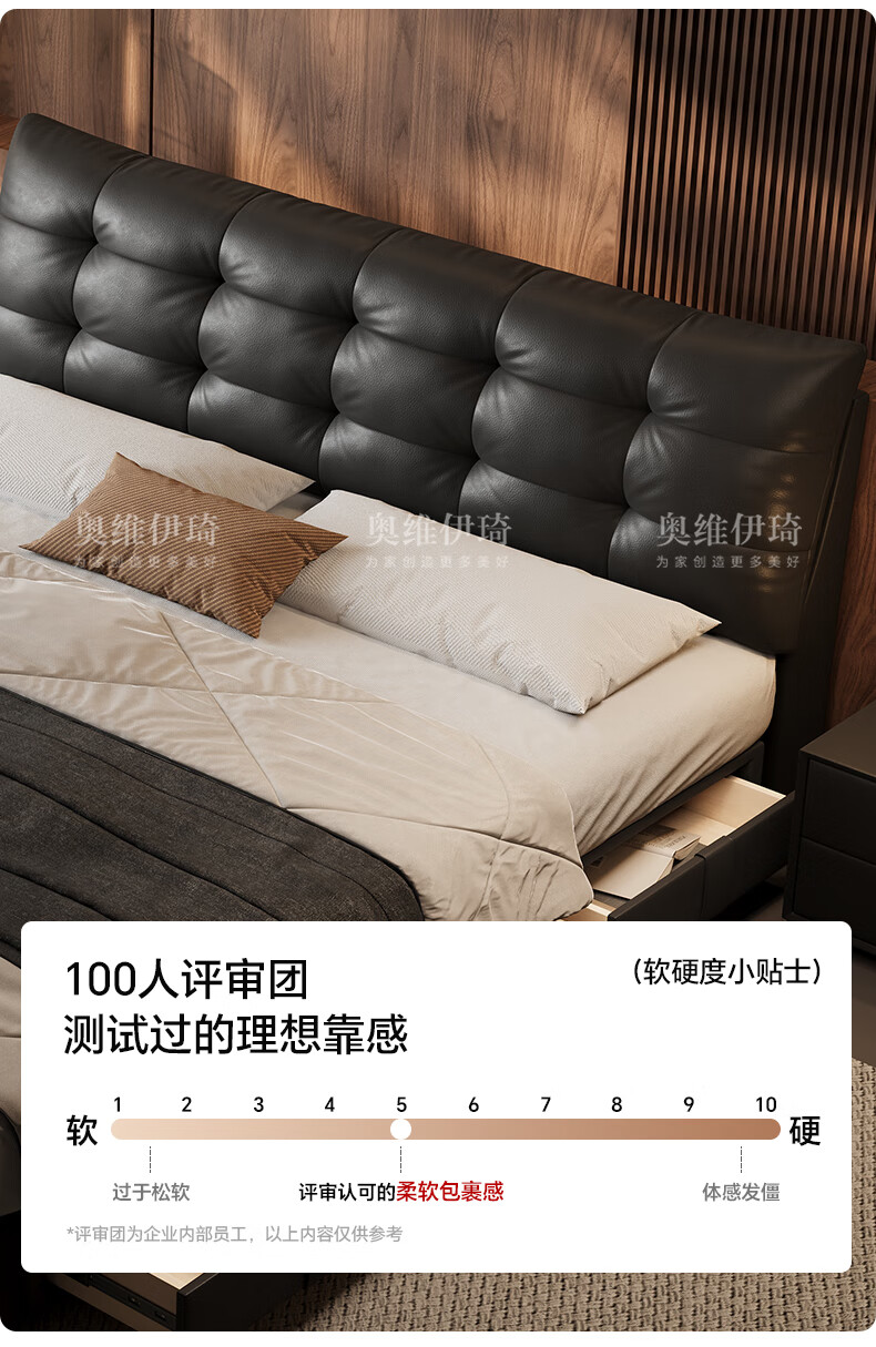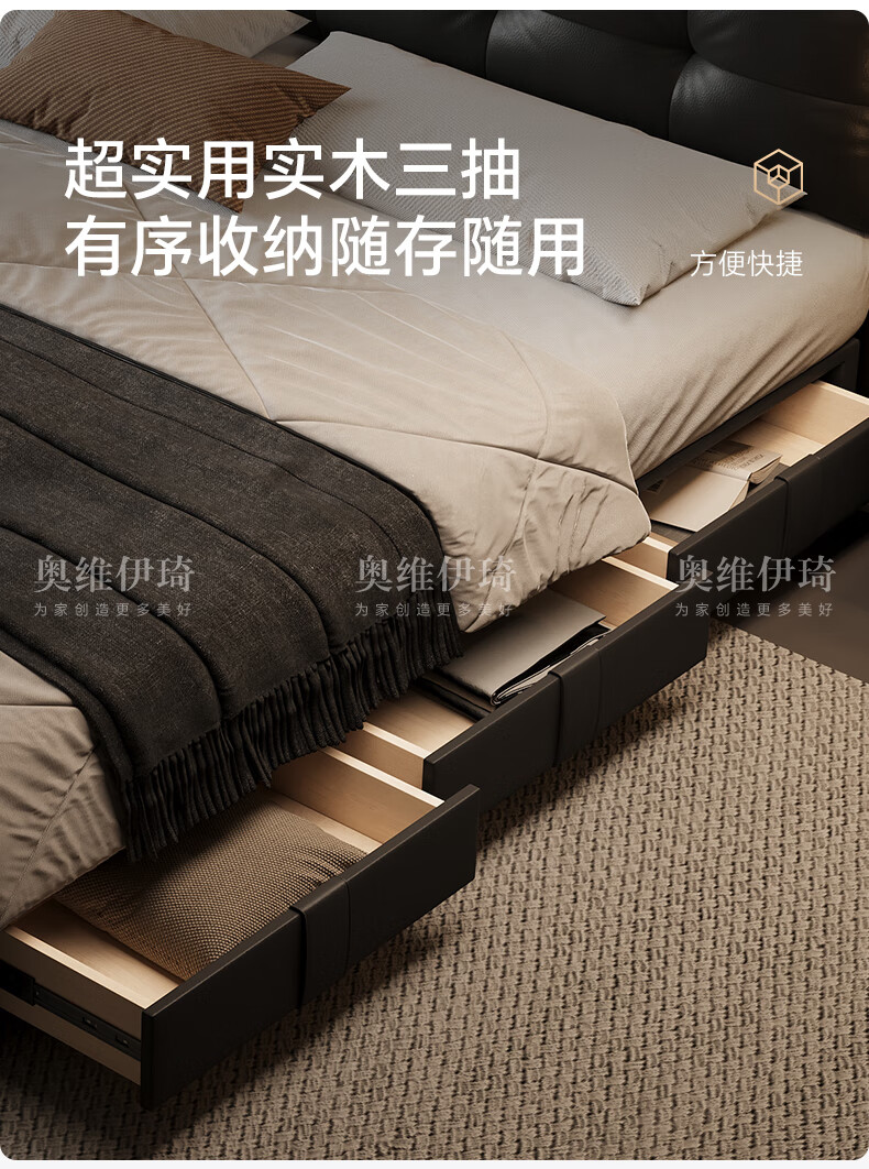 奥维伊琦2025年新款全实木储物皮艺床真皮床主卧大床双人床婚床 (豪华版)头层牛皮单床 1.5米*2.0米【框架款】