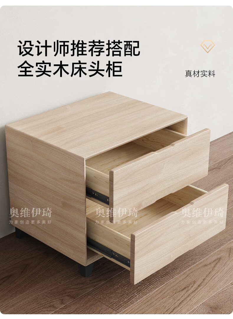 科虎实木床双人床1.8x2米主卧大床家用1.5x2米 原木色橡木床+20cm弹簧垫+床头柜*2【桐木宽铺板】 180*200cm