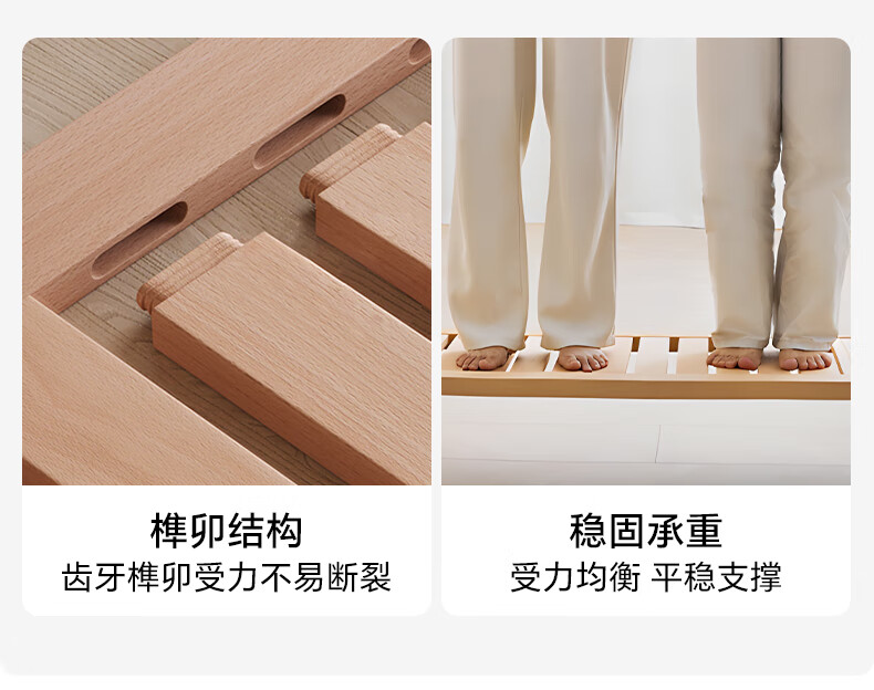 科虎实木床双人床1.8x2米主卧大床家用1.5x2米 【松木排骨架】原木色橡木床 120*200cm