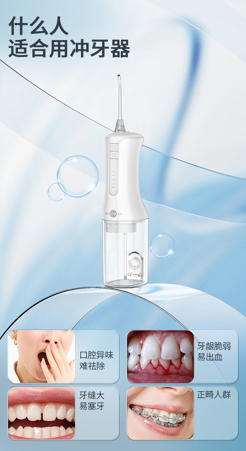 博皓(prooral)冲牙器便携家用洗牙器牙齿冲洗器电动洁牙器水牙线牙结石牙垢去除器 送父母朋友礼物 F40 豆沙绿