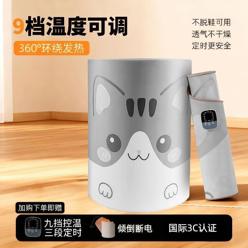 暖脚围取暖器办公室桌下暖脚器暖足器过冬神器学生写字加热垫暖腿神器暖身暖手全身 灰色棉麻数显款-三档温控