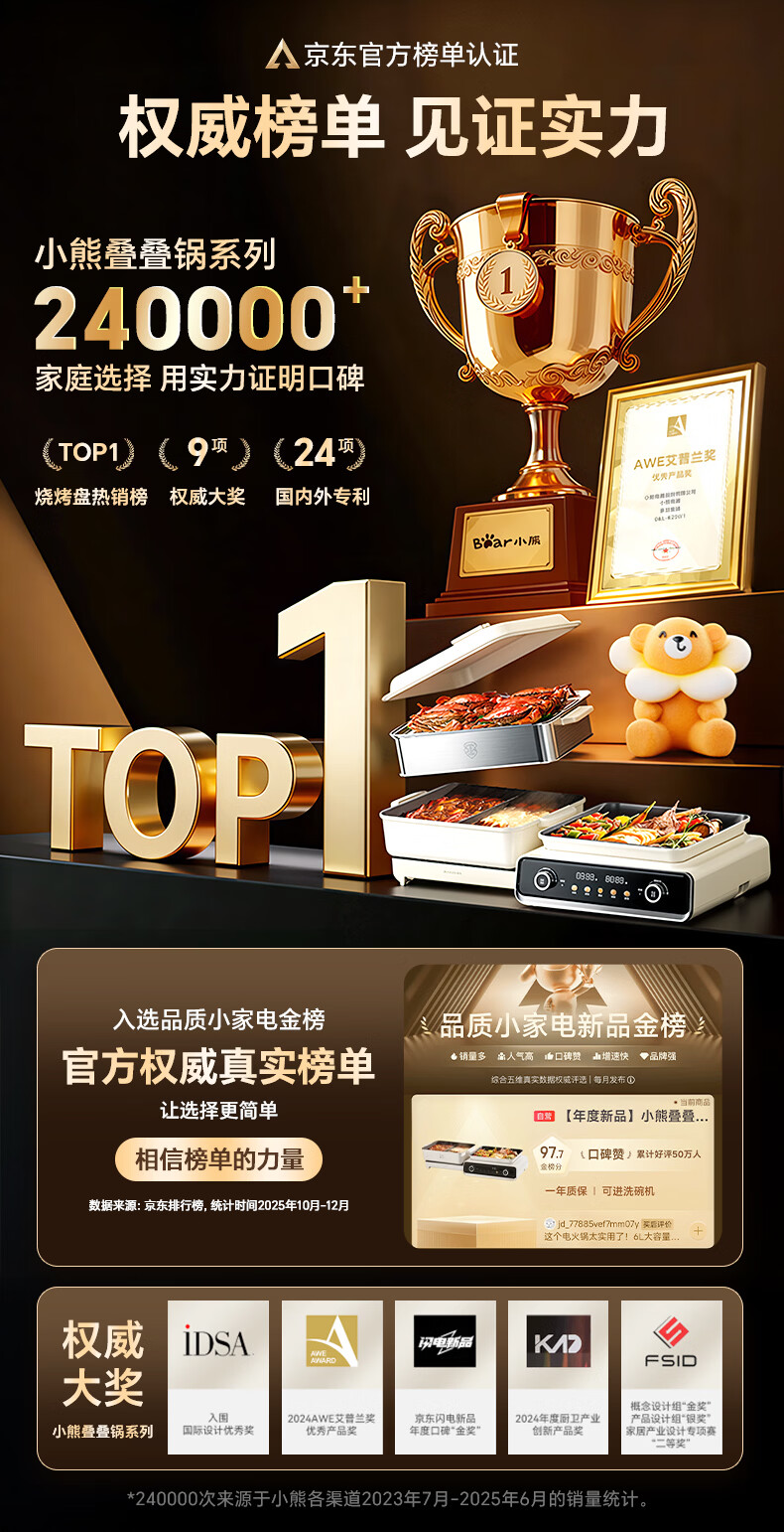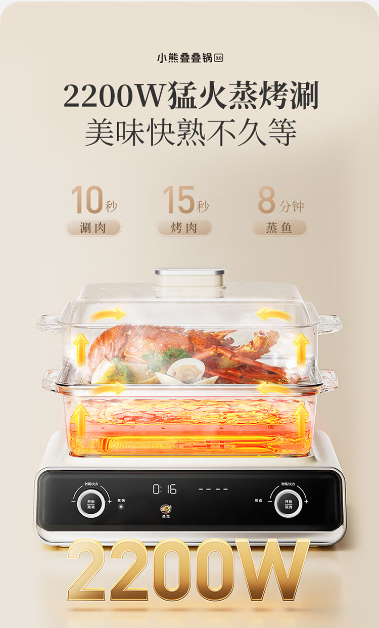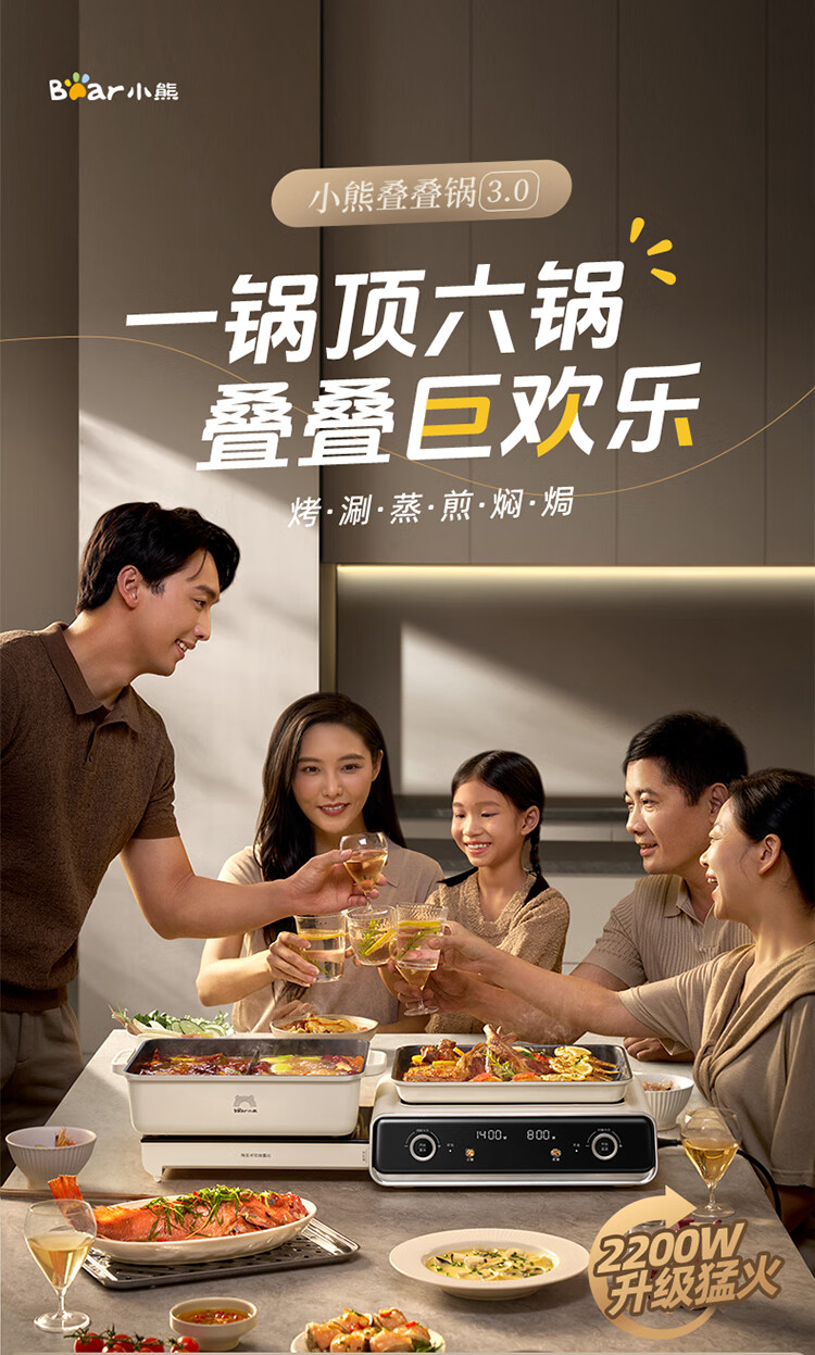 小熊(Bear)电火锅专用锅 折叠多功能锅蒸煮多用途烤涮一体家用料理小熊叠叠锅3.0鸳鸯锅N22P3