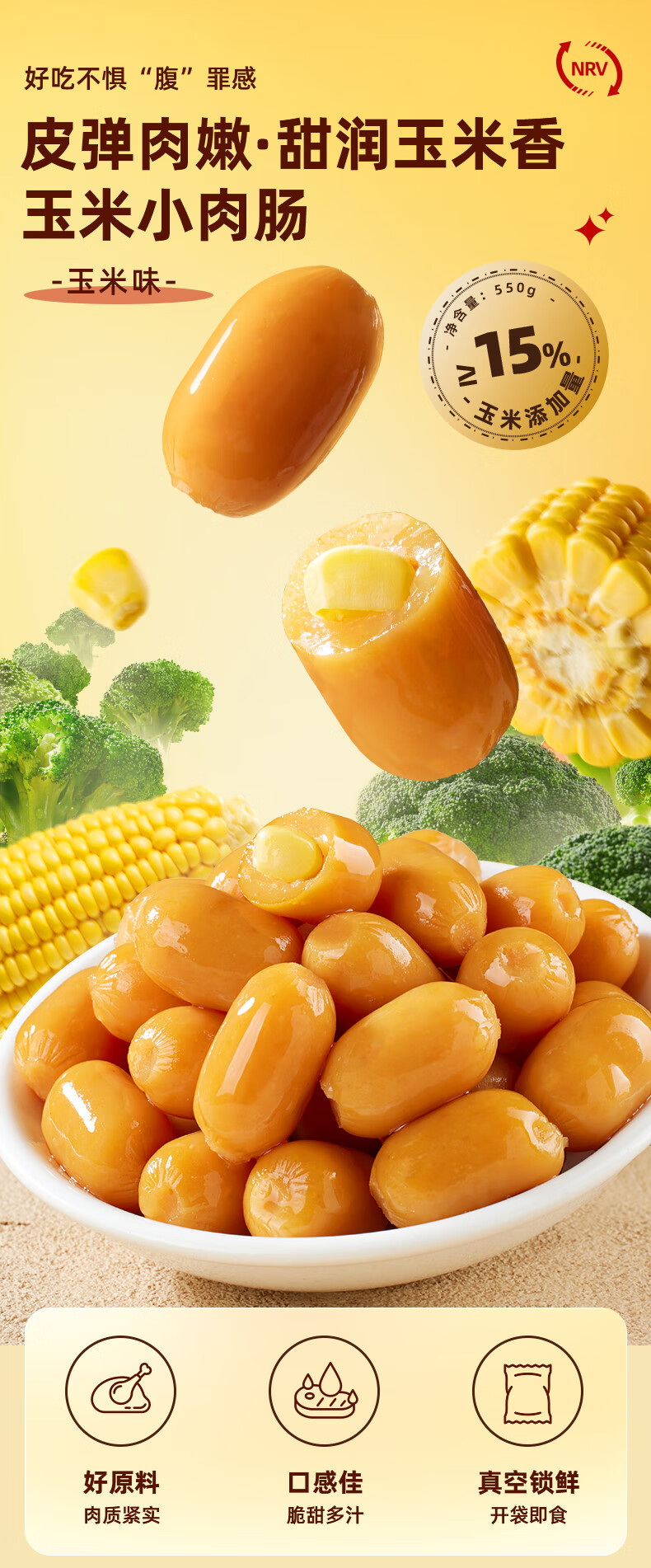 三只松鼠玉米小肉肠550g 即食香肠肉枣肠肉干休闲零食解馋小吃火腿肠