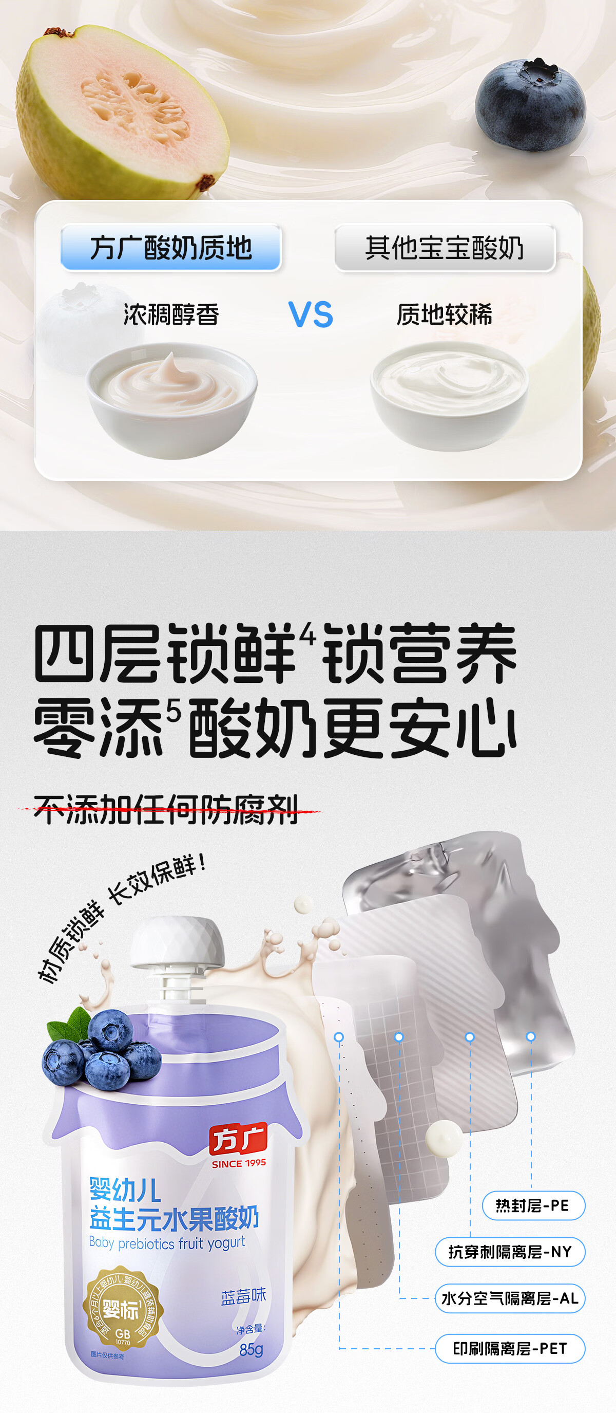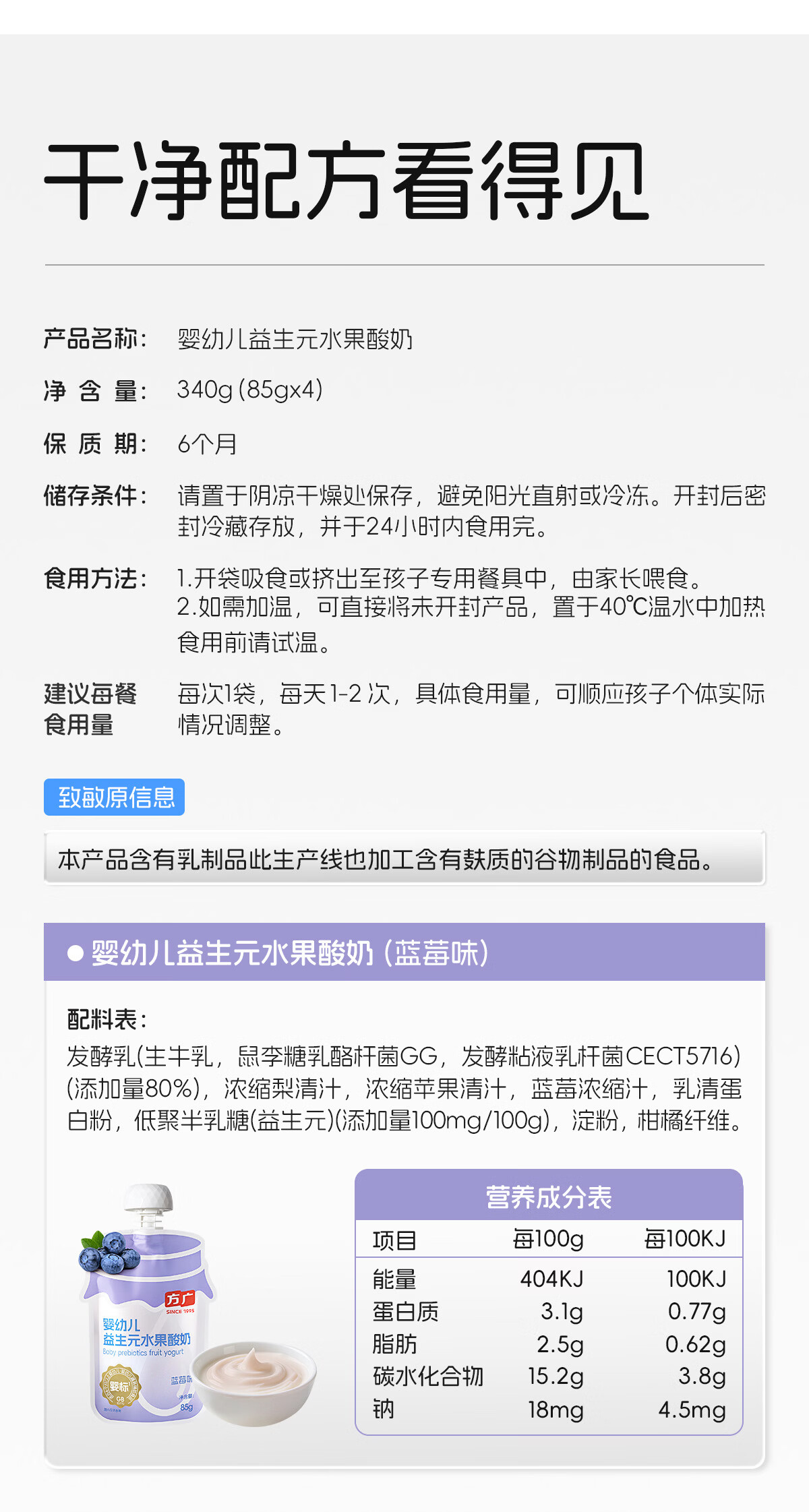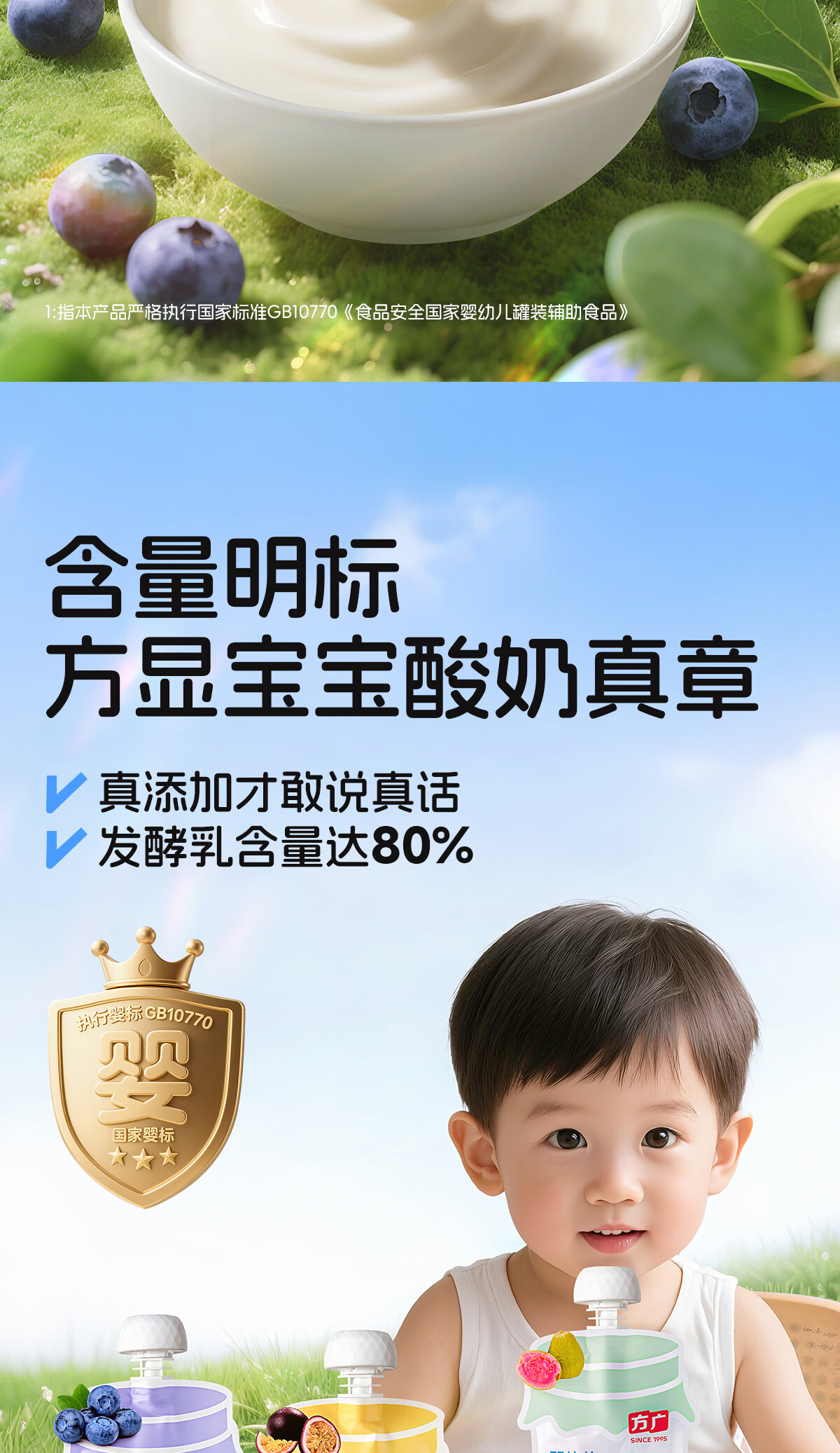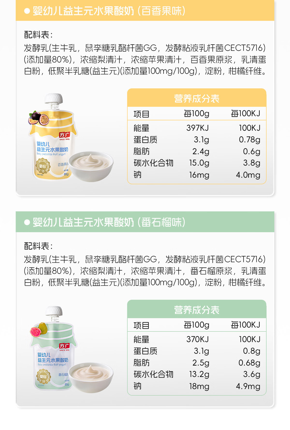 方广婴幼儿益生元水果酸奶无添加婴标常温宝宝酸奶缤纷尝鲜装30g*3袋 婴标酸奶(蓝莓味+番石榴味+百香果味) 30g*3袋 尝鲜装