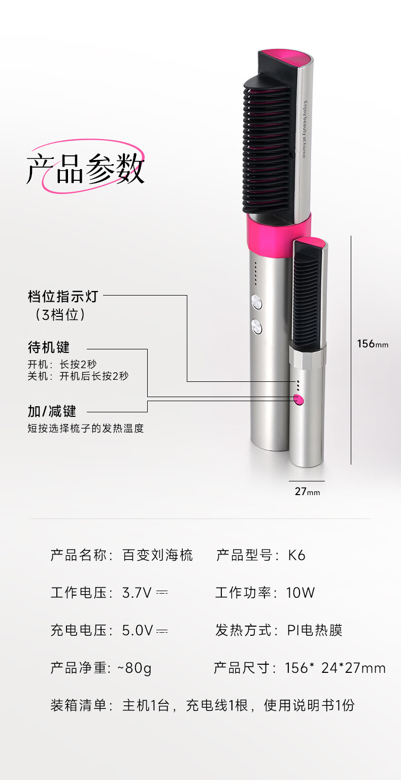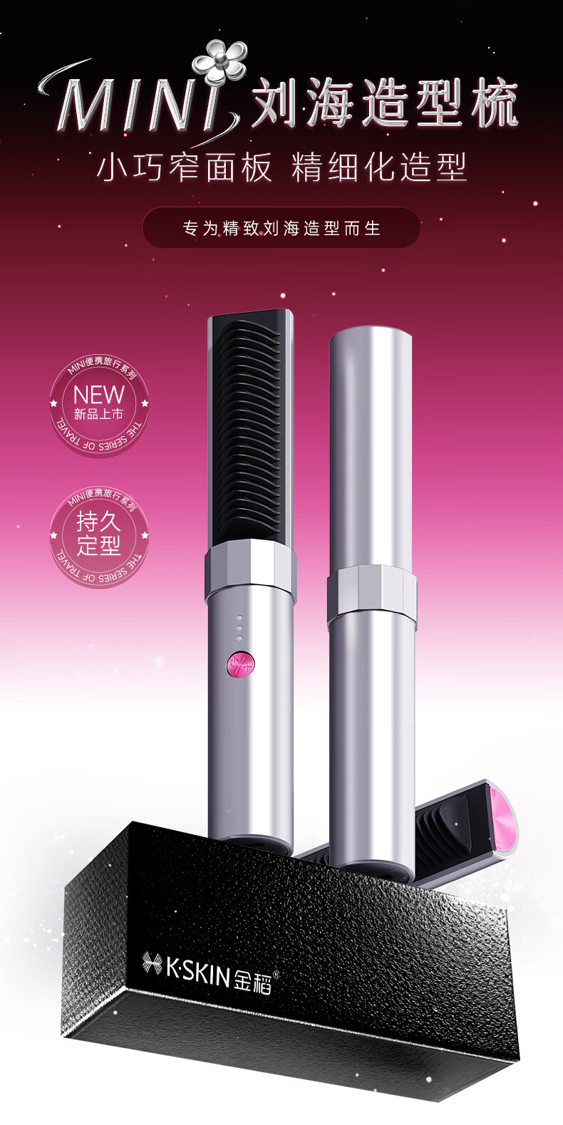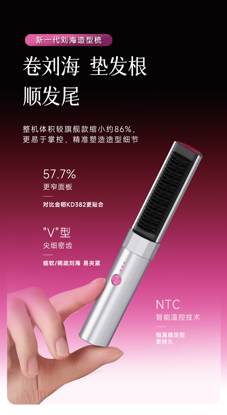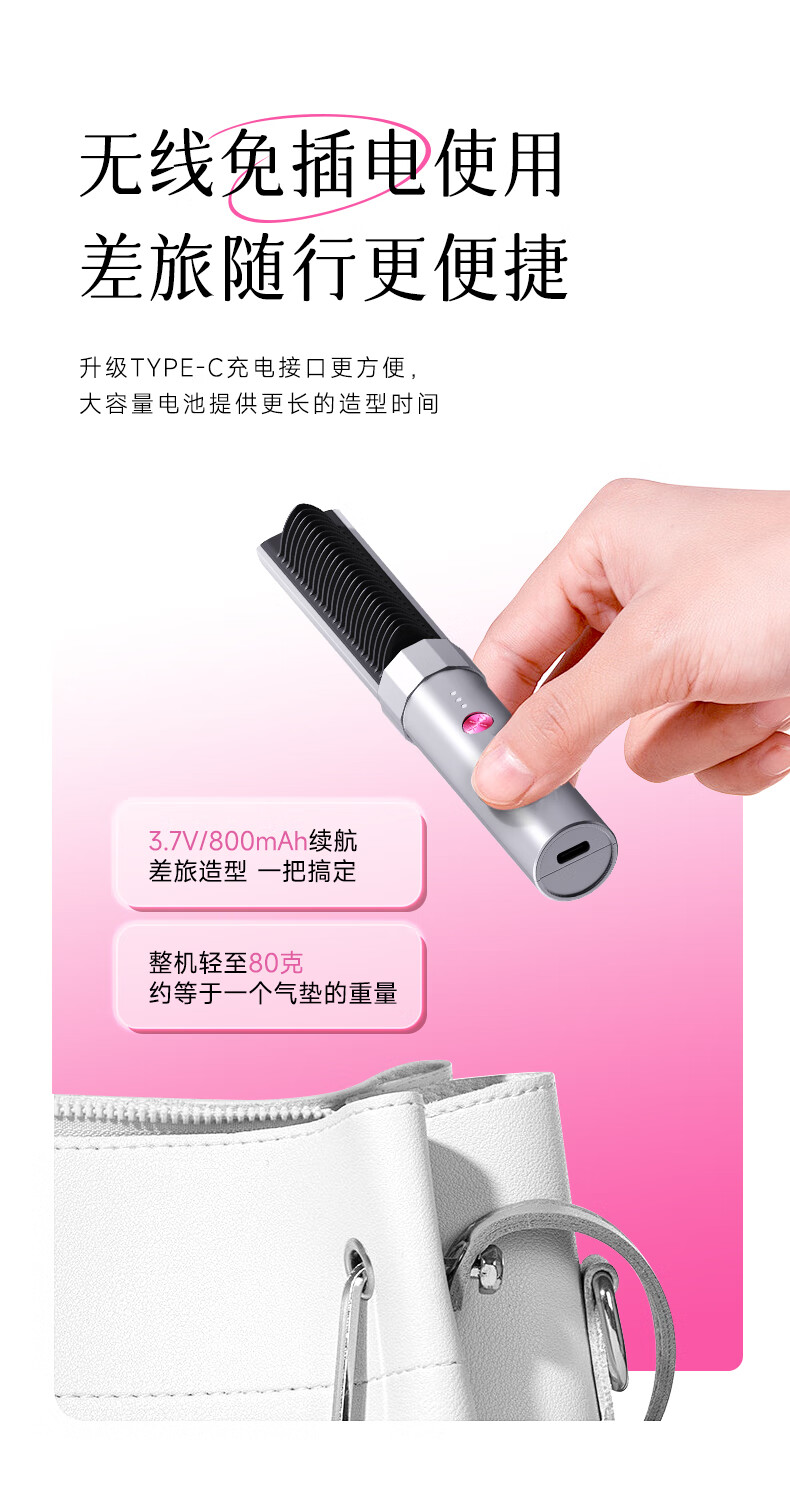 金稻迷你无线直发梳八字刘海造型梳护发卷直两用神器卷发梳子家用礼物宿舍用k6 新年礼物年会礼品