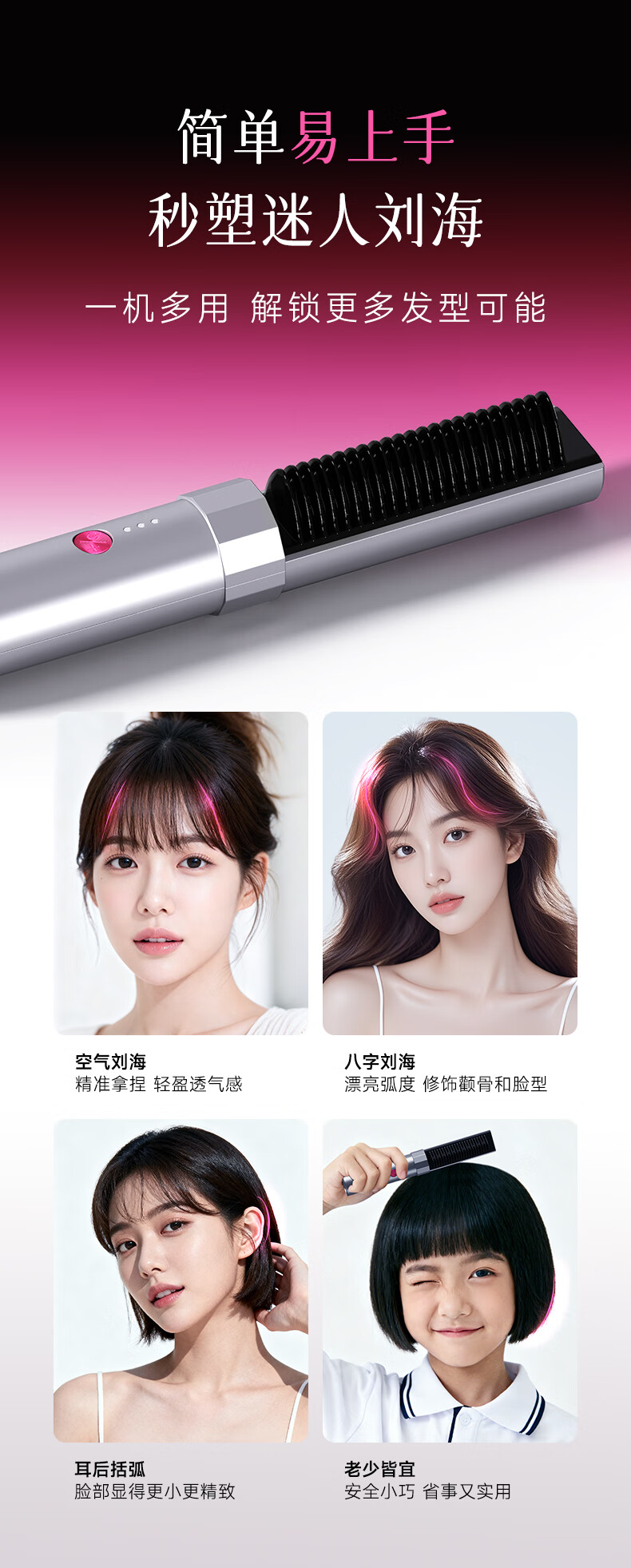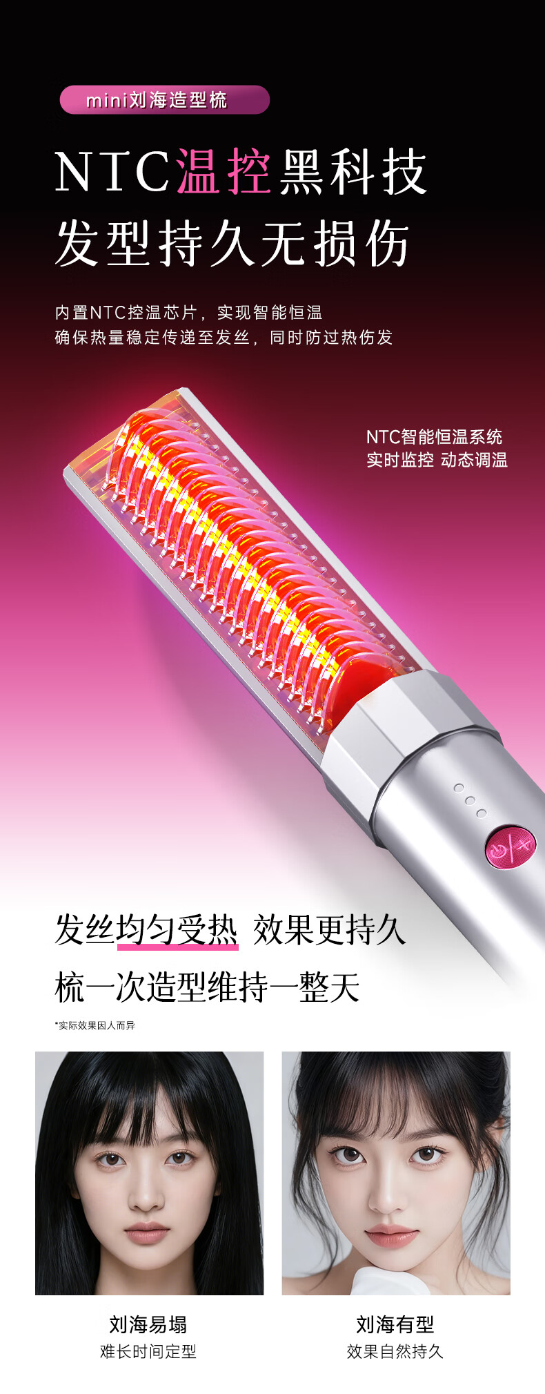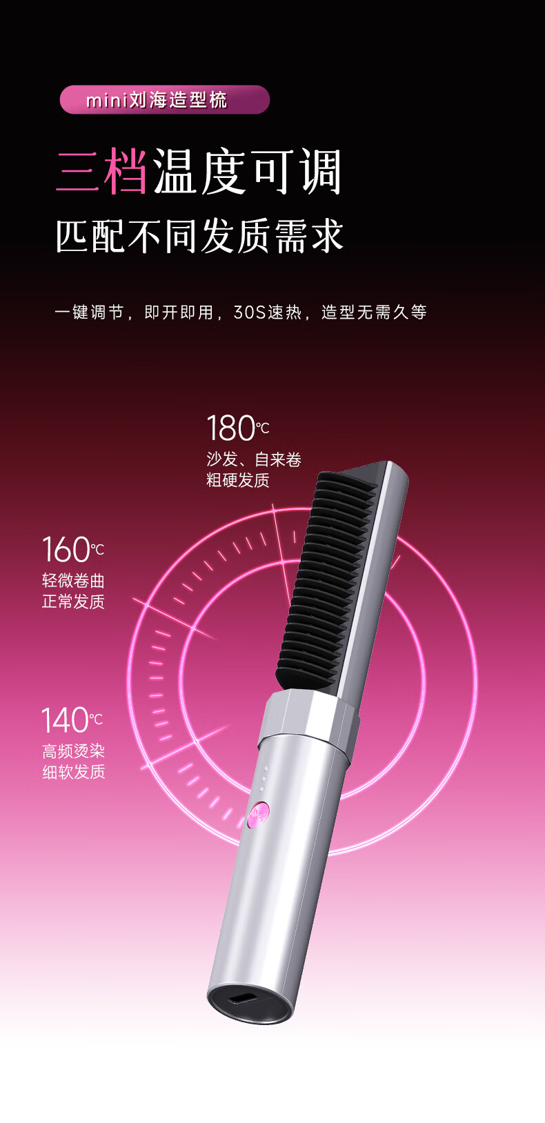 金稻迷你无线直发梳八字刘海造型梳护发卷直两用神器卷发梳子家用礼物宿舍用k6 新年礼物年会礼品