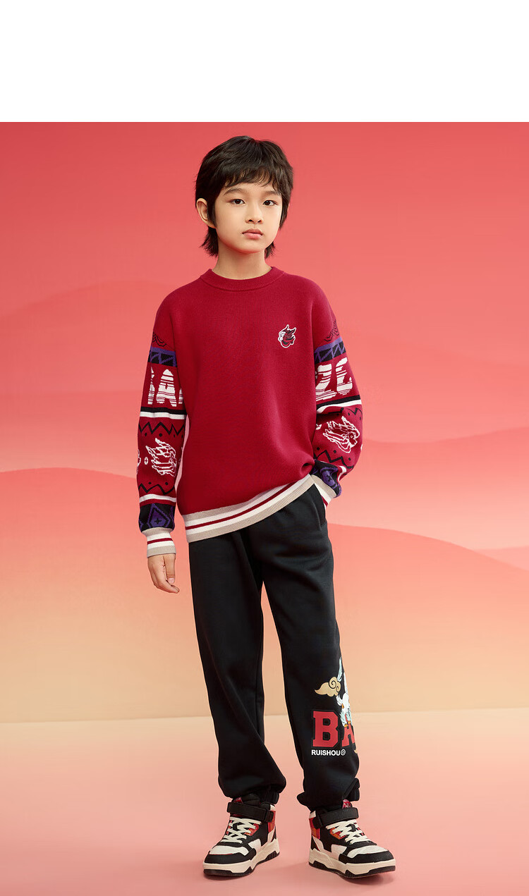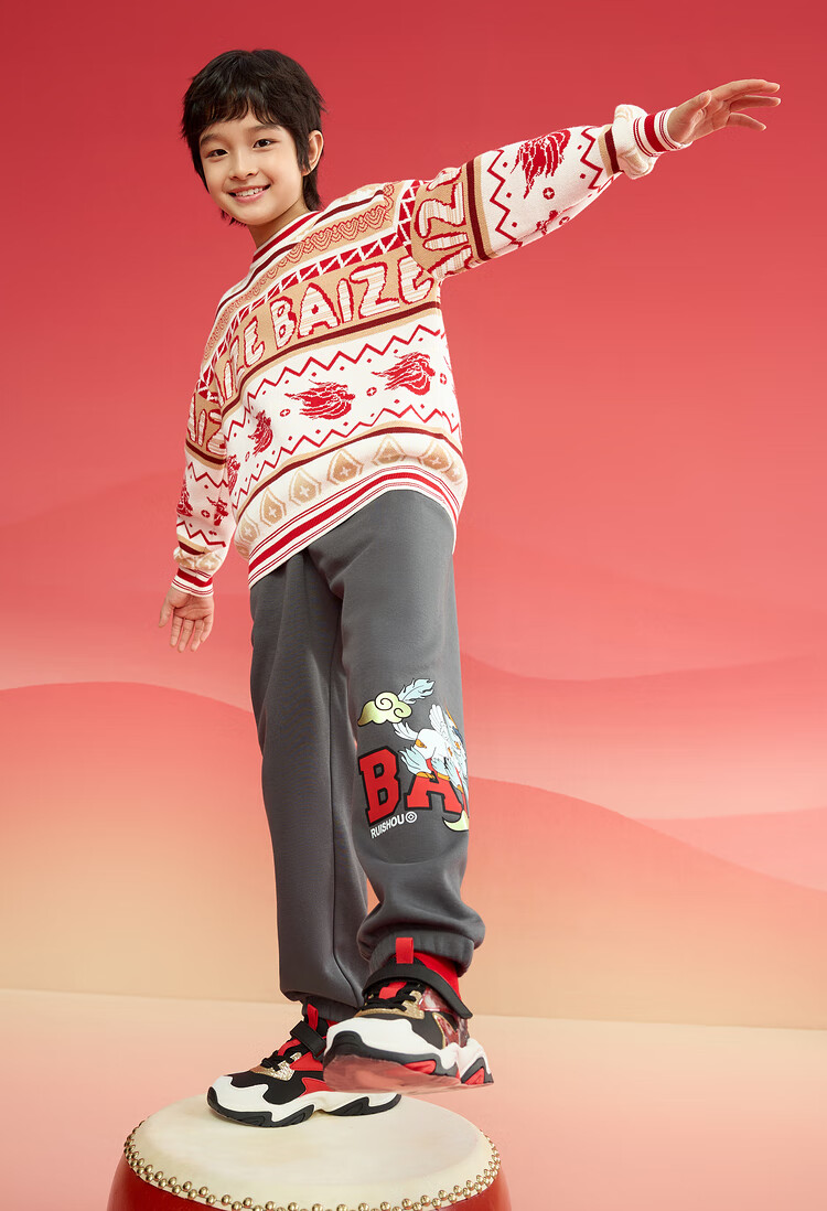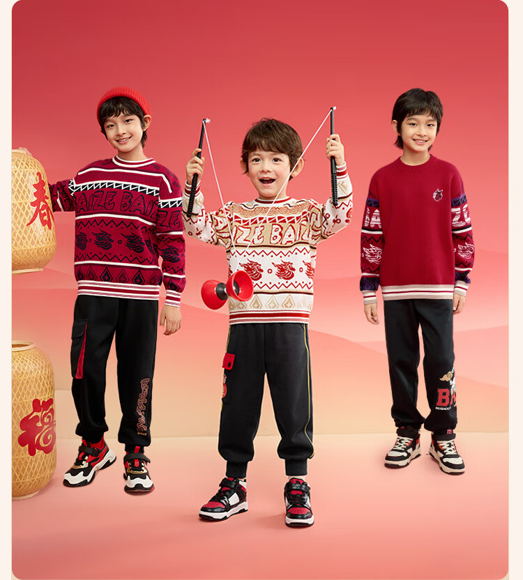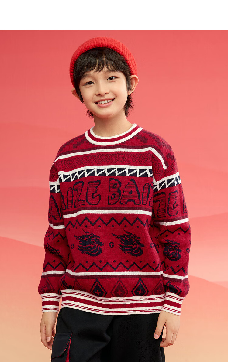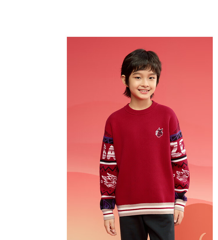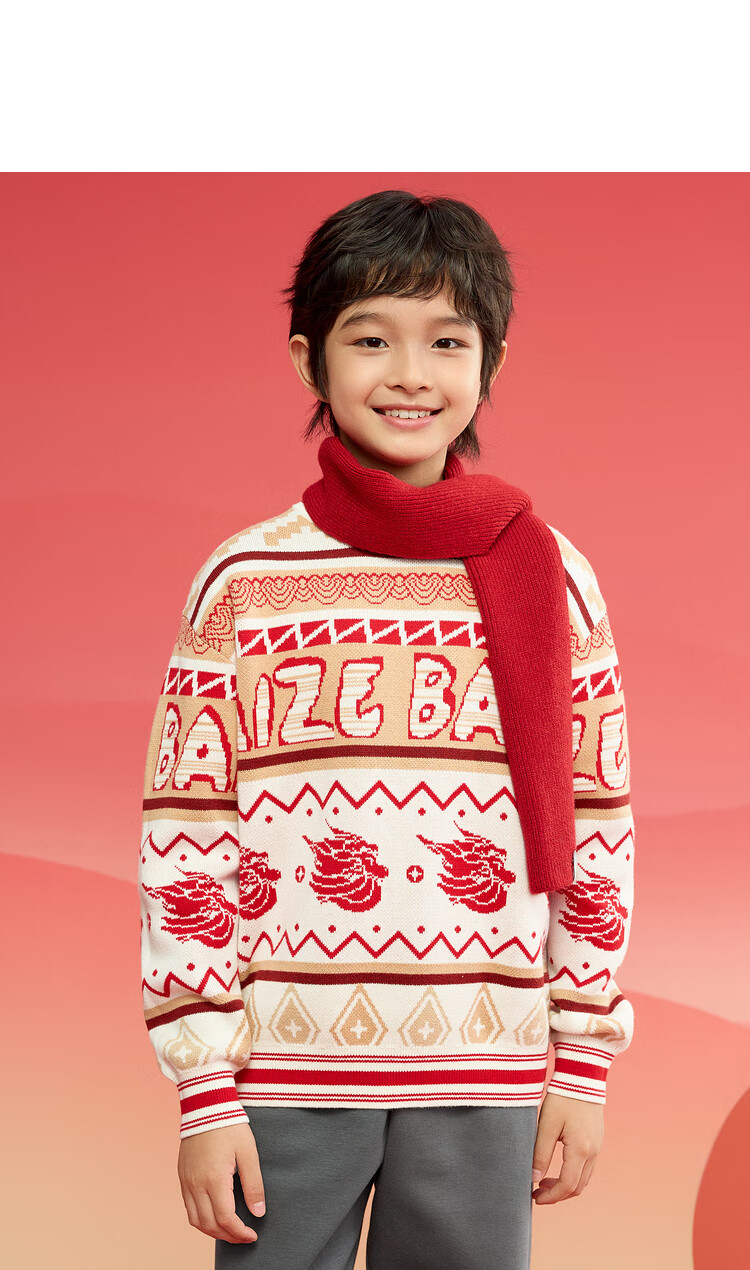 巴拉巴拉男童毛衣儿童毛衫2025新春装拜年服国风针织衫提花潮208125103102