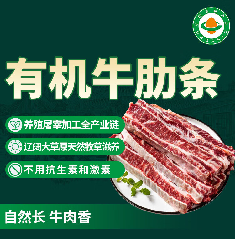 德远斋锡林郭勒草原有机牛肋条1kg 国产有机原切牛肉生鲜 炖煎红烧