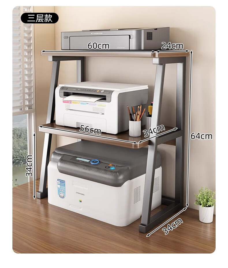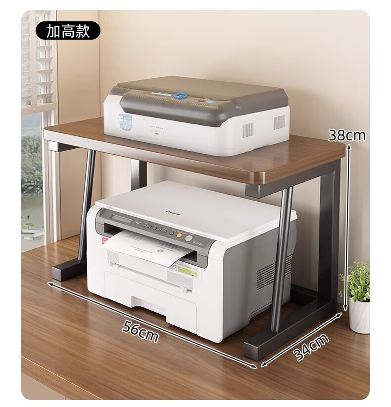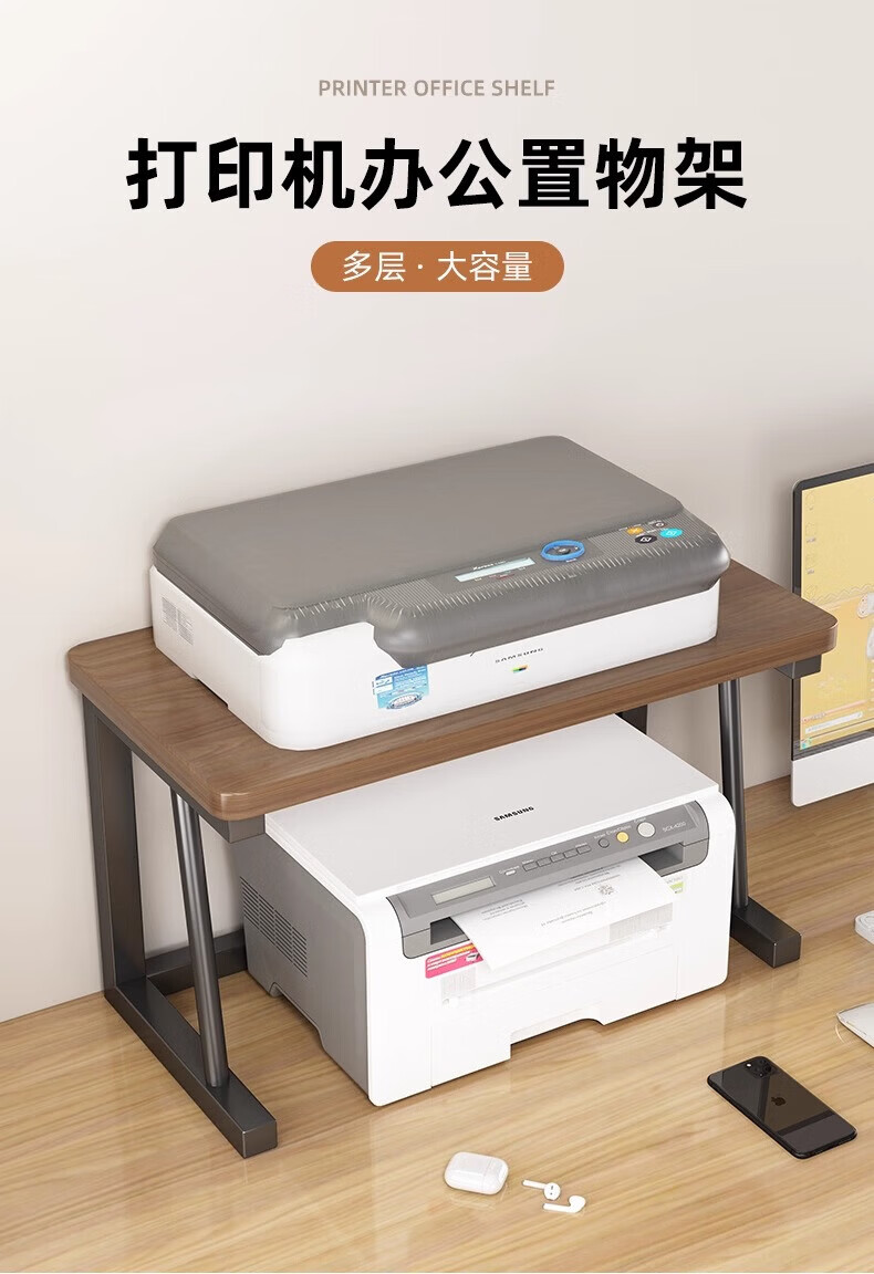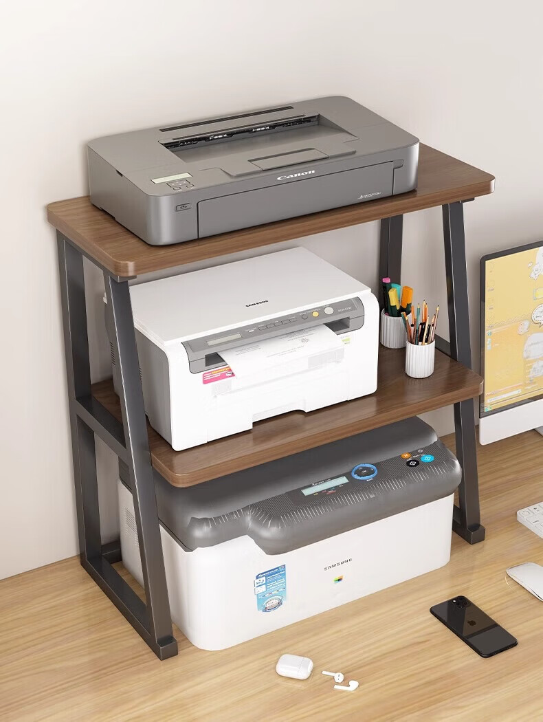 馨婺家桌面打印机置物架多层式文件A4纸整理架家用办公增高复印机收纳架 胡桃色-标准款【48*30*27】