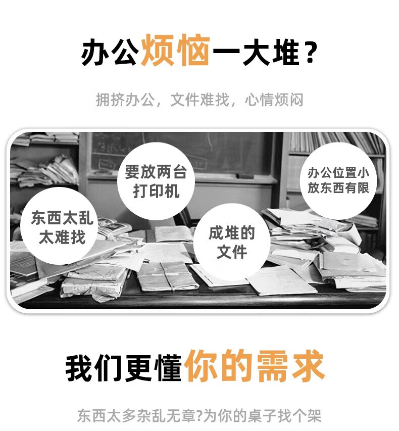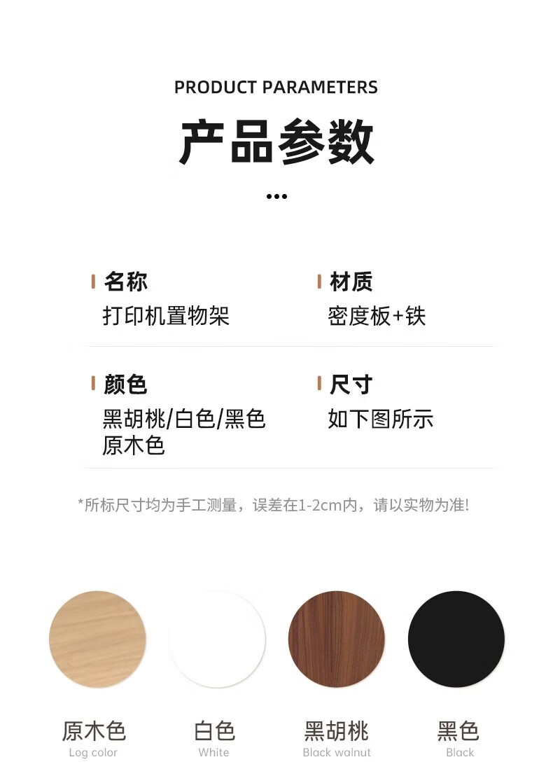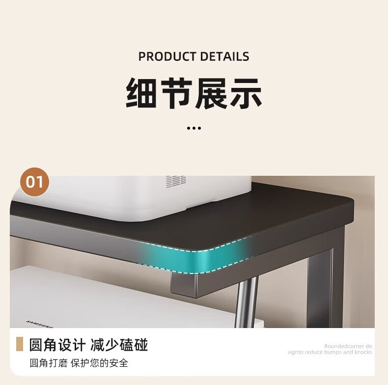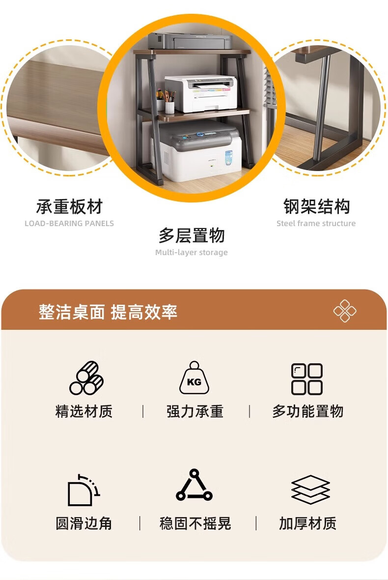 馨婺家桌面打印机置物架多层式文件A4纸整理架家用办公增高复印机收纳架 胡桃色-标准款【48*30*27】