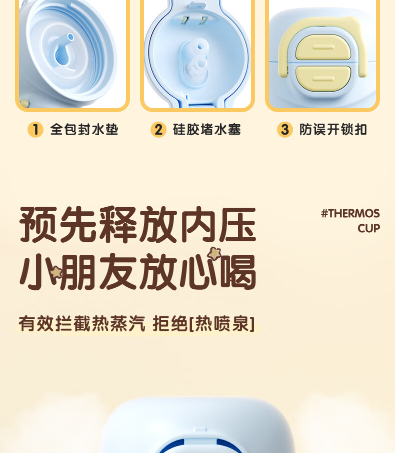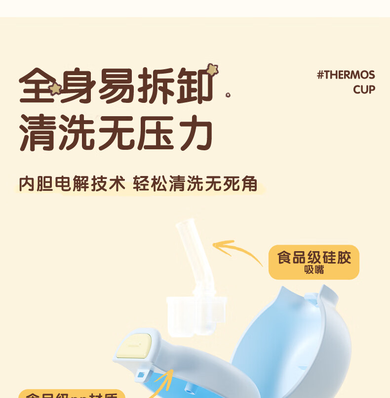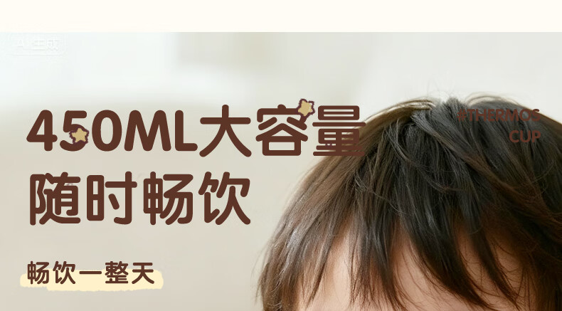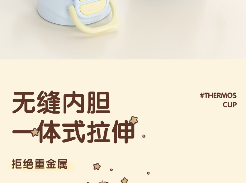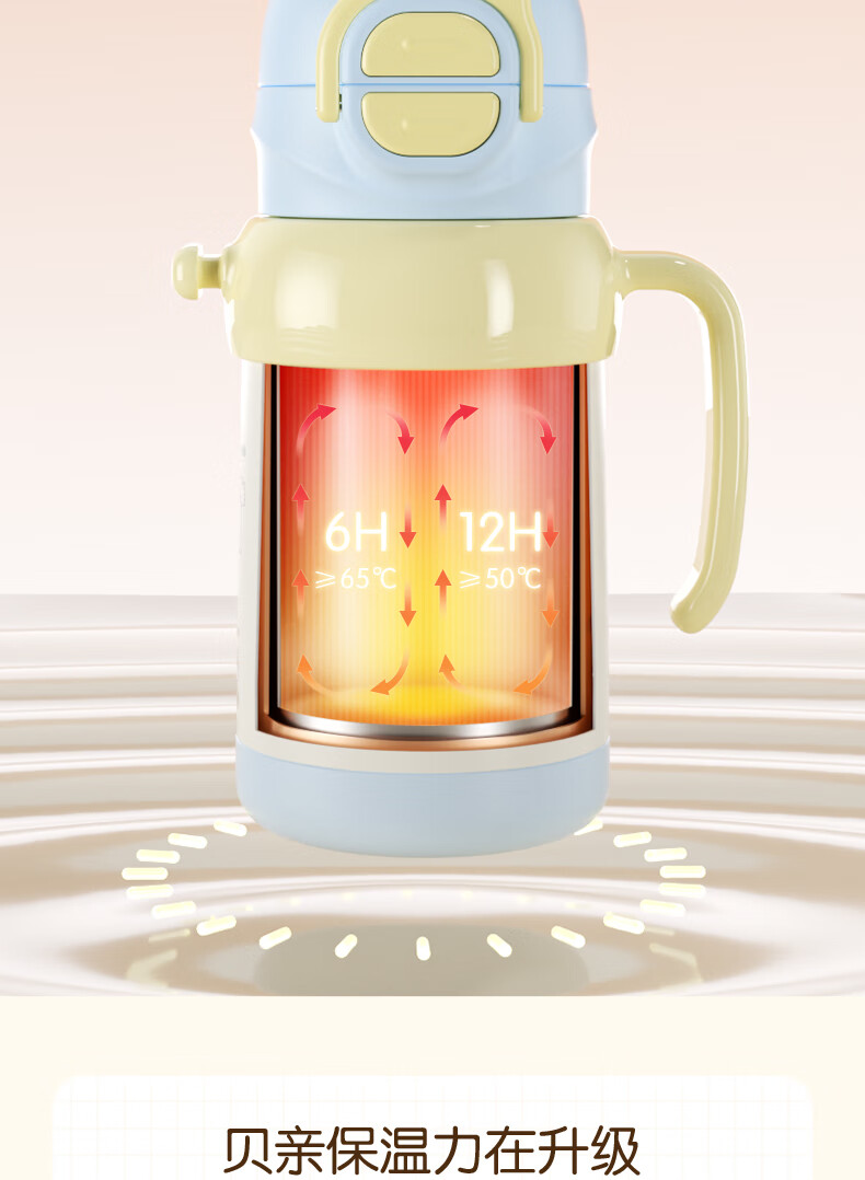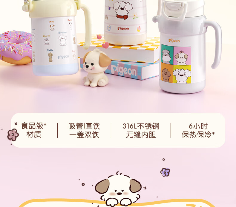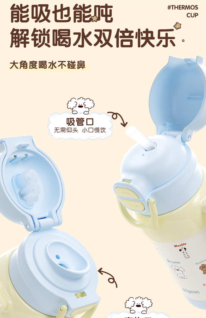 贝亲保温杯儿童吸管杯 学生便携双饮水杯单手柄450ml(蓝色萌爪小分队)