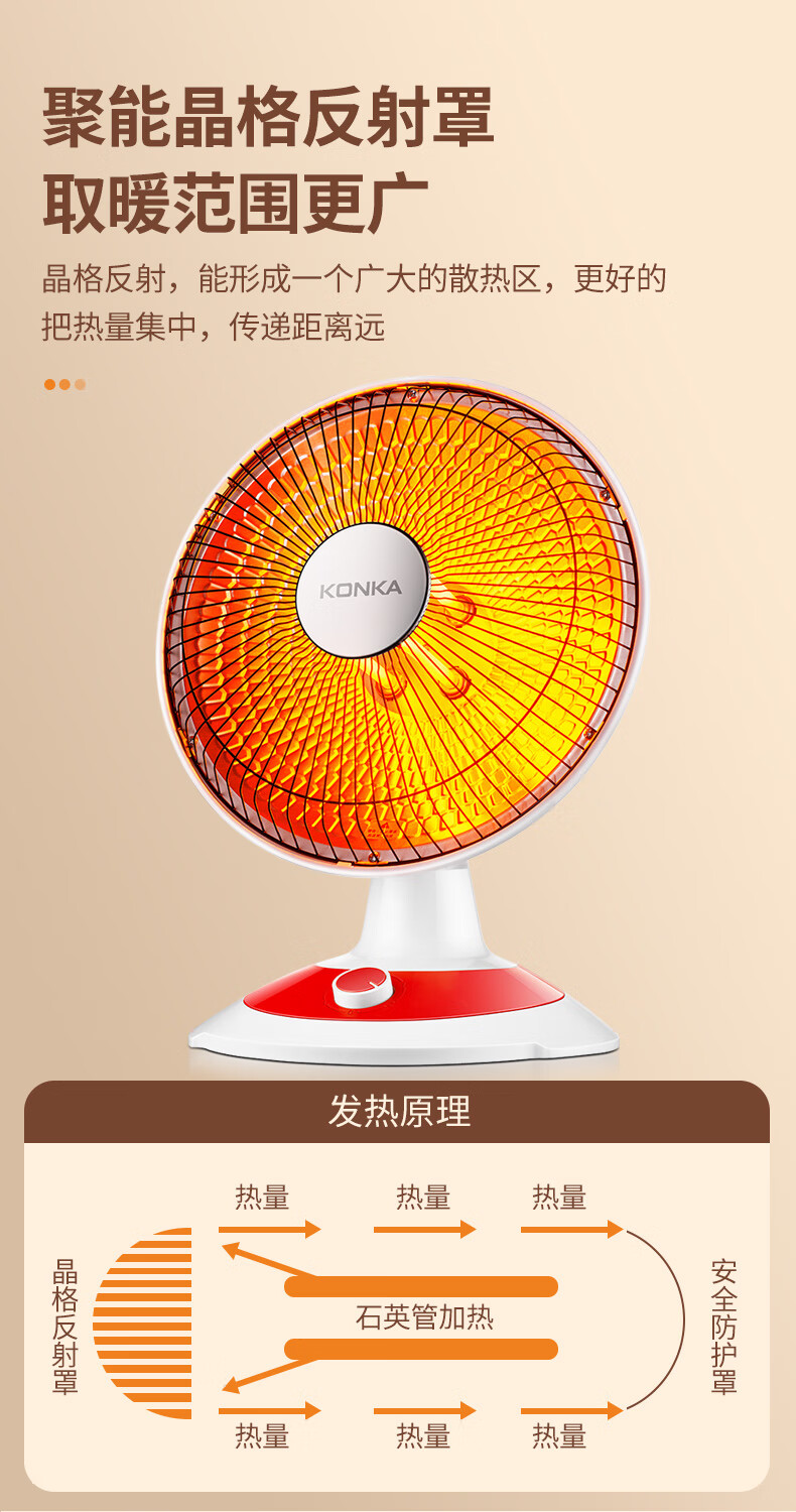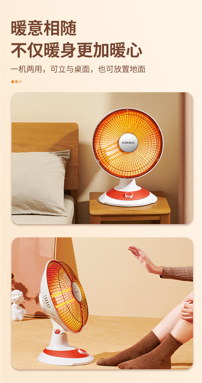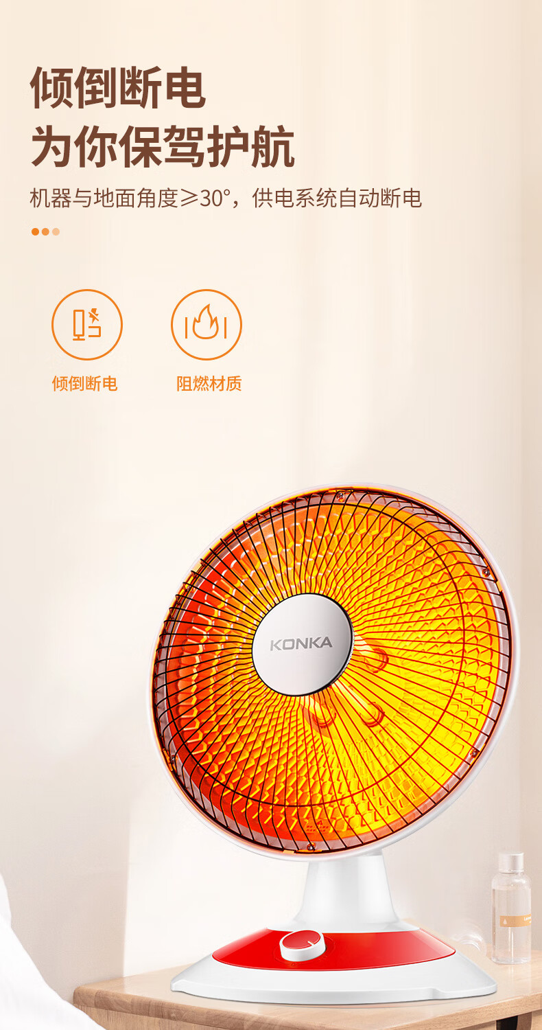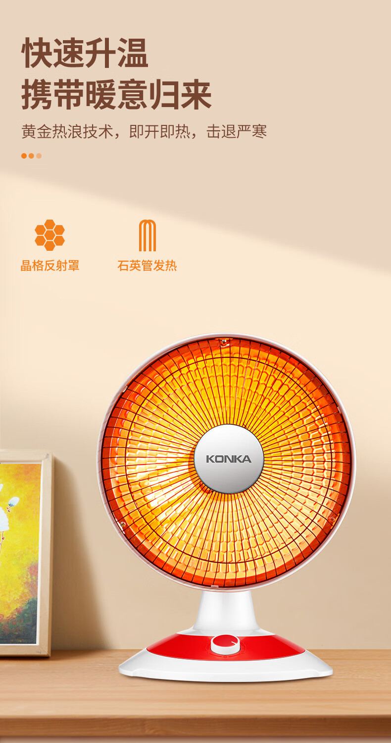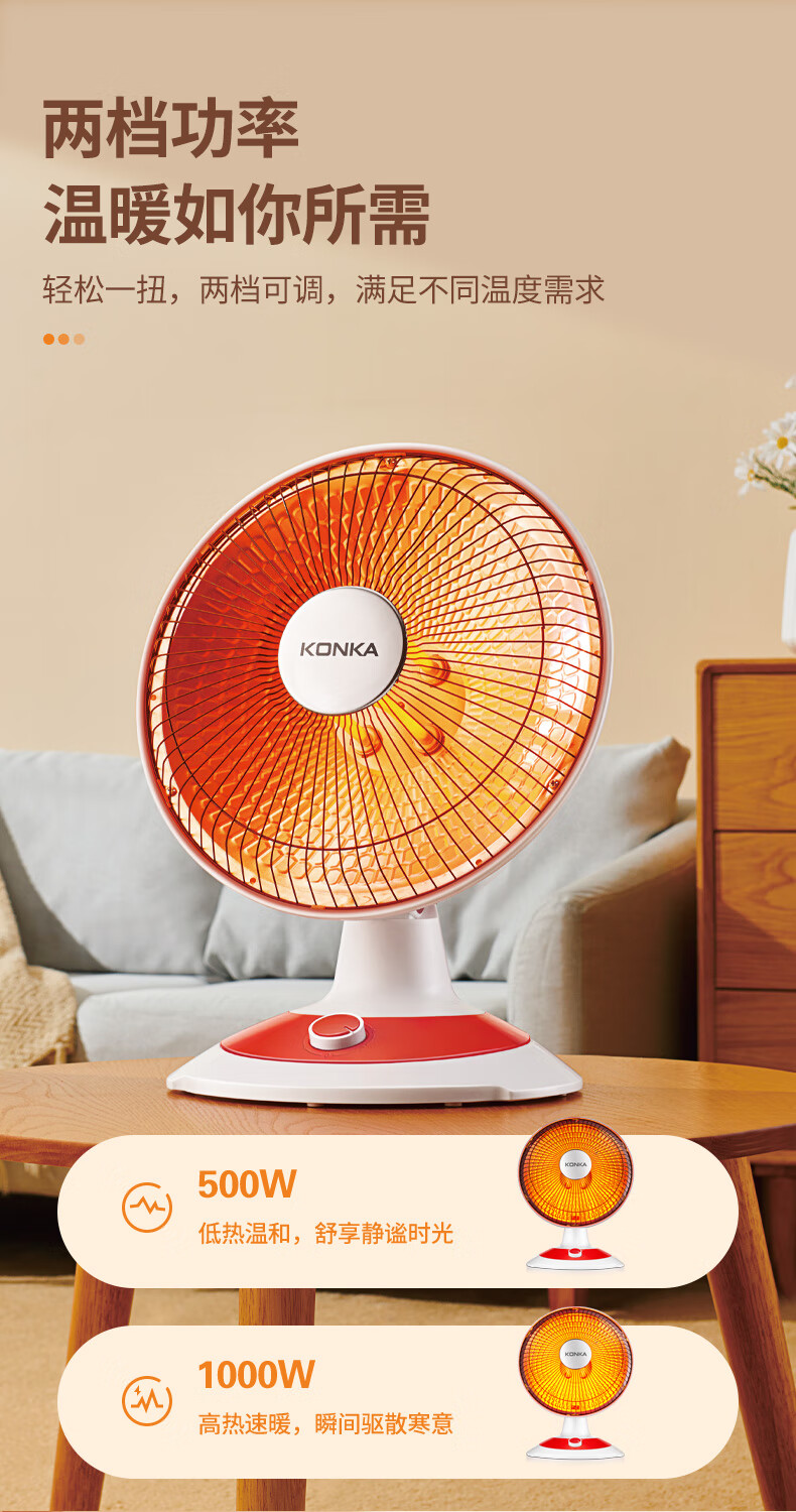 康佳(KONKA)取暖器家用小太阳电暖器轻音电暖气取暖烤火炉台式电热两档调节速热倾倒断电 KH-TY15