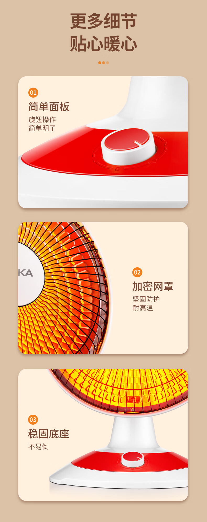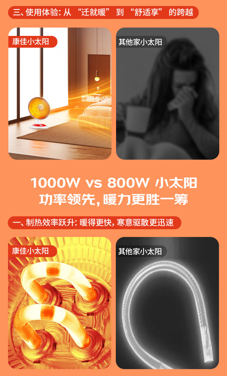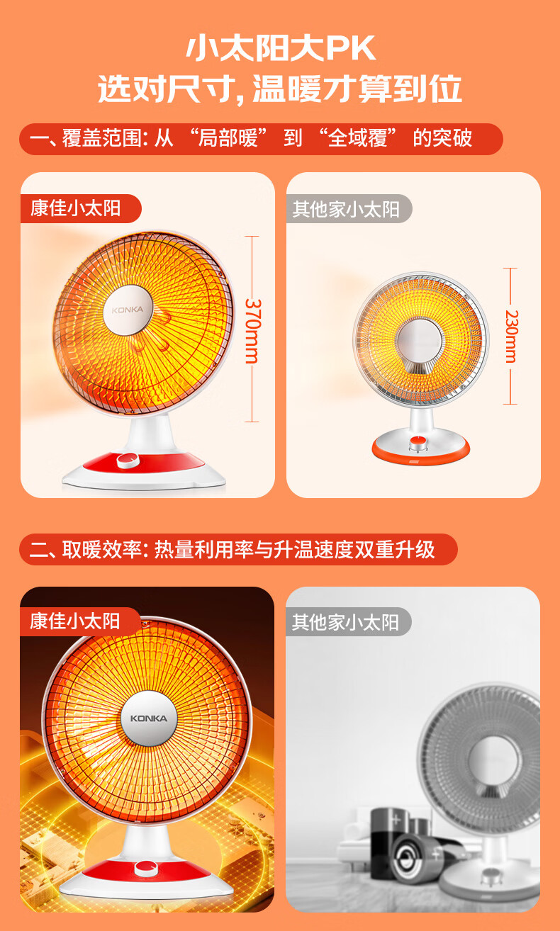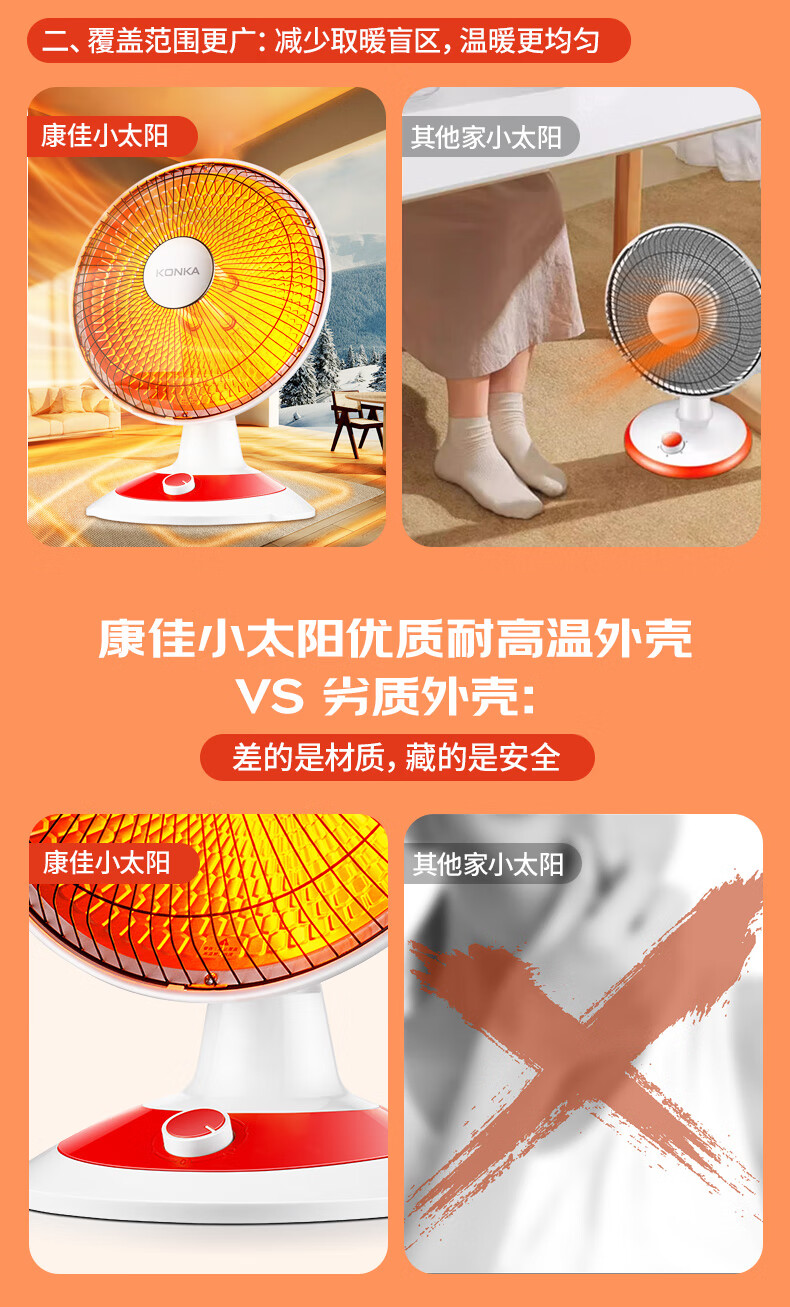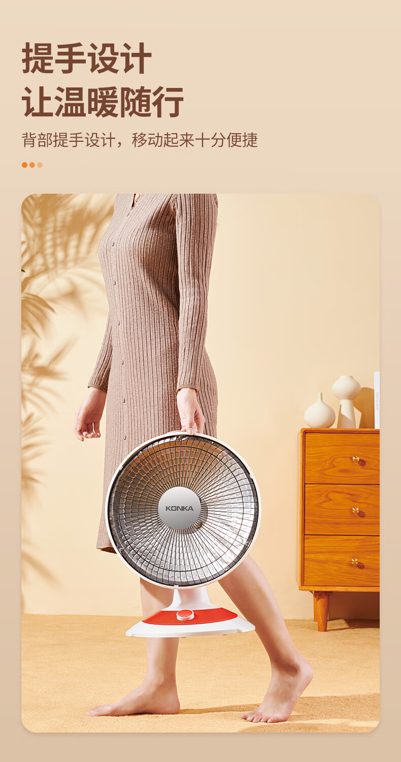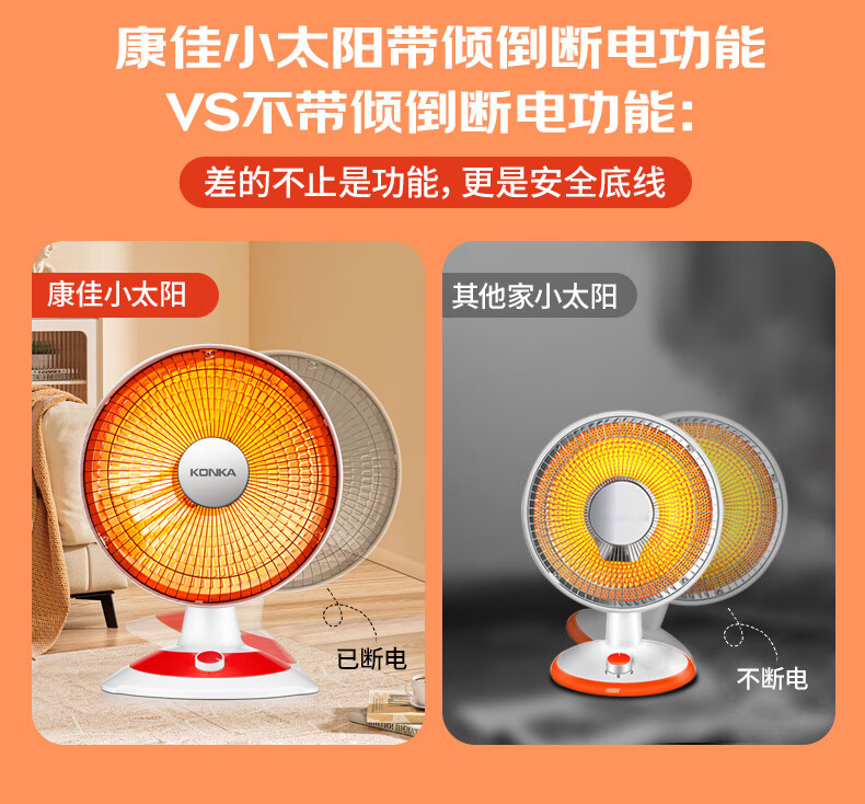 康佳(KONKA)取暖器家用小太阳电暖器轻音电暖气取暖烤火炉台式电热两档调节速热倾倒断电 KH-TY15
