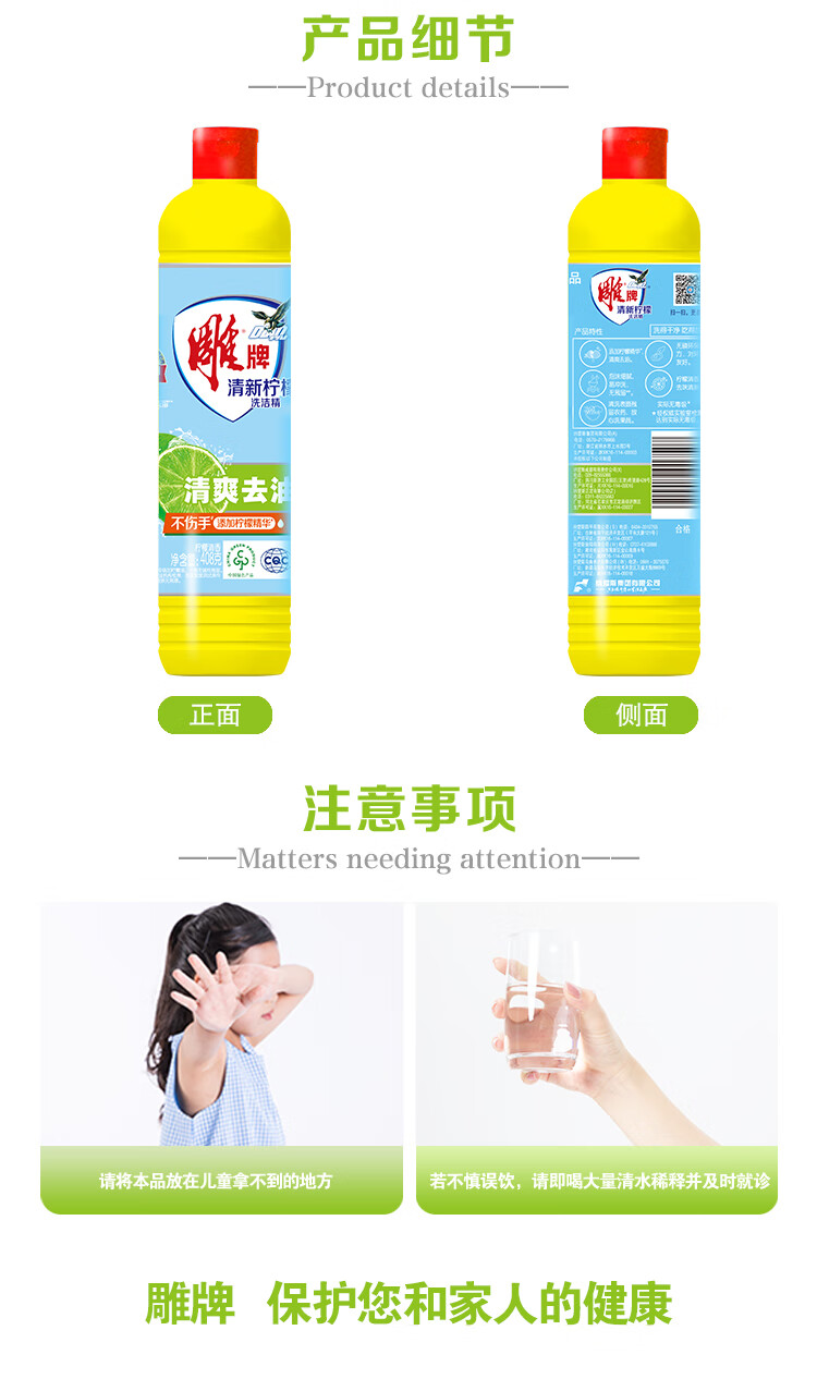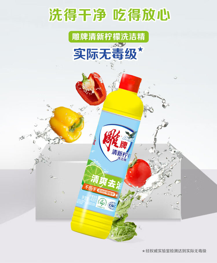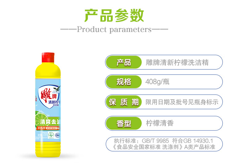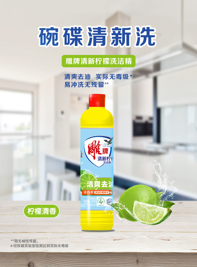 雕牌【严选】柠檬洗洁精家庭宿舍实惠洗果蔬餐具洗碗剂 408g*1瓶