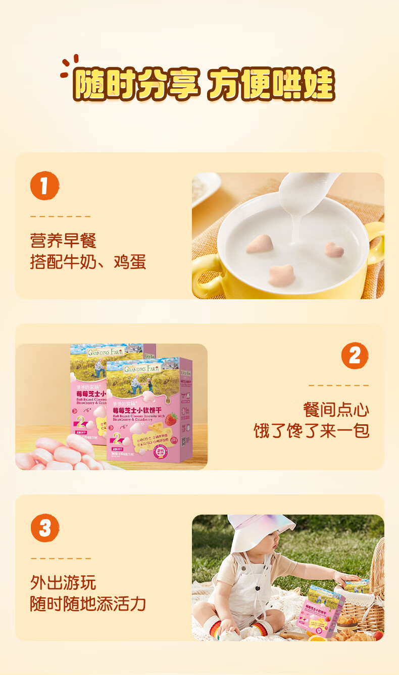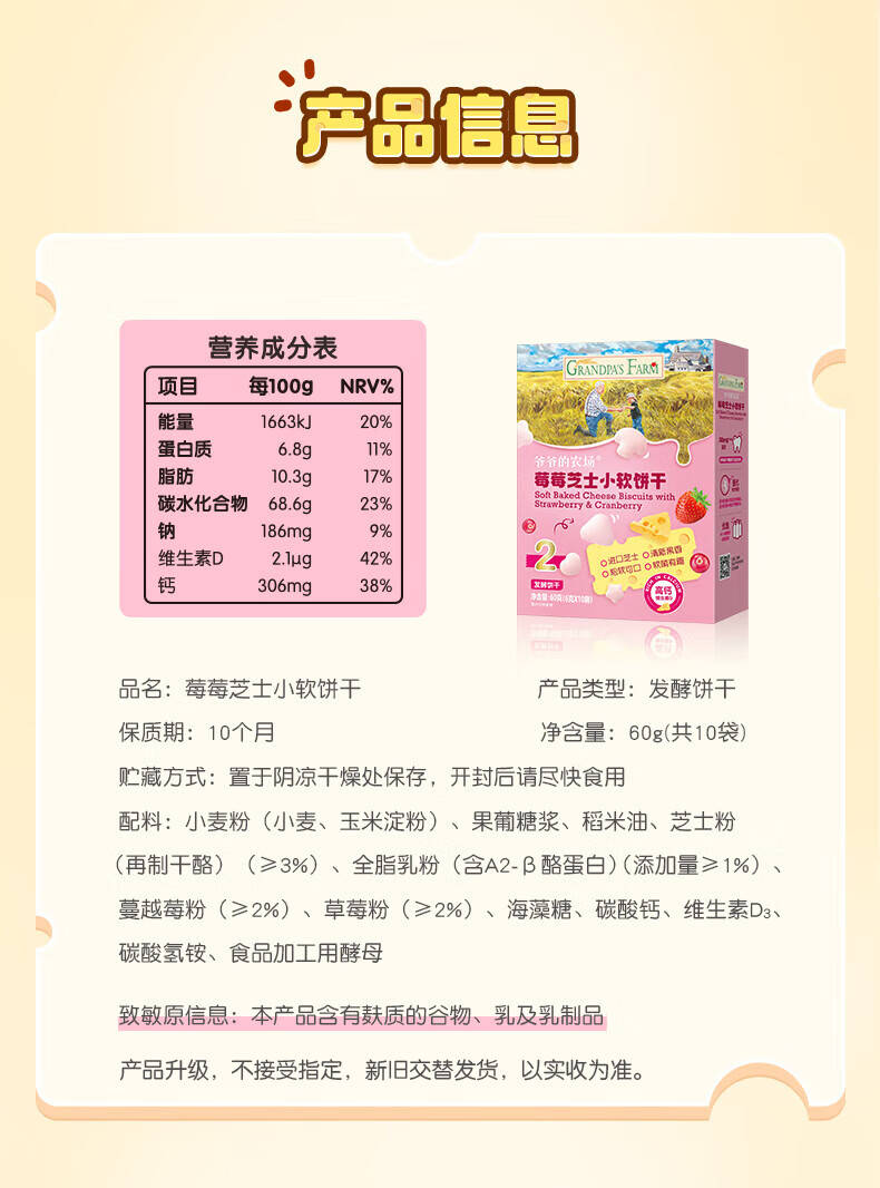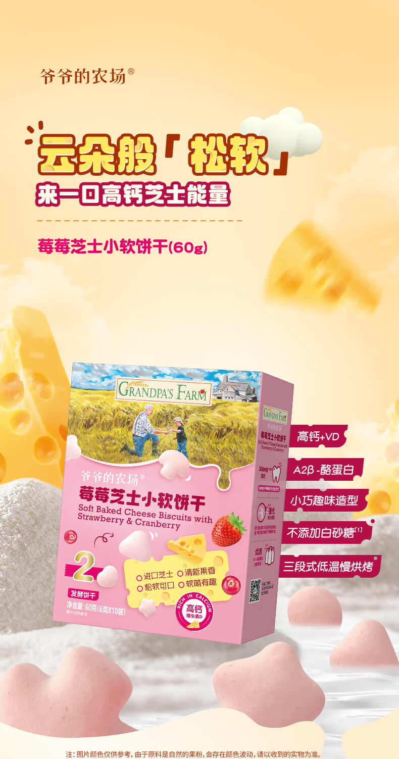 爷爷的农场芝士莓莓小软饼干 宝宝儿童零食澳洲干酪 出行便携60g