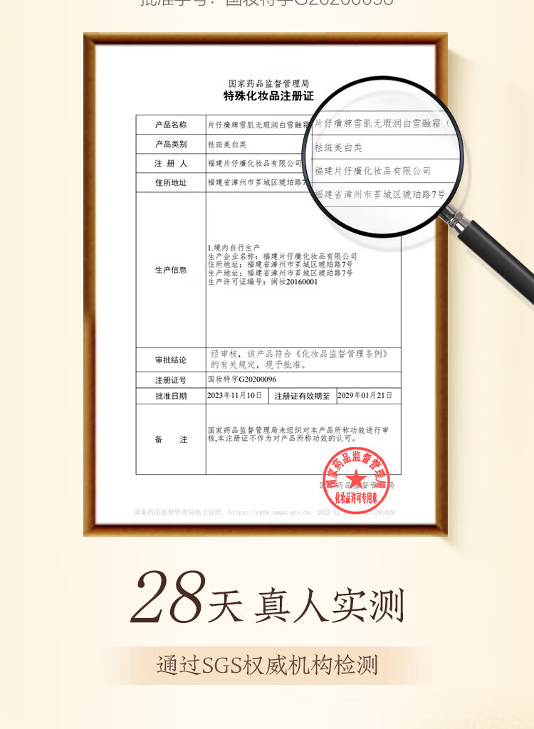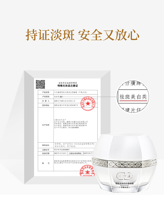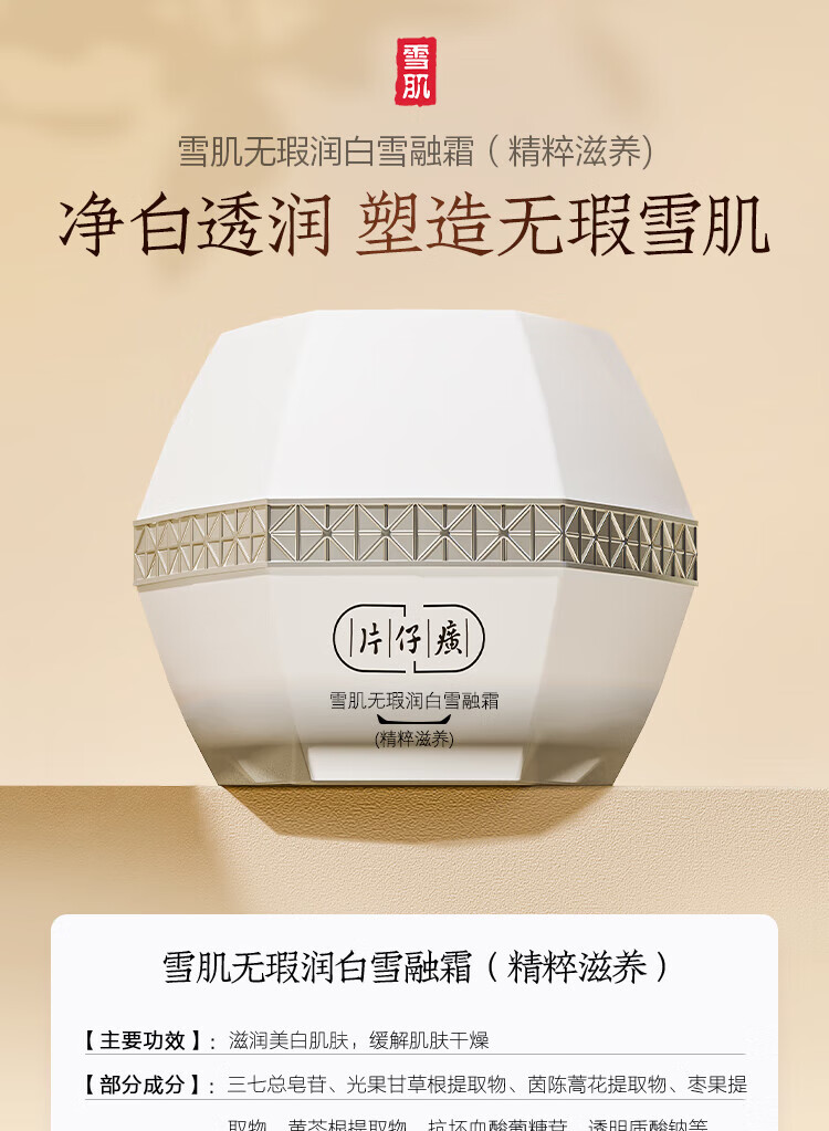 片仔癀雪肌无瑕润白雪融霜 提亮保湿祛斑补水滋养美白淡斑面霜 雪肌透润雪融霜(清爽)