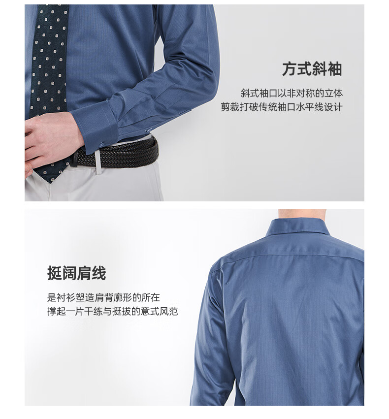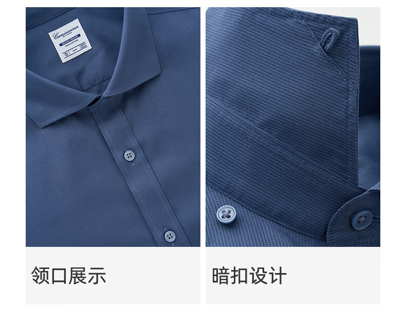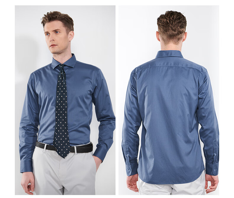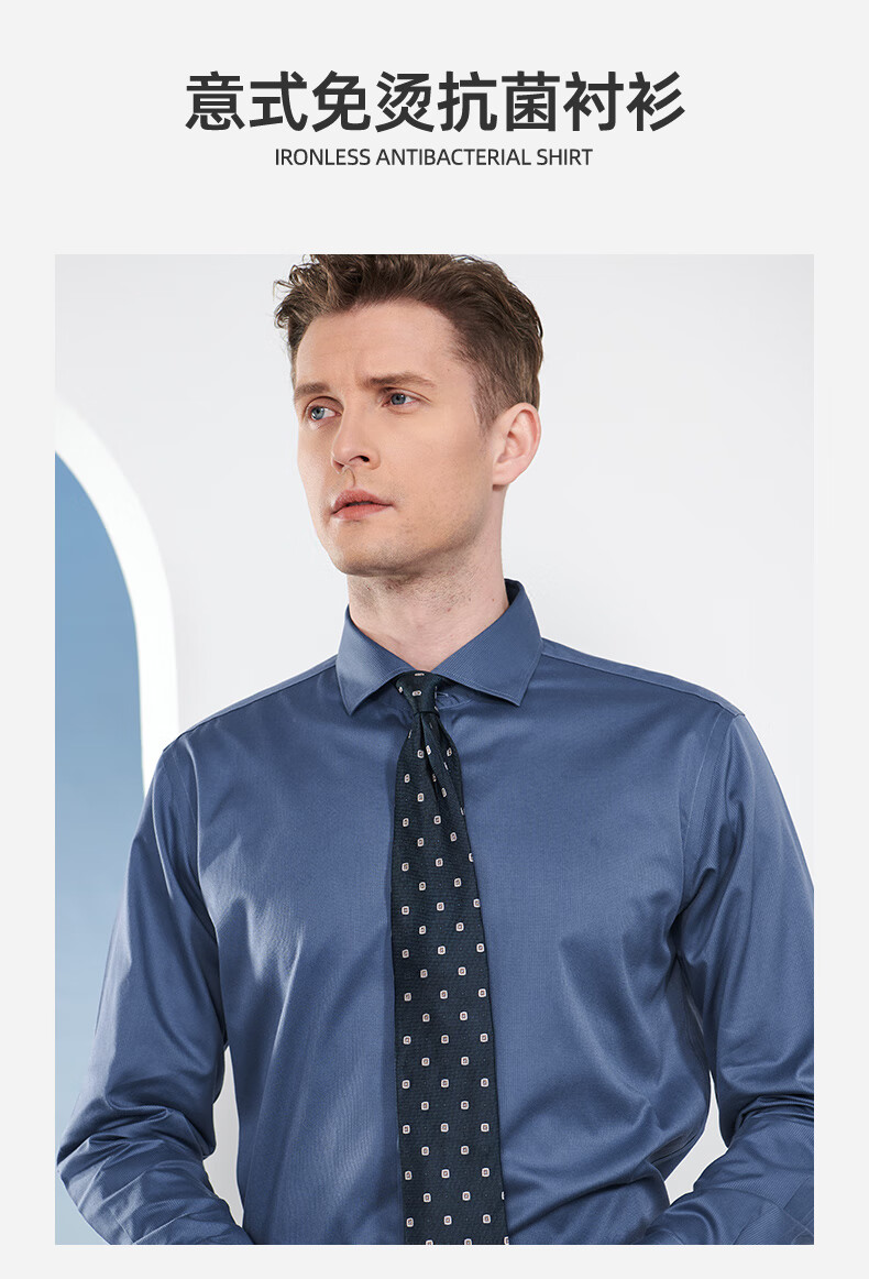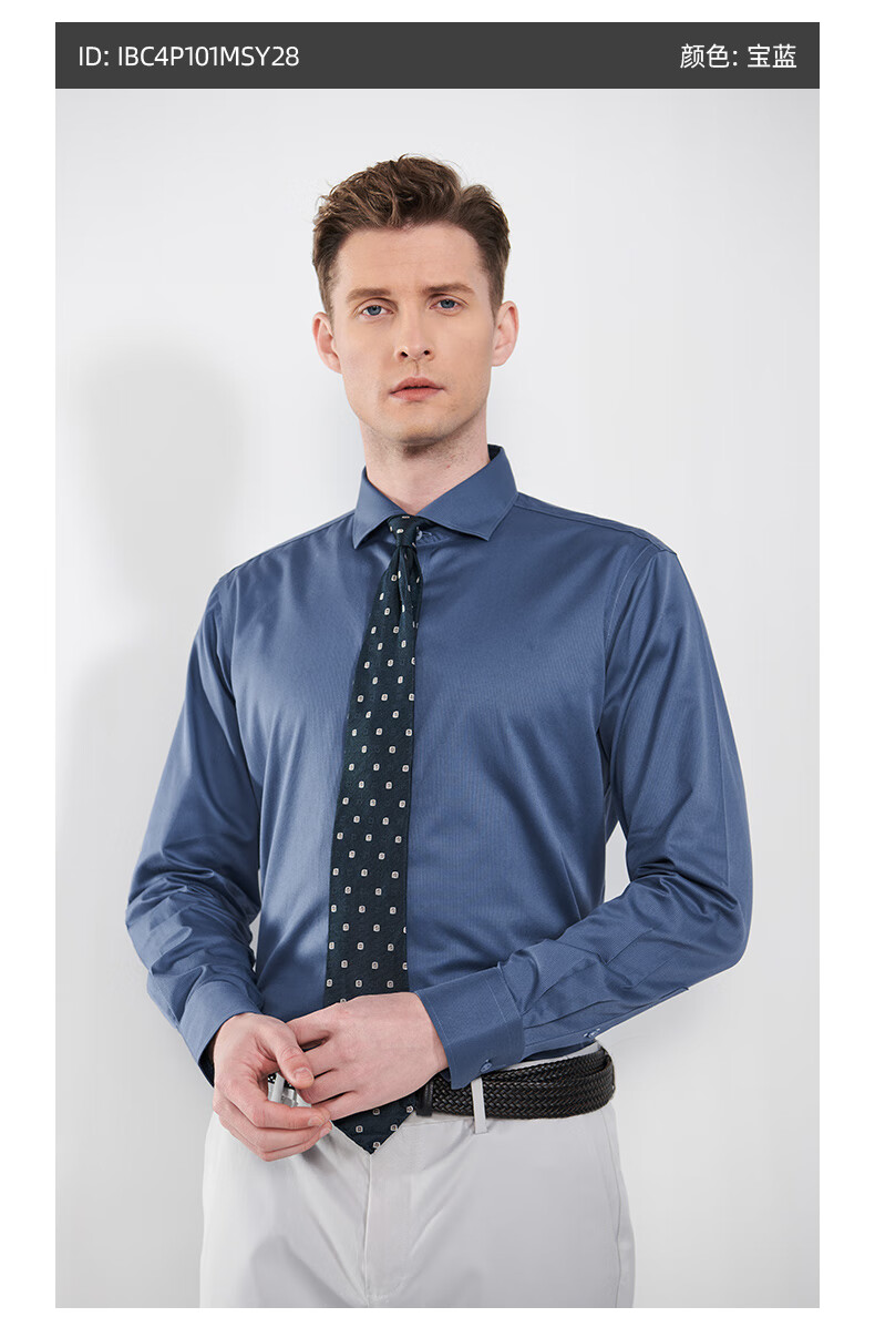 恺米切男士抗菌免烫长袖衬衫3色可选全法式领修身版型 宝蓝 42
