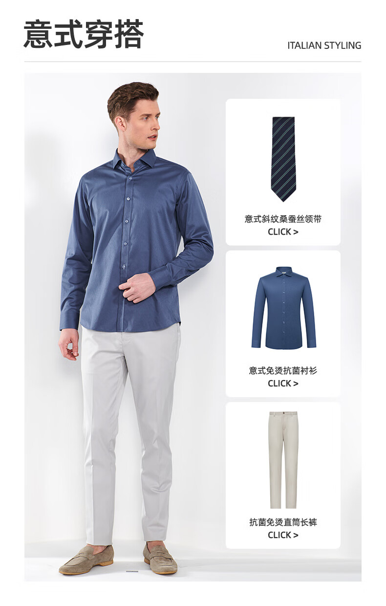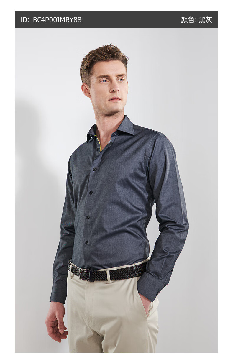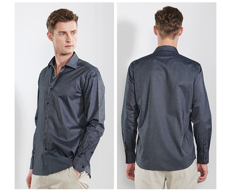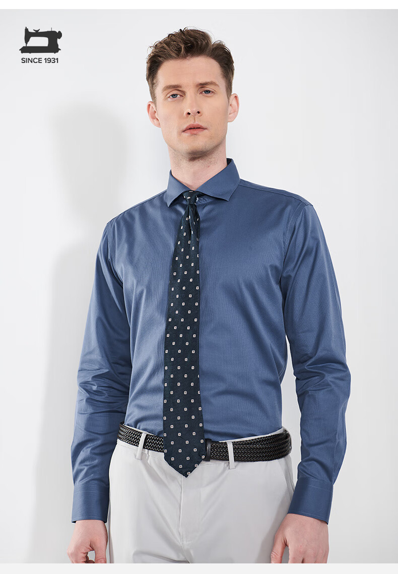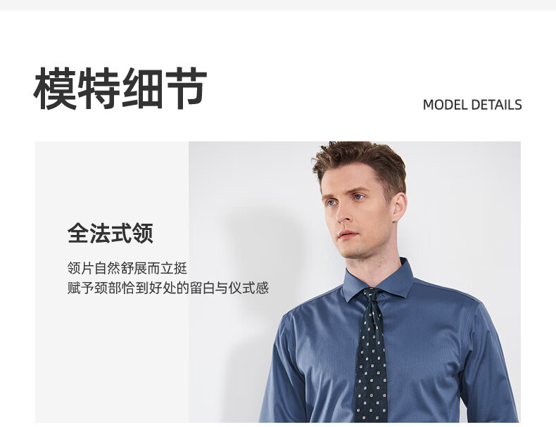 恺米切男士抗菌免烫长袖衬衫3色可选全法式领修身版型 宝蓝 42