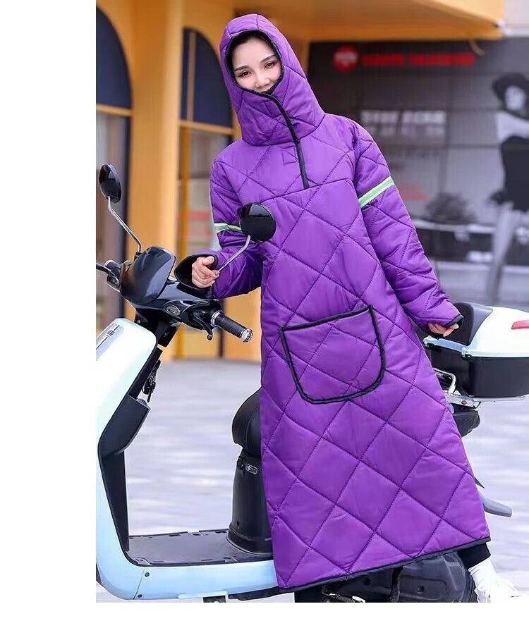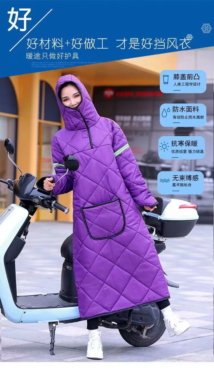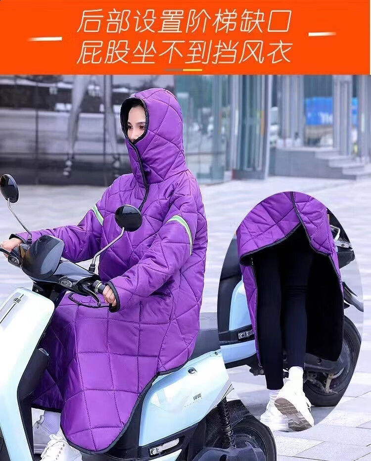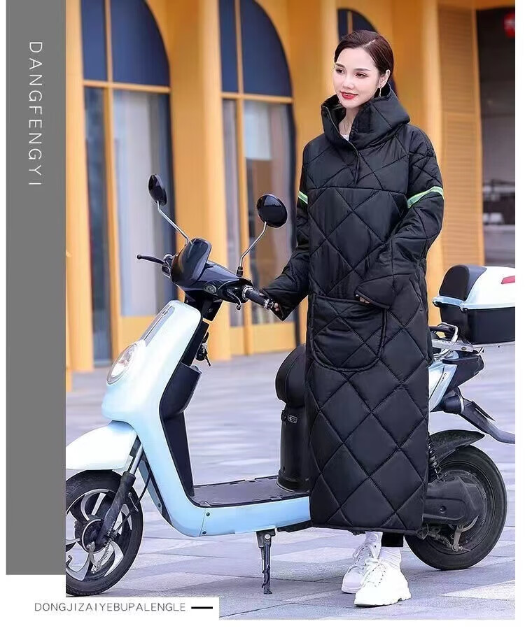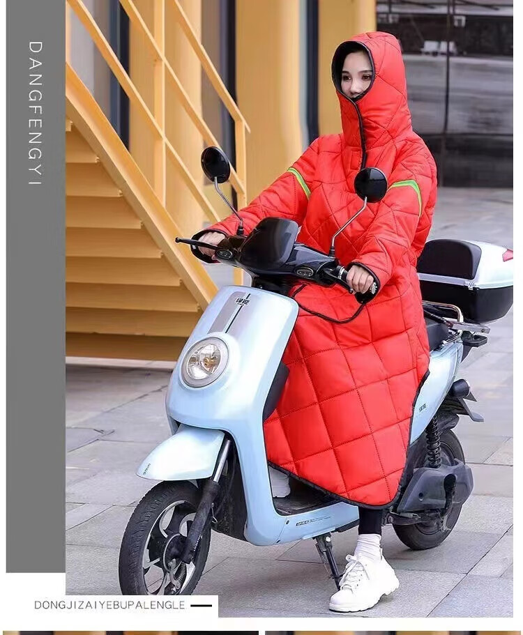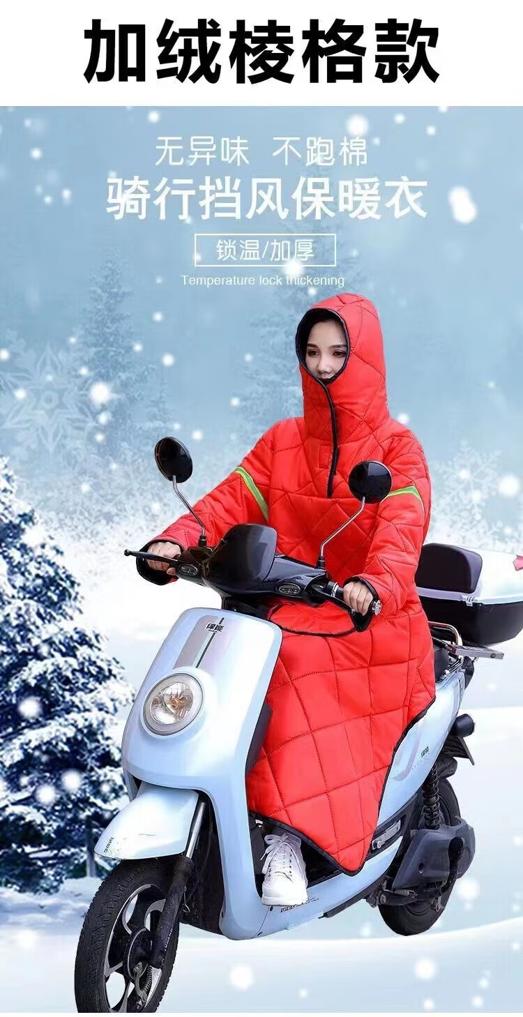【优选】电动车骑行保暖挡风衣户外全包围特厚防风防水保暖秋冬特 黑色帽款加绒+加厚 大号120-160斤以下