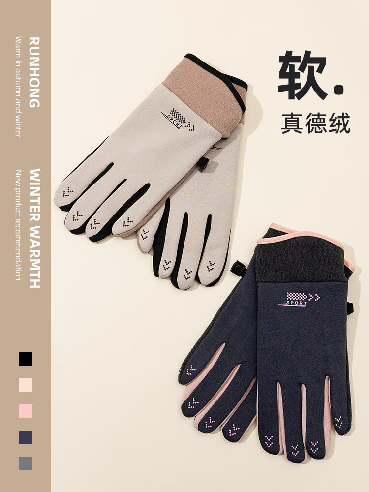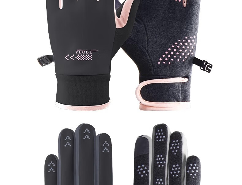 恬舒手套男女秋冬季保暖加绒可触屏骑行开车电动车冬天棉防风防寒 男款黑色 均码