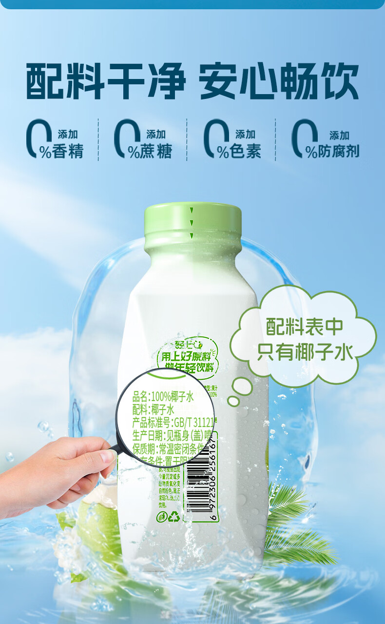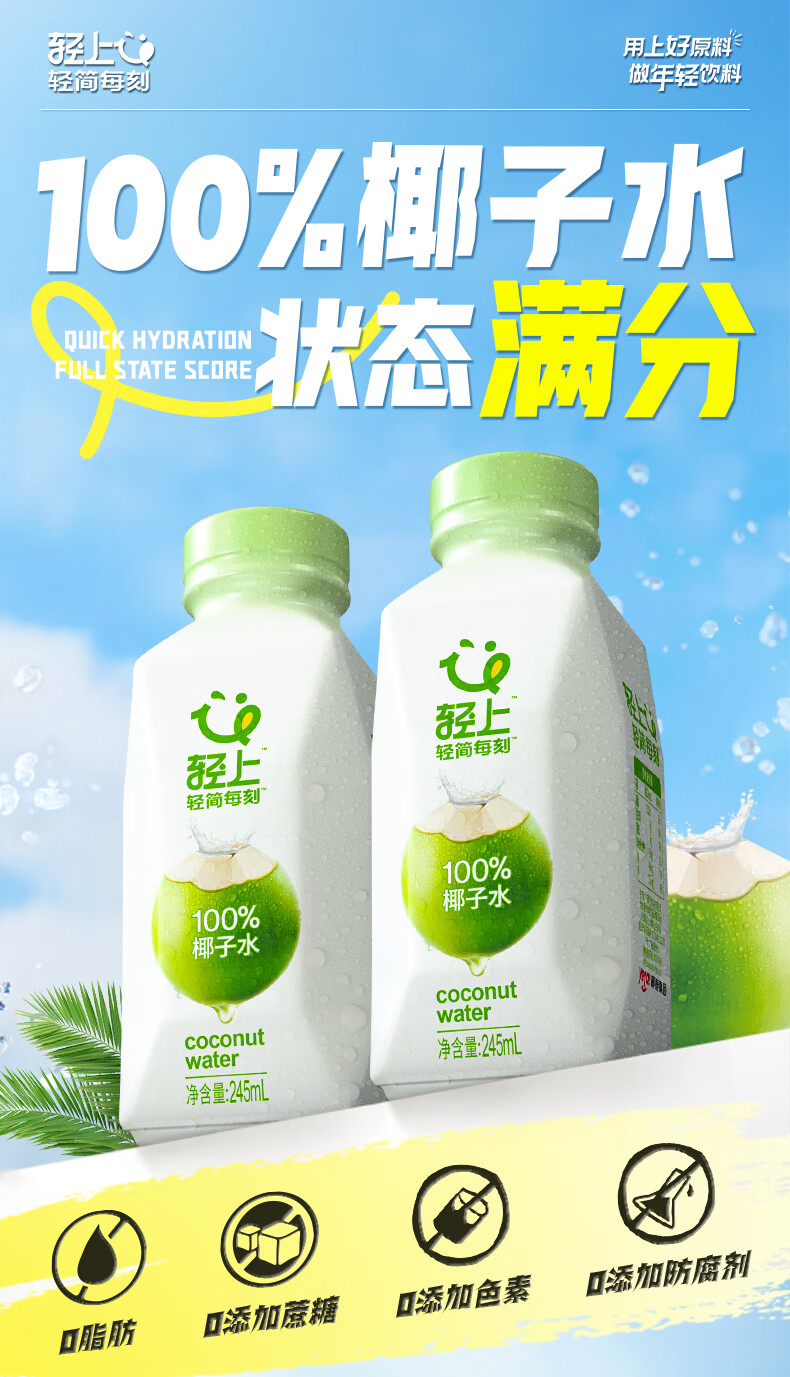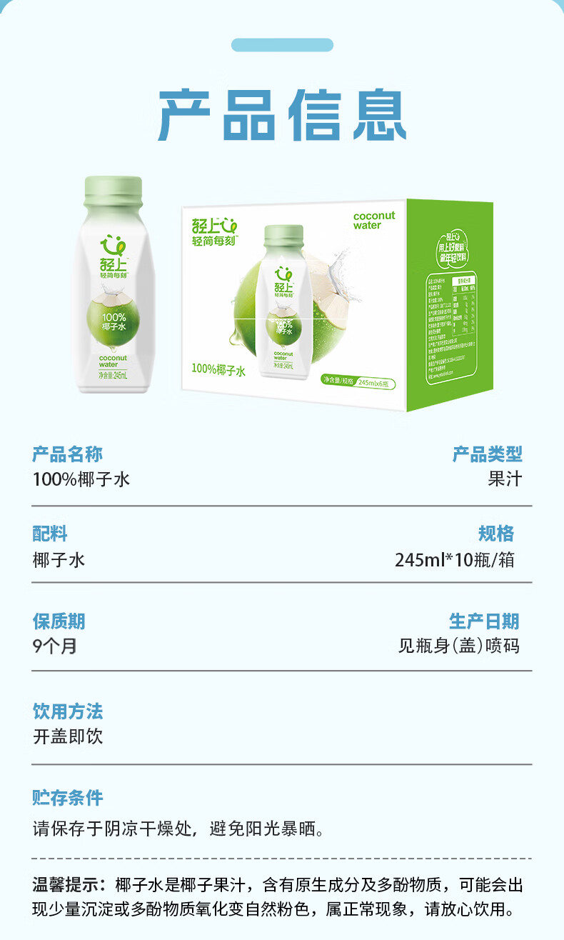 轻上(LIGHT UPPER)轻上椰子水天然nfc100%纯椰子水孕妇可喝含钾解渴解腻水替饮料 0糖生椰海盐味10瓶