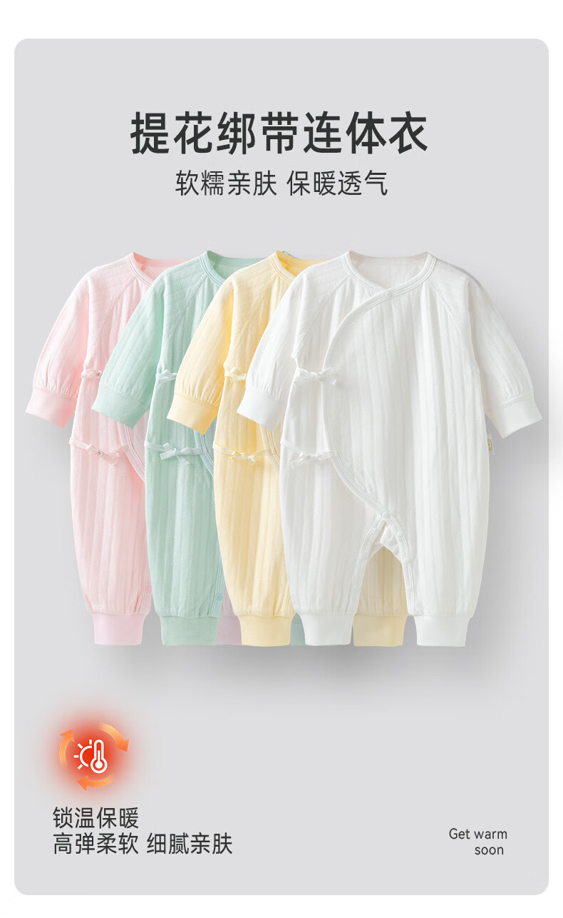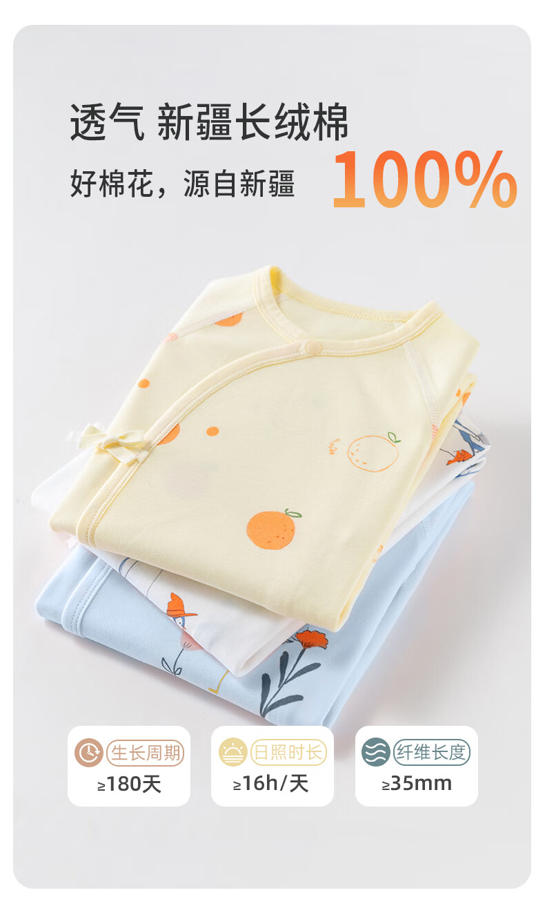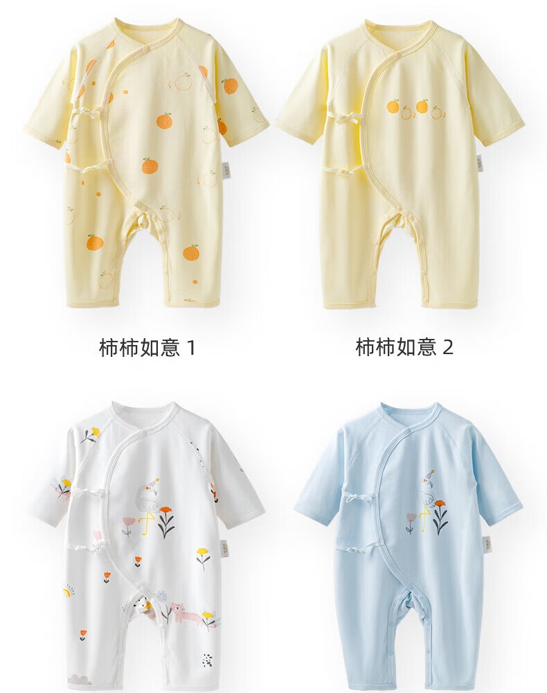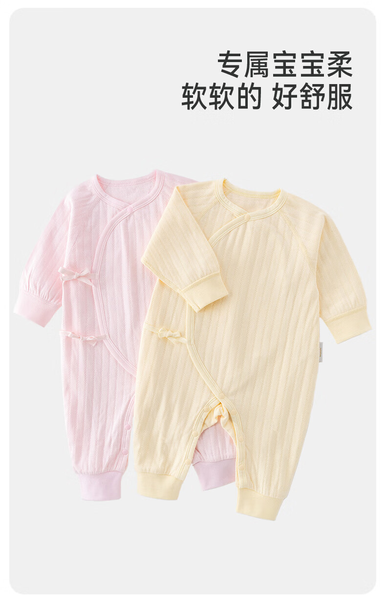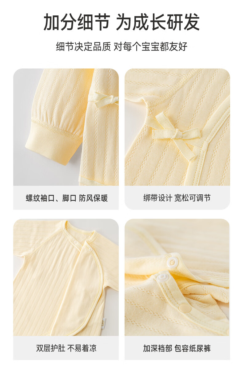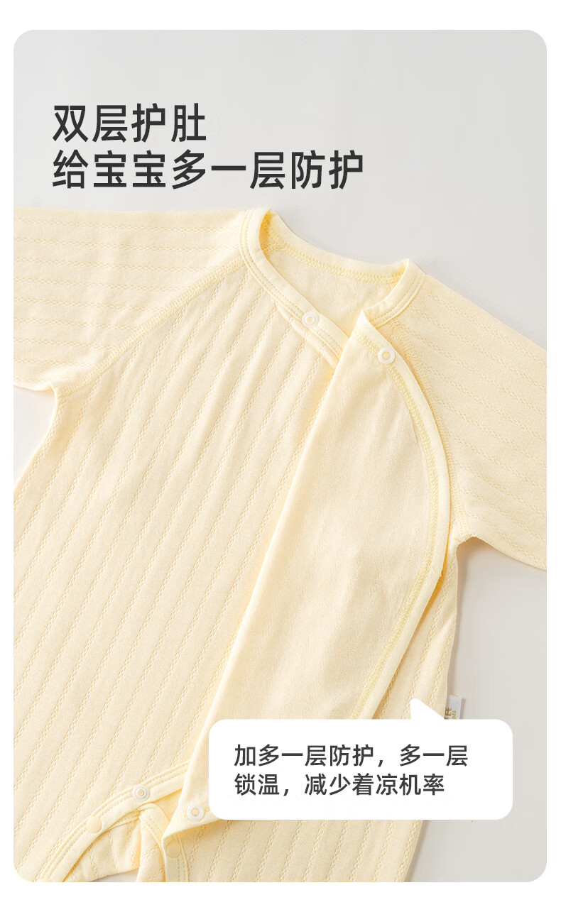 贝婴氏【195g新疆长绒棉+2件装】婴儿连体哈衣春秋纯棉衣服宝宝和尚服 黄+白组合 (提花款) 52cm