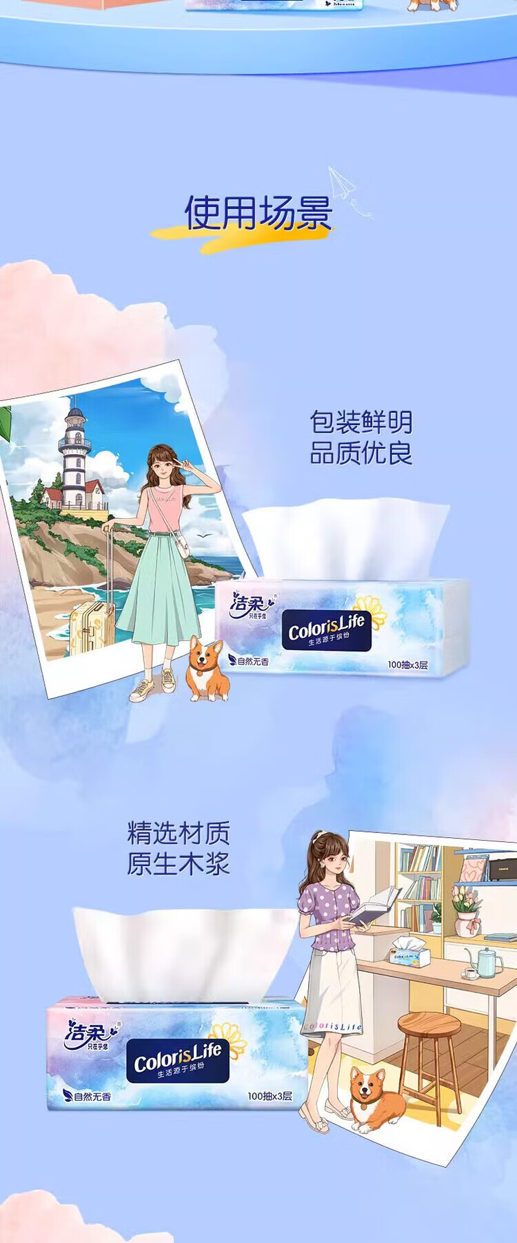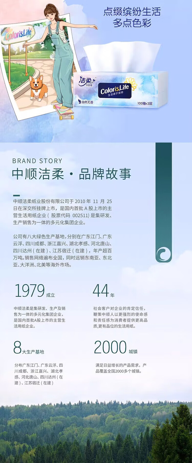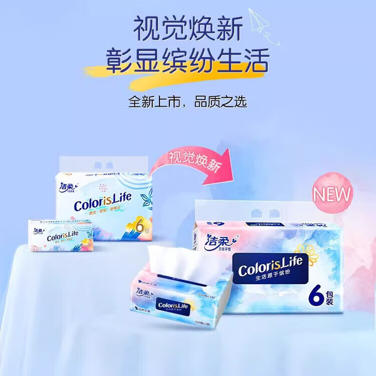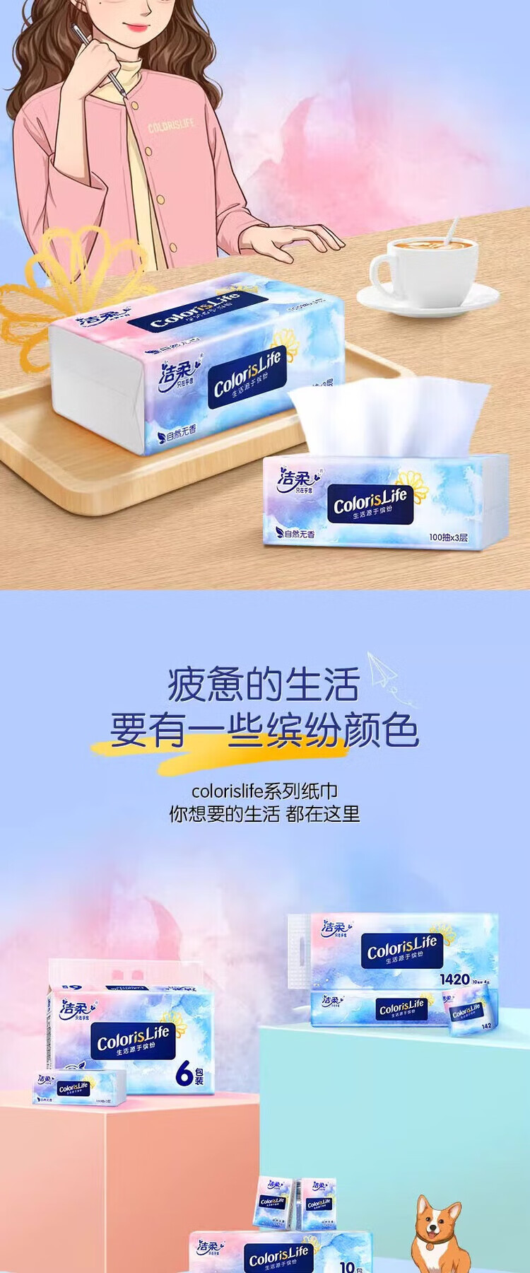 洁柔 C&S洁柔缤纷软抽无香3层100抽餐巾纸婴儿纸巾家用卫生纸 缤纷 3层 100抽*1包