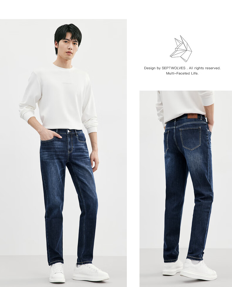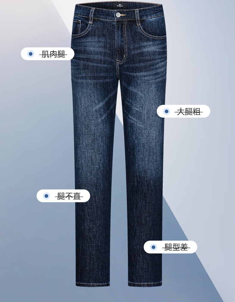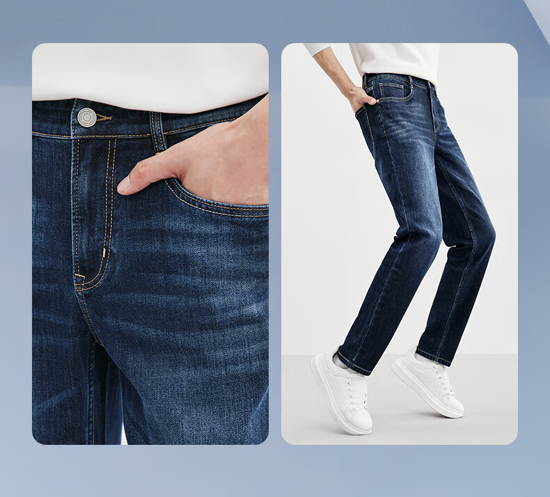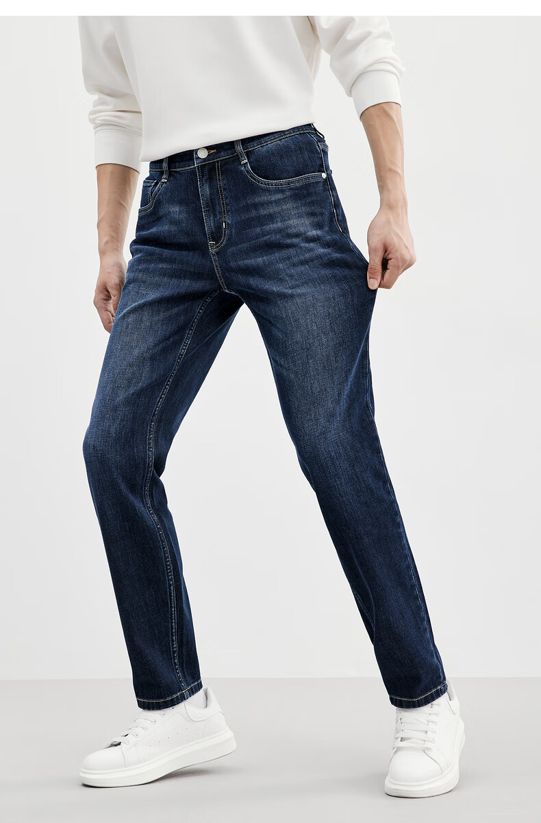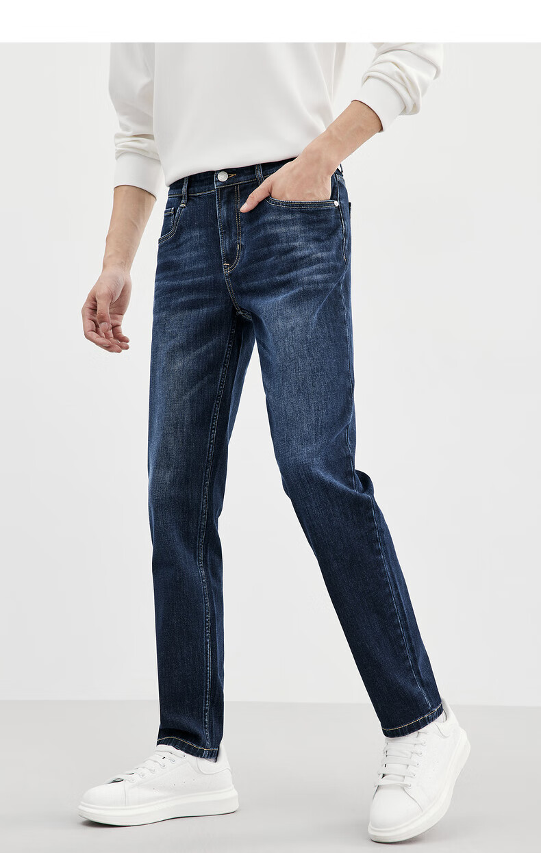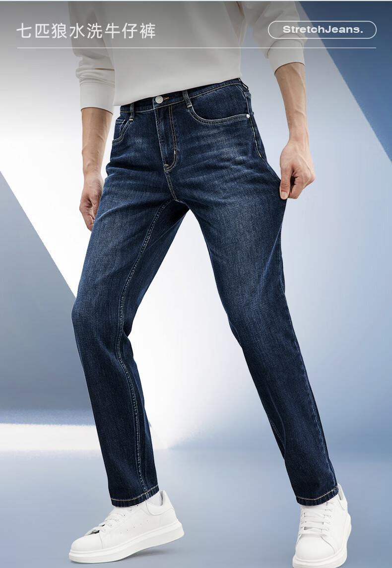七匹狼牛仔裤男士秋冬水洗弹力直筒舒适柔软亲肤休闲通勤长裤子男装