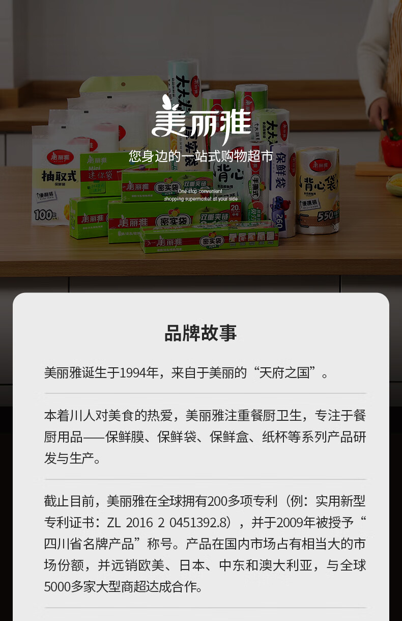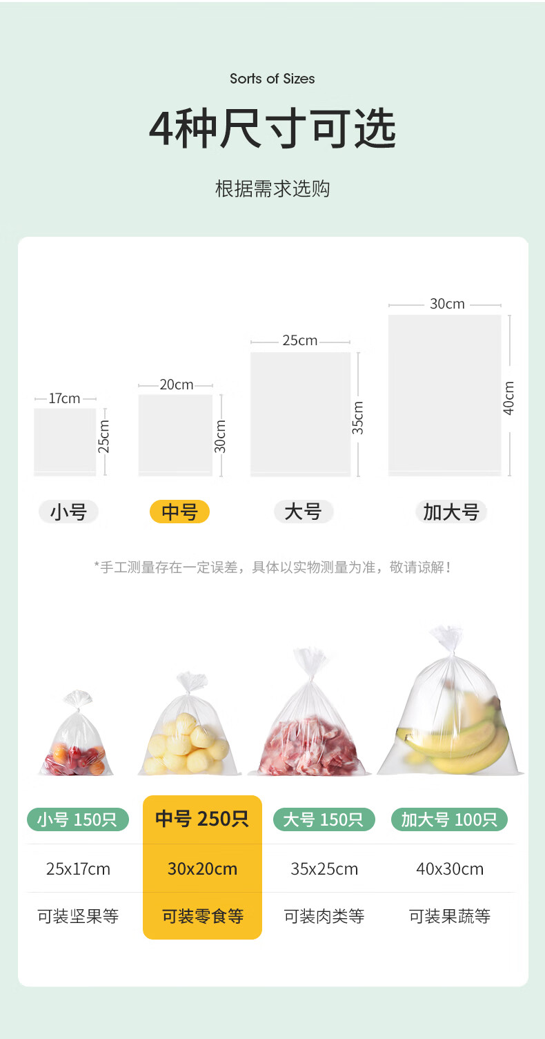 美丽雅保鲜袋食品级中号250只厨房冰箱食品保鲜袋冰箱专用