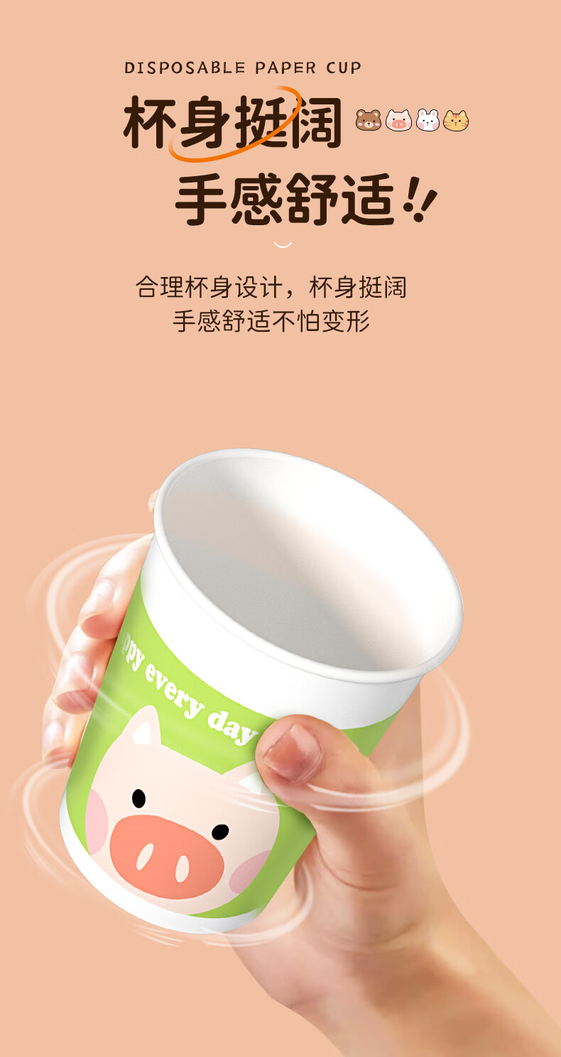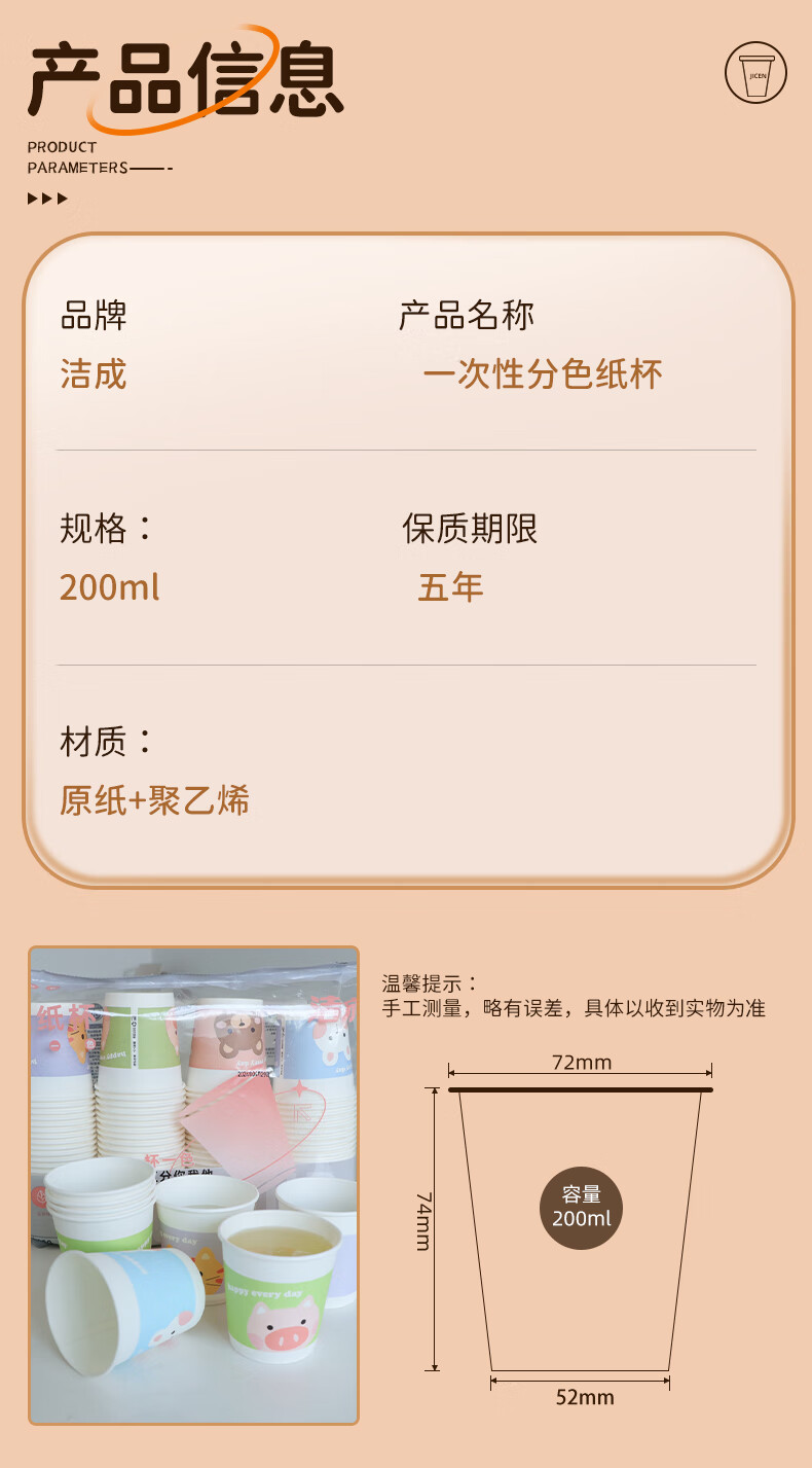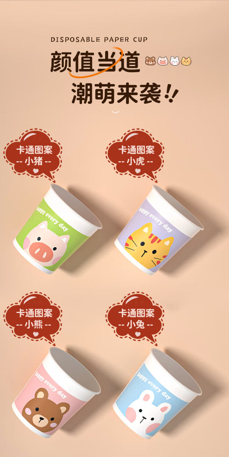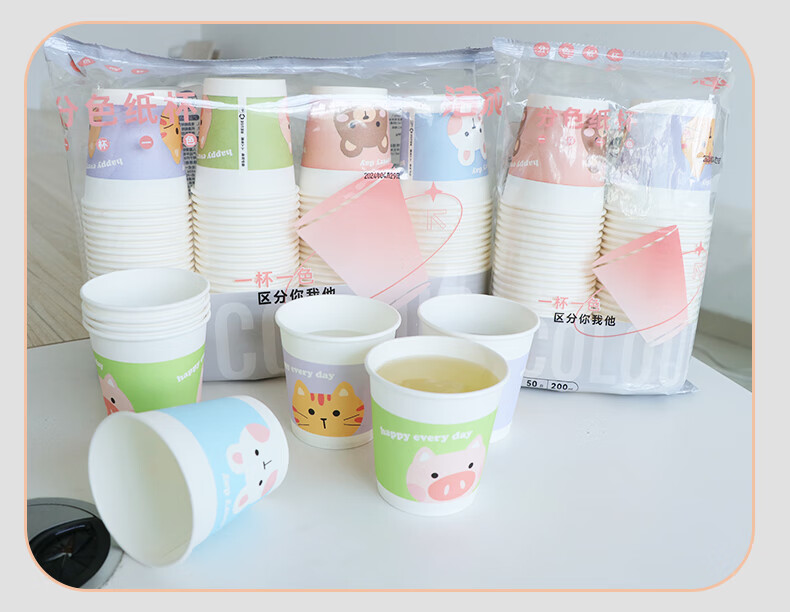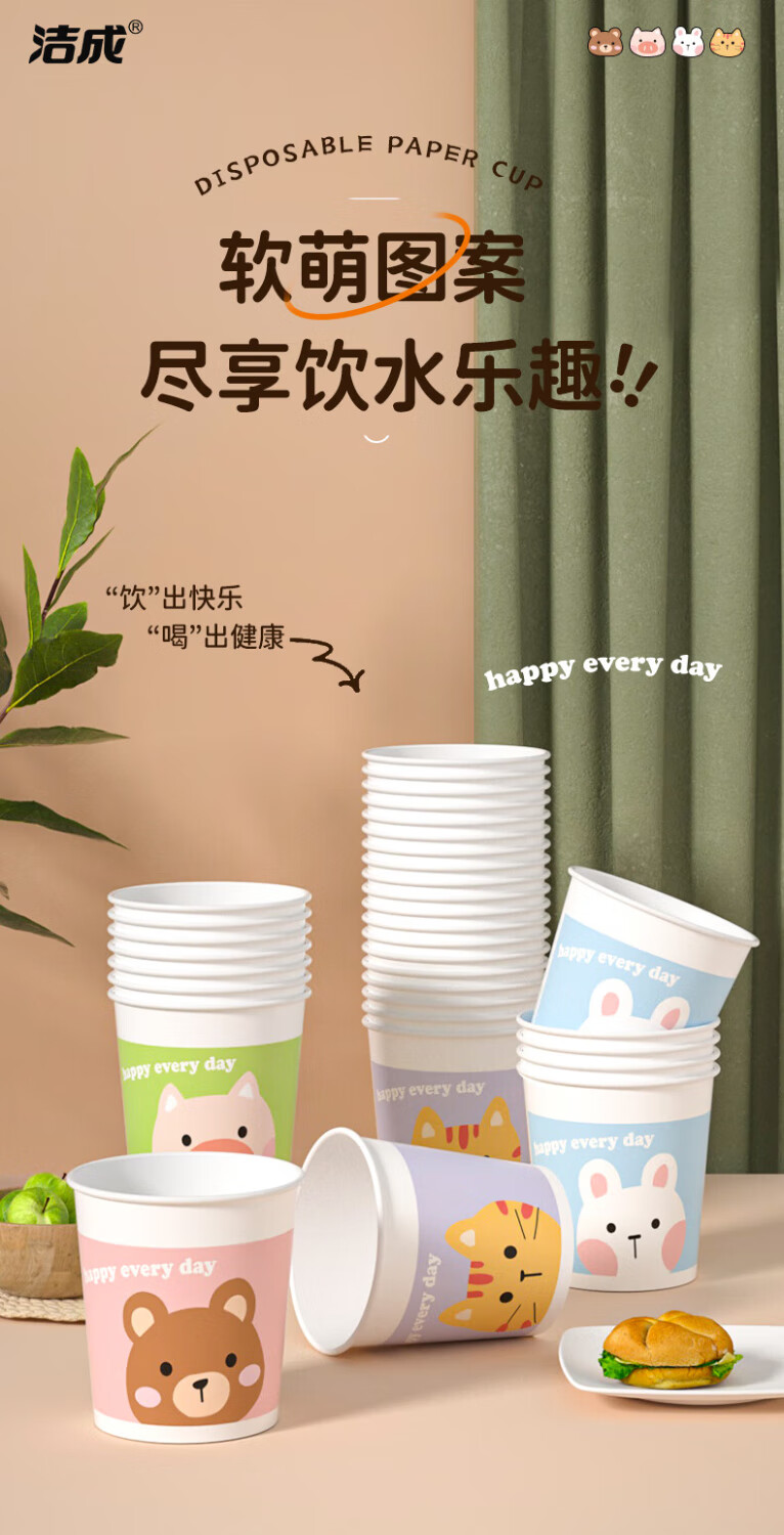 洁成纸杯一次性杯子加厚卡通图案饮水防烫食品级 200ml*50只【卡通四色】
