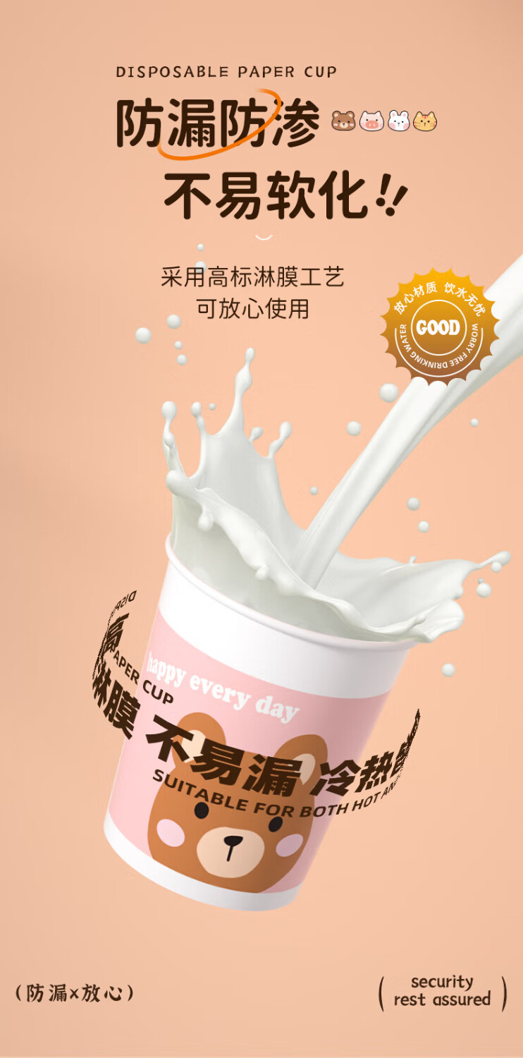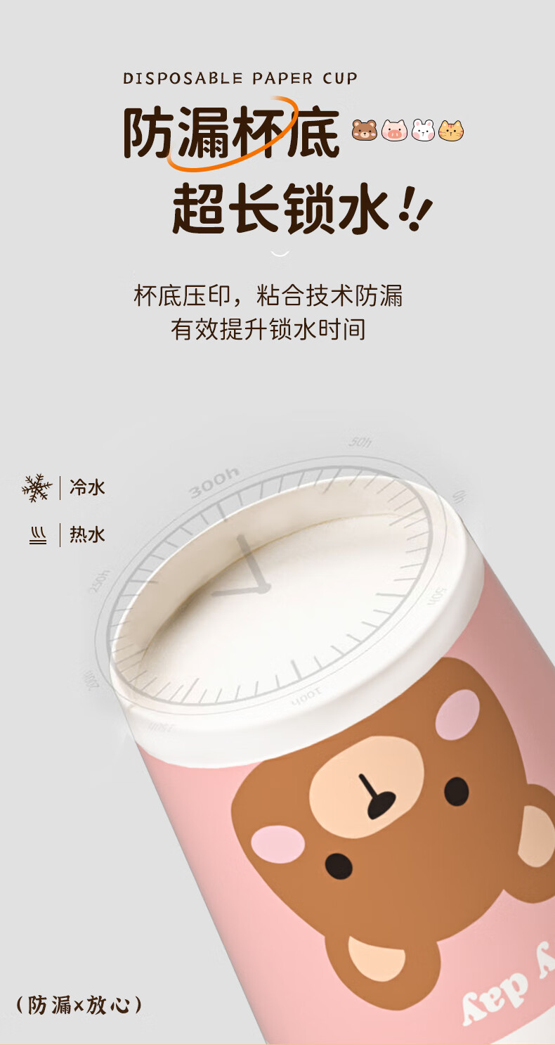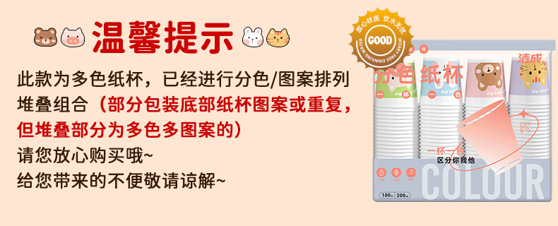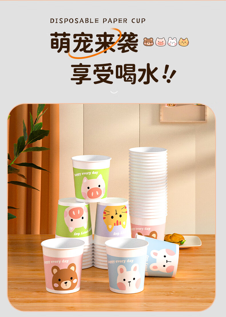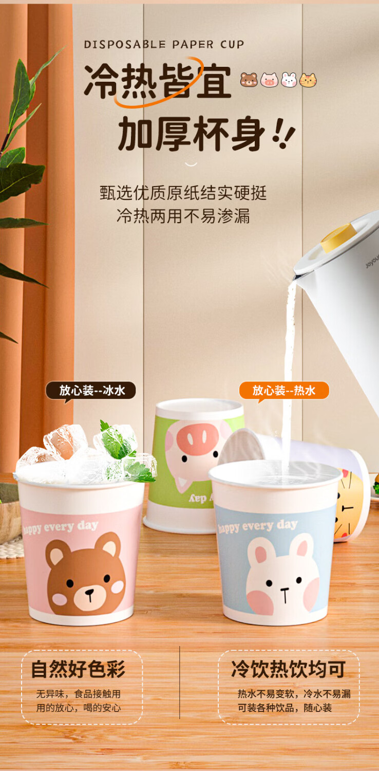 洁成纸杯一次性杯子加厚卡通图案饮水防烫食品级 200ml*50只【卡通四色】