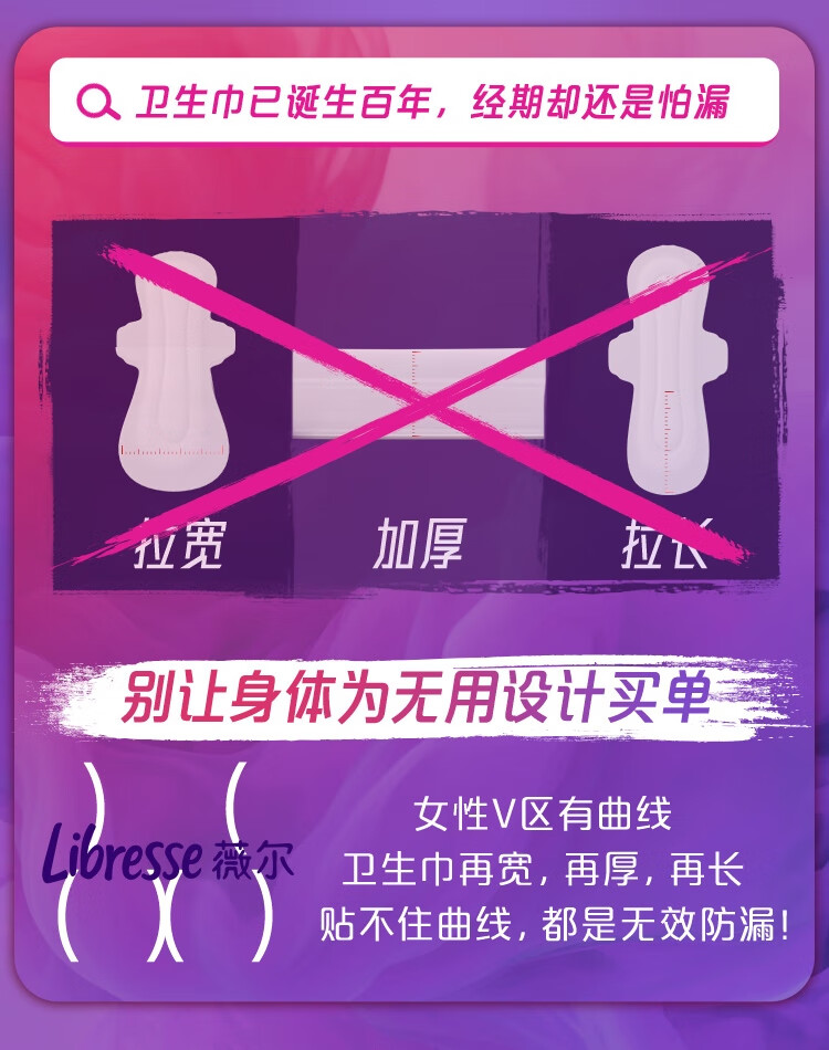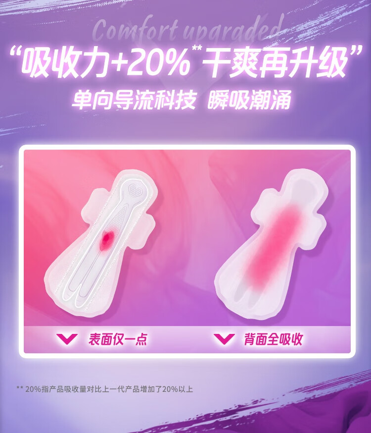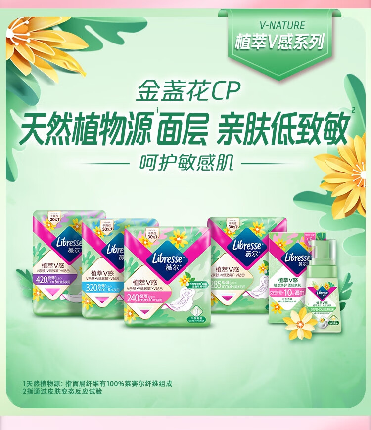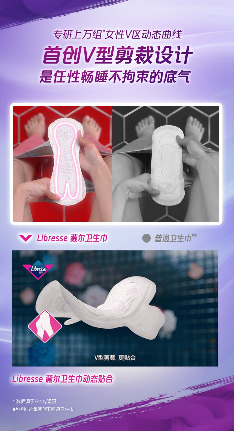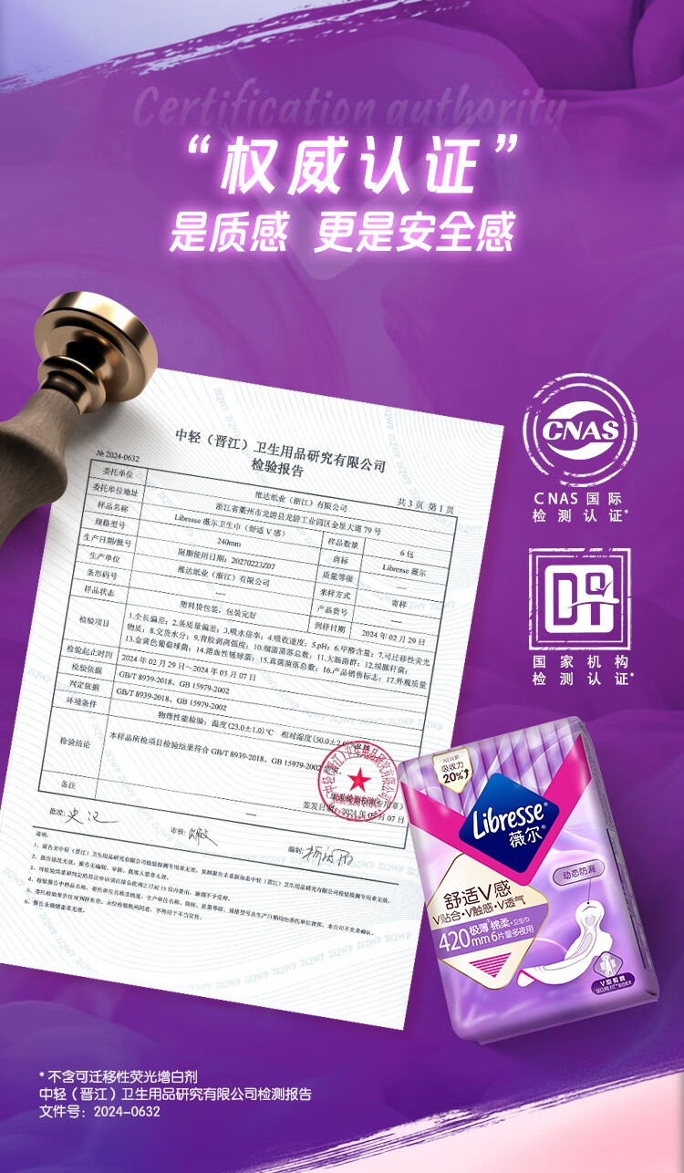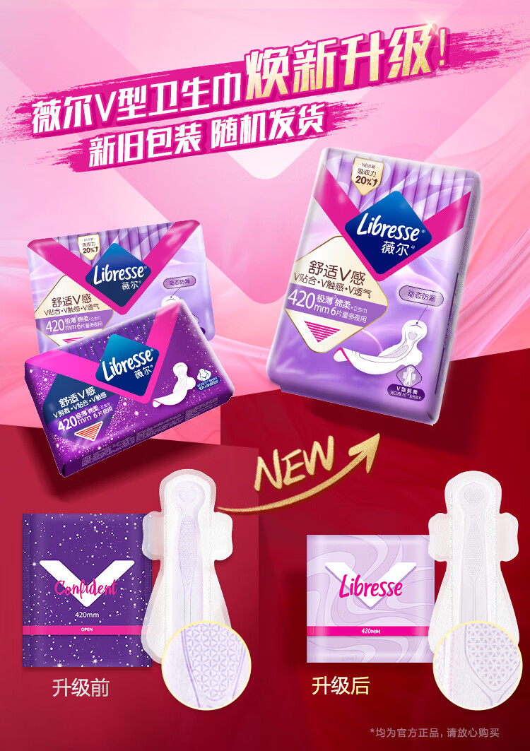 薇尔V感超薄贴合透气防漏420mm*6片夜用卫生巾京东自营姨妈巾