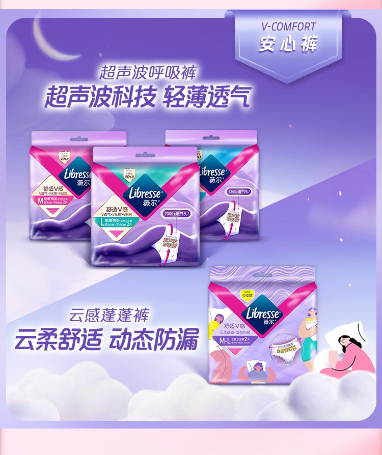 solove医护级安睡裤安心裤卫生巾 大码夜用防侧漏姨妈裤孕产妇夜安裤 M-L码 5条 /包 110-140斤 1包5条【买2套10条送1包卫生巾】