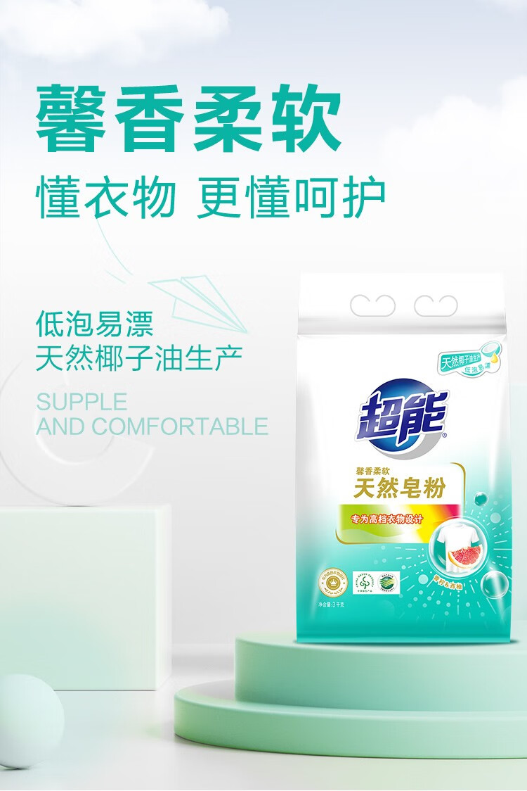 超能天然皂粉洗衣粉3kg*2袋洗衣服粉馨香柔软12斤家庭装香味持久批发 (赠140g皂粉)3kg*4袋【24斤】