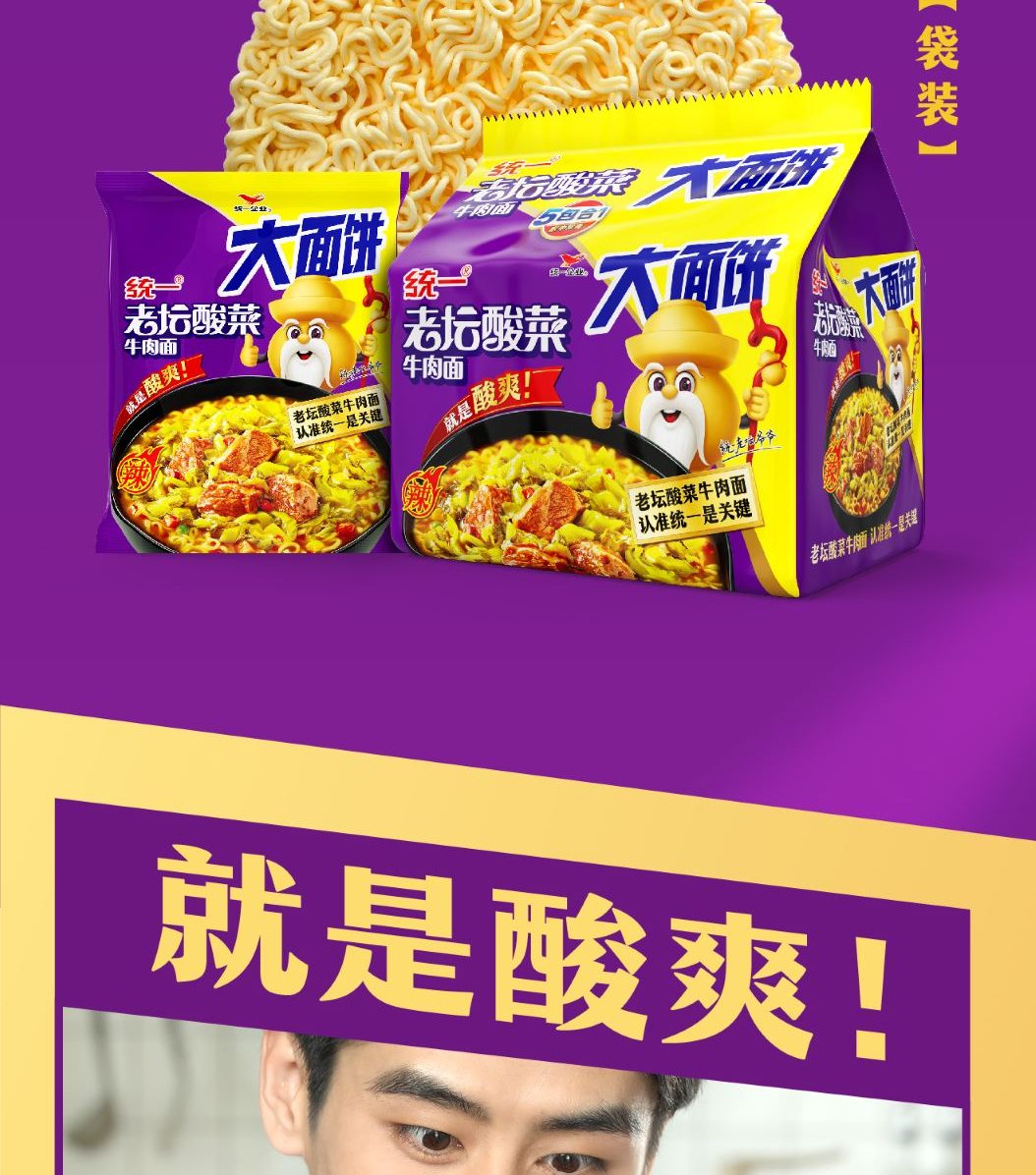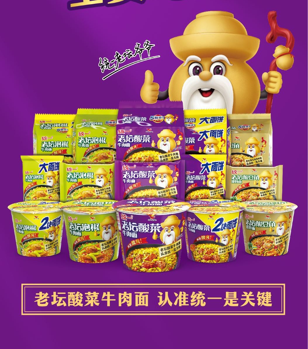 统一 老坛酸菜牛肉面大面饼五合一方便面150g*5袋 新老包装随机发货