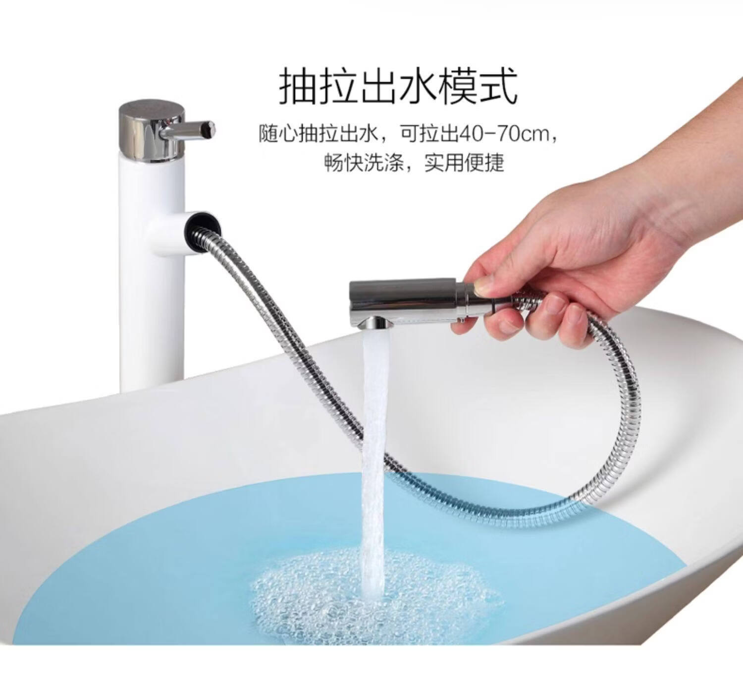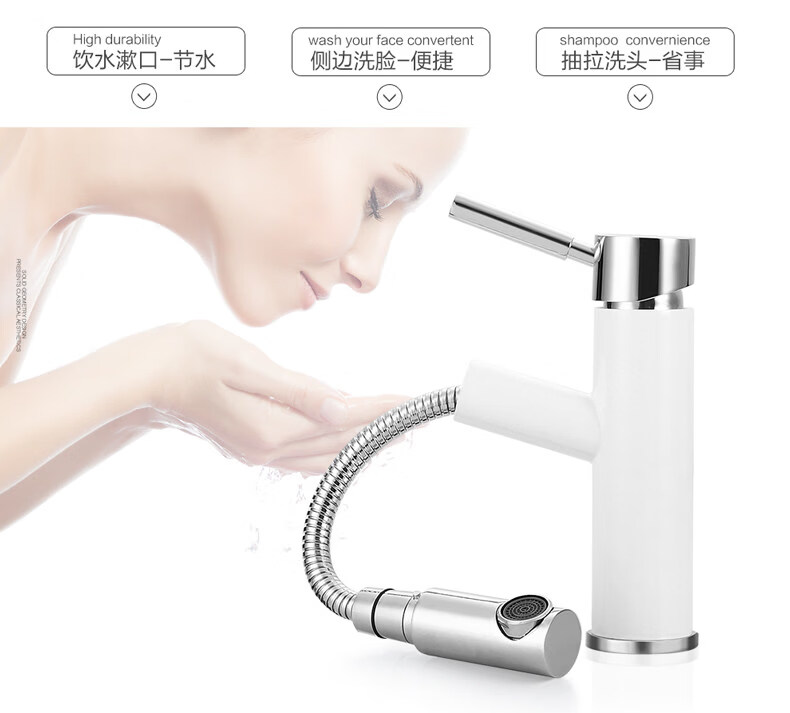 质享摩恩抽拉式水龙头冷热面盆洗脸盆家用卫生间台上盆单冷龙头8416 8416龙头配冷热进水管