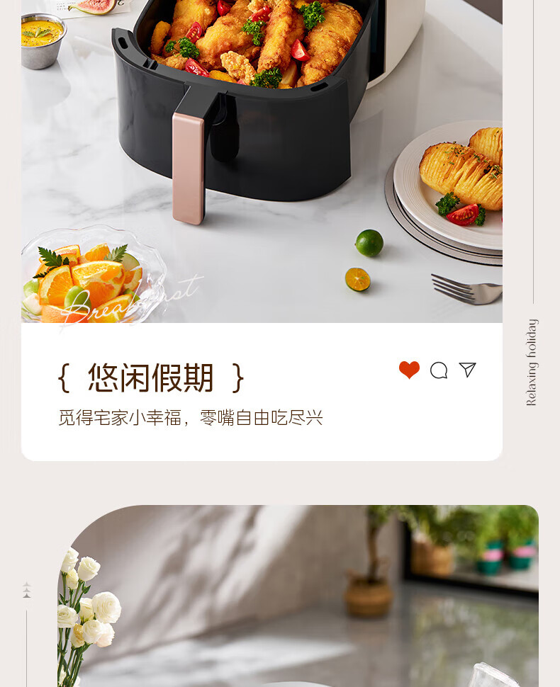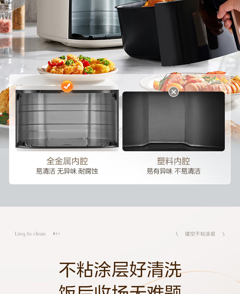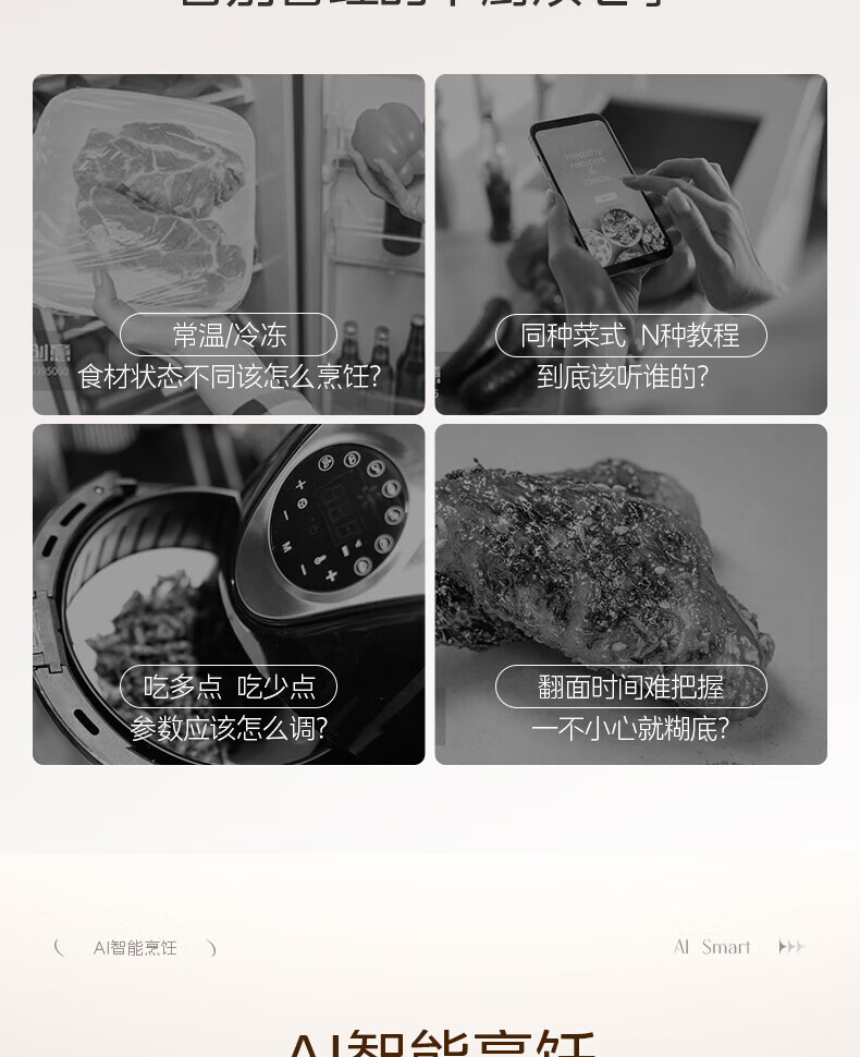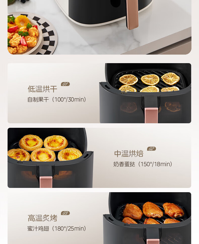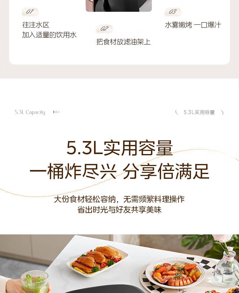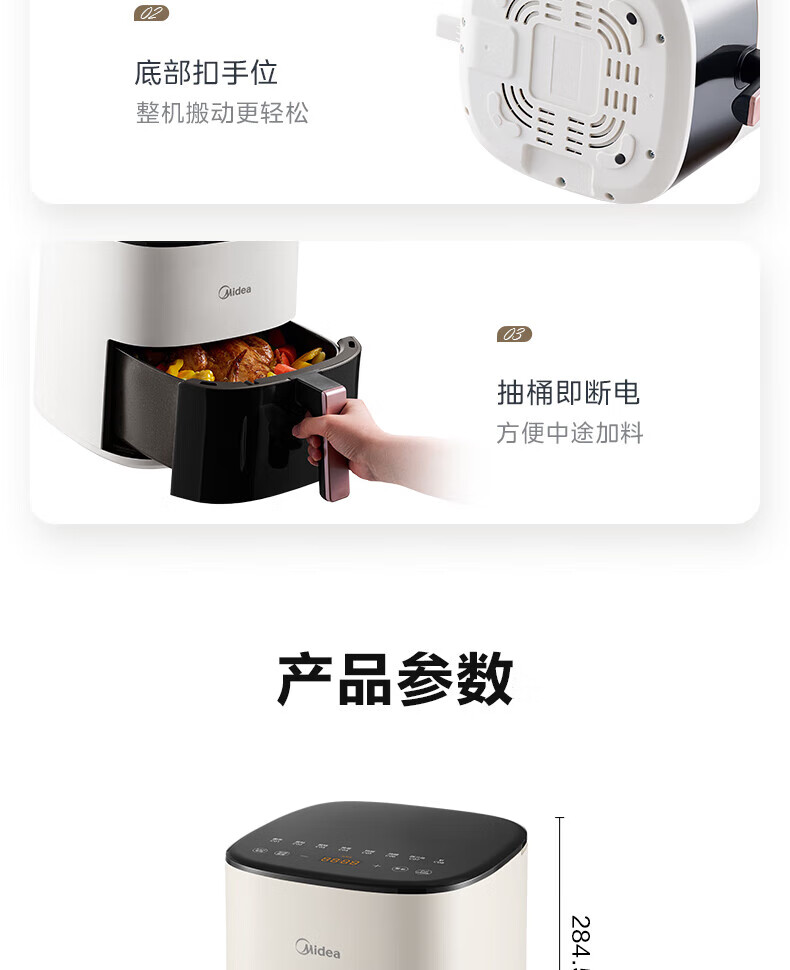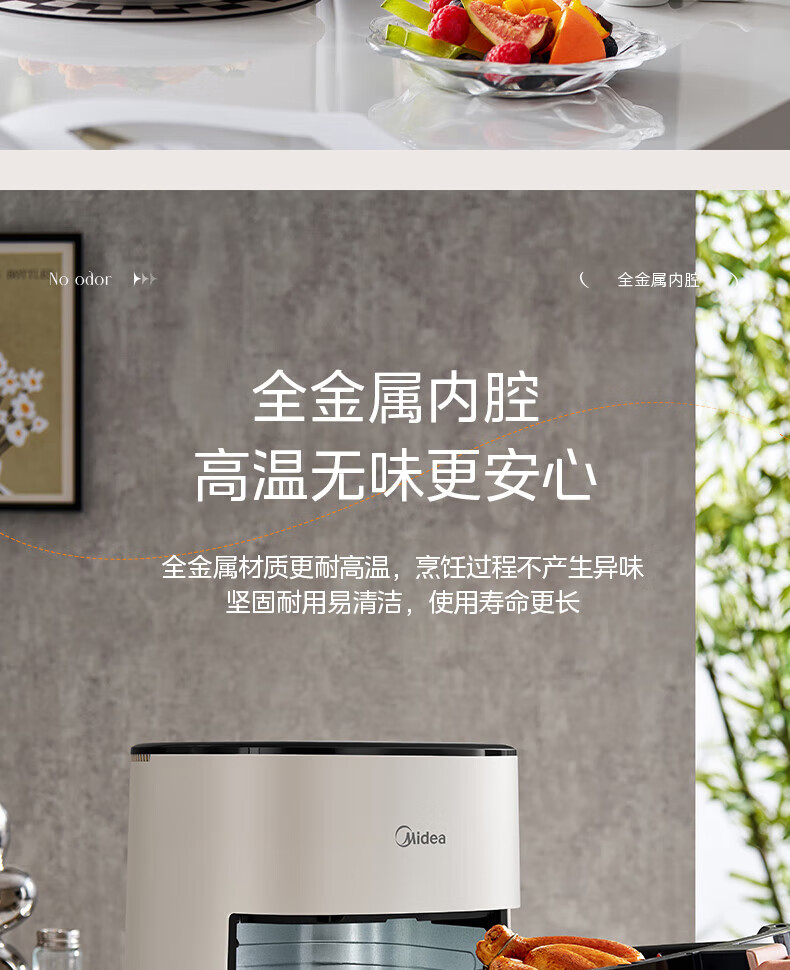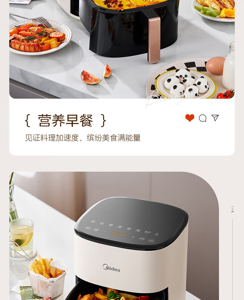 美的(Midea)空气炸锅免翻面 5.3LAI智能烹饪蒸汽嫩 烤炸一体 可视大视窗 家用多功能精准控温大容量全金属内腔 KZC5388【AI智能】 5.3L