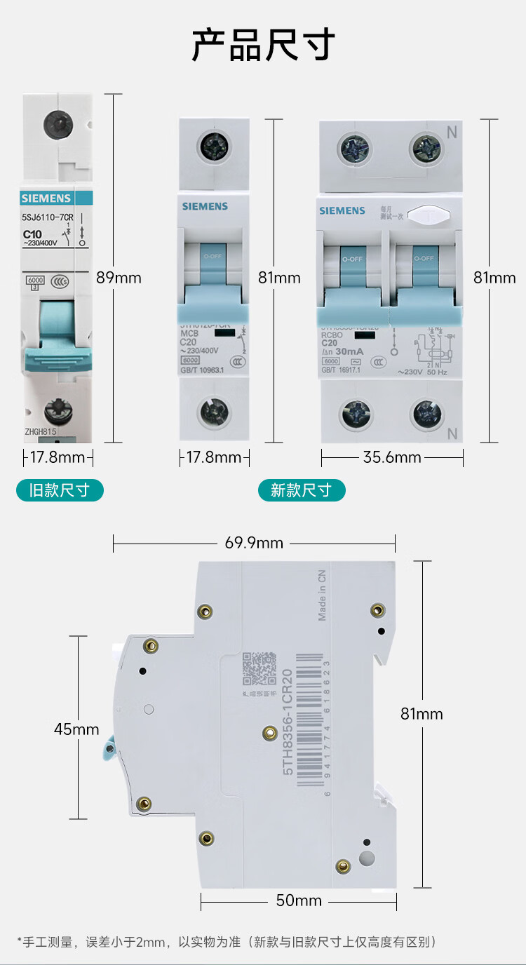 西门子(SIEMENS)新款西筑R70系列空气开关小尺寸断路器1P2P家用10~63A安全开关 2P 40A