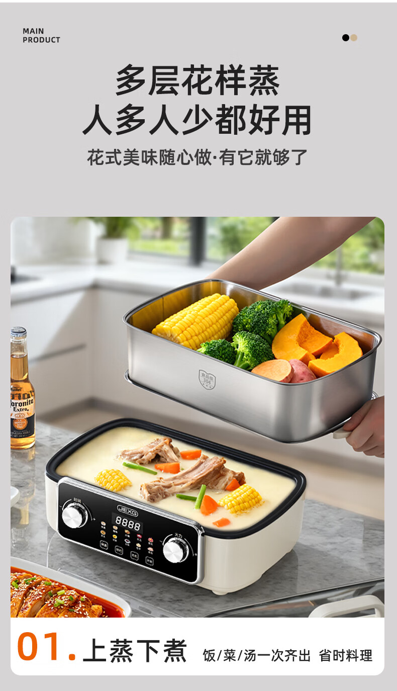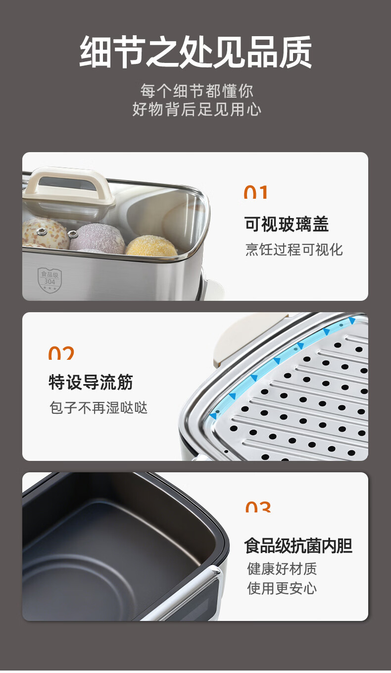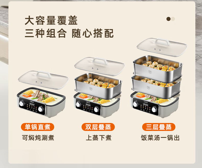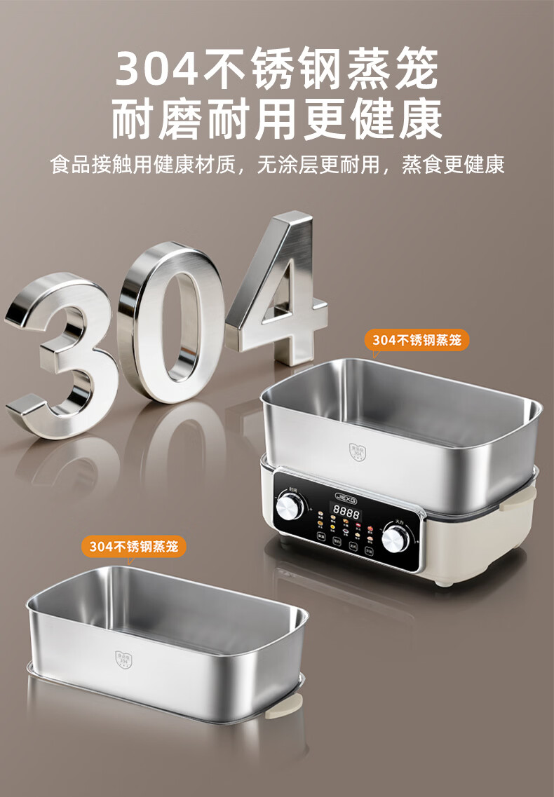 JIEXG电蒸锅炖蒸煮一体分体式不锈钢0涂层0塑大容量多功能家用电煮锅电火锅预约定时大功率 34L 三层【1500W】可预约