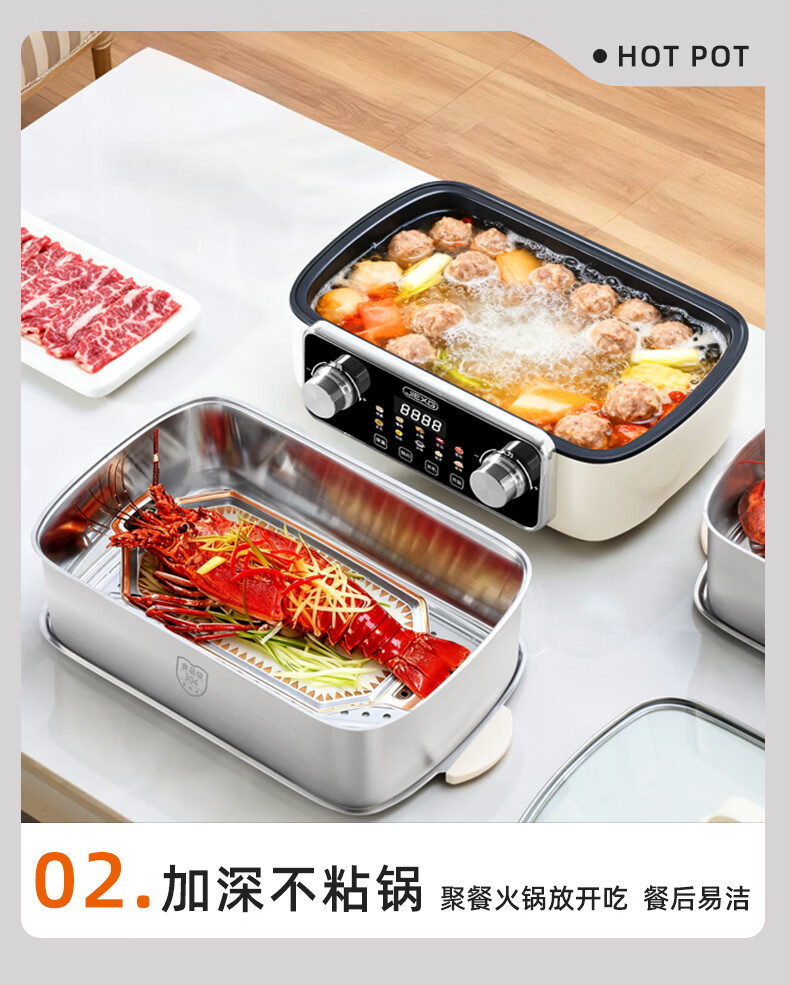 九阳(Joyoung)0涂层电火锅2100W大功率IH秒涮火锅专用锅电锅6L大容量家用分体式可拆洗多功能不锈钢电煮锅 6L 沙丘灰