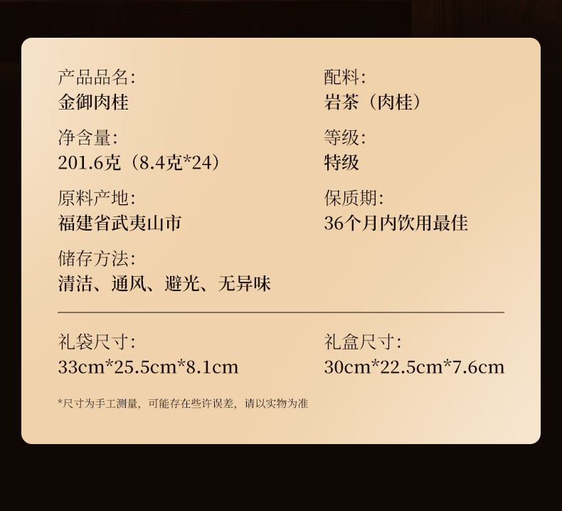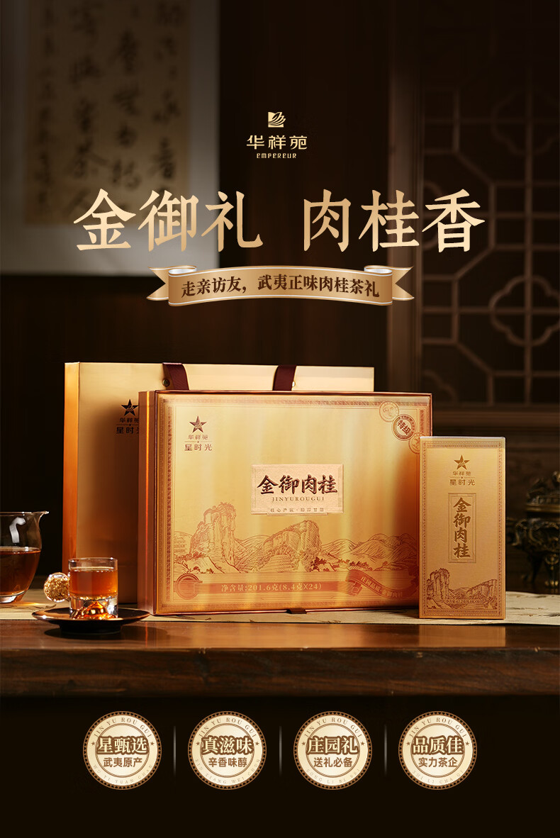华祥苑乌龙茶 武夷岩茶肉桂半岩特级201.6g中火茶叶礼盒春节年货送礼