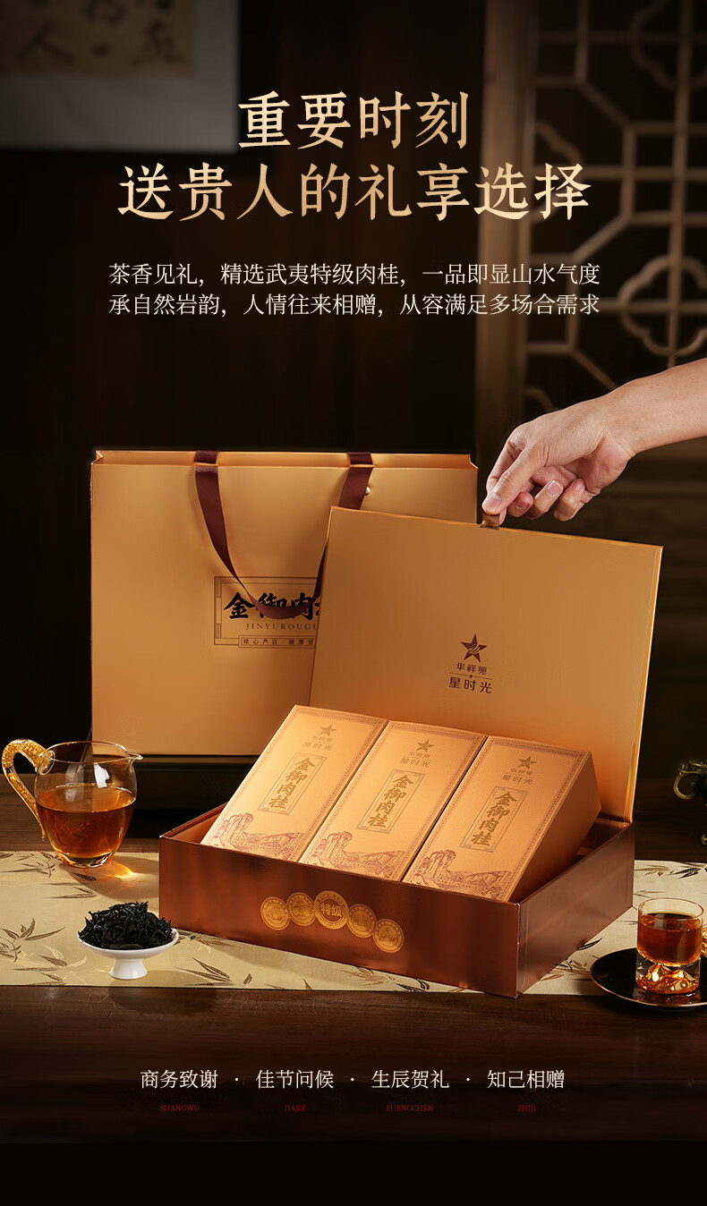 霂之塵肉桂茶叶礼盒装250g武夷山岩茶乌龙茶送礼年货 马上发财肉桂礼盒250g*1盒