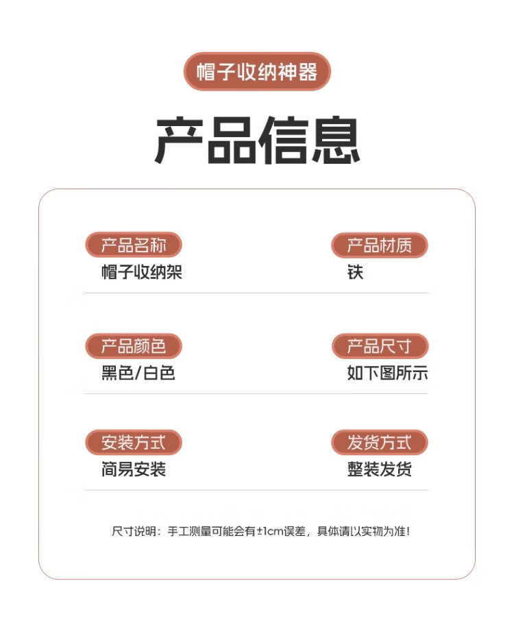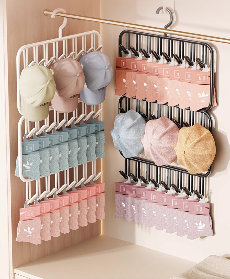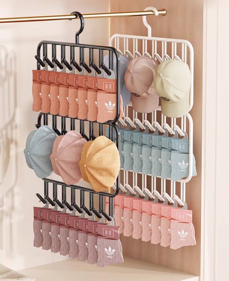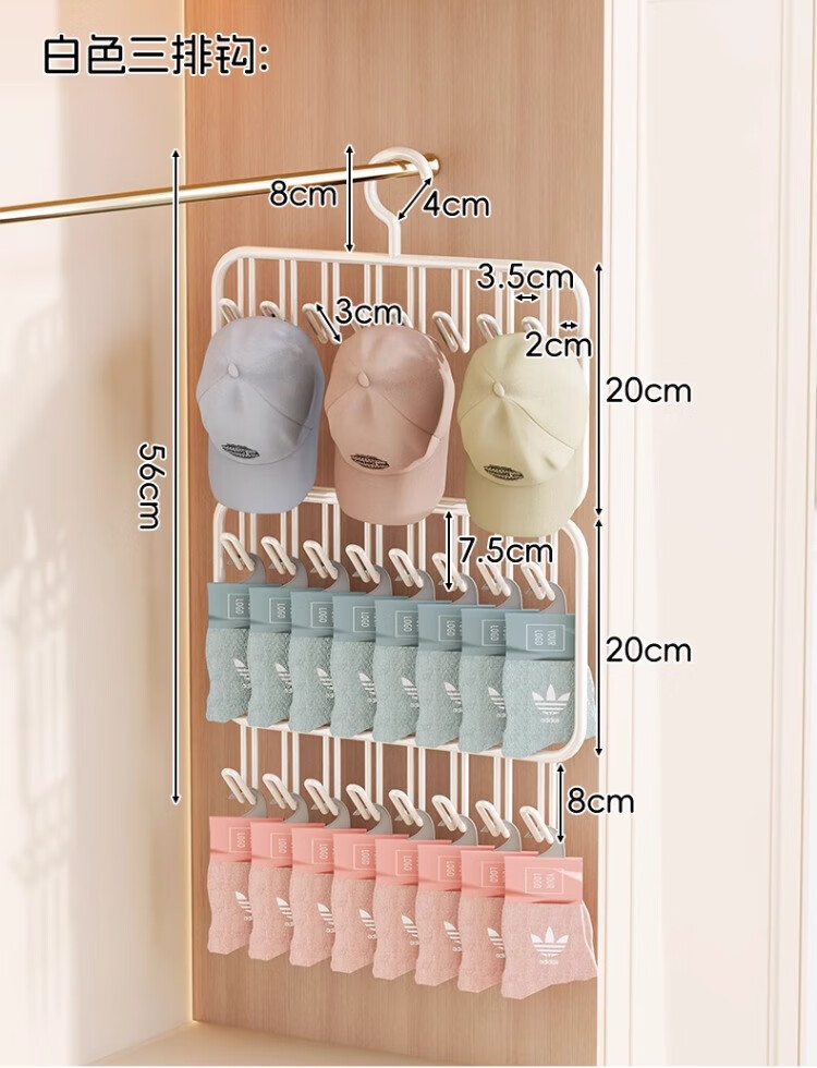 尔思家帽子收纳架多功能挂钩家用衣柜内包包挂钩壁挂神器宿舍鸭舌帽架子 白色三排钩