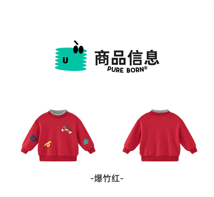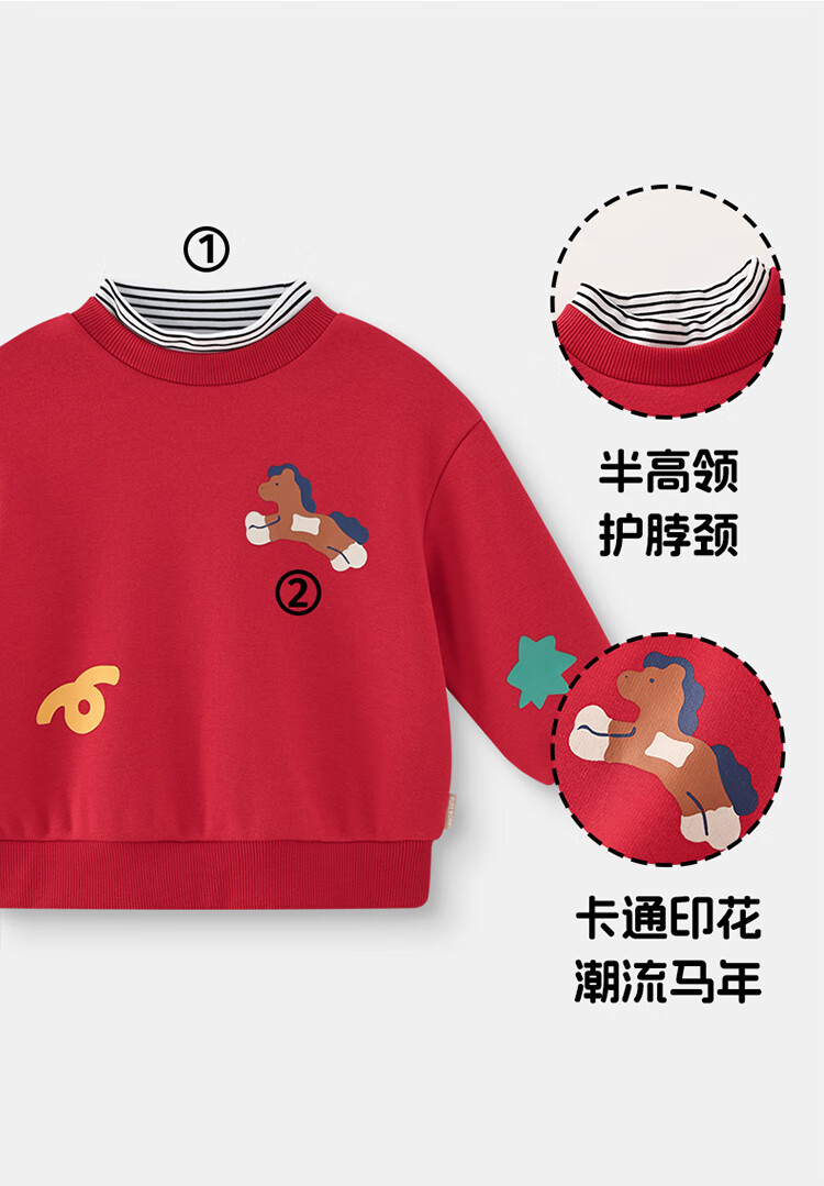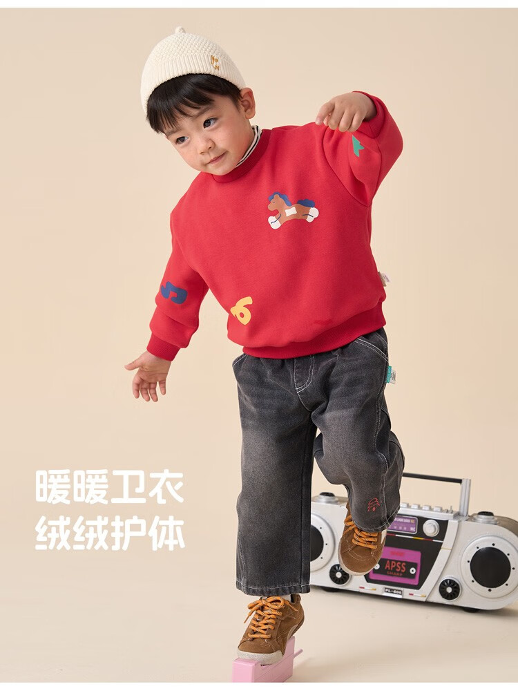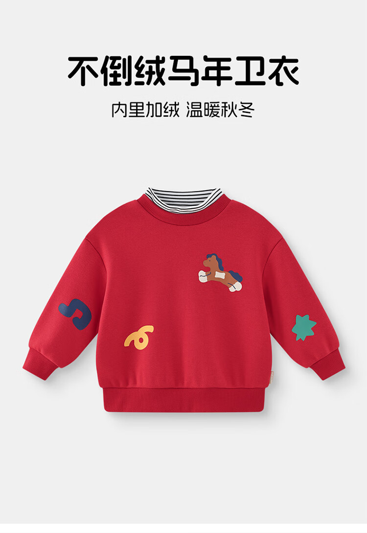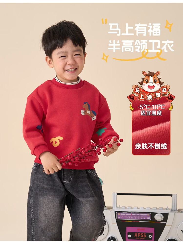 博睿恩【加绒】男女宝宝半高领卫衣2025秋冬款儿童保暖拜年服上衣 爆竹红 120
